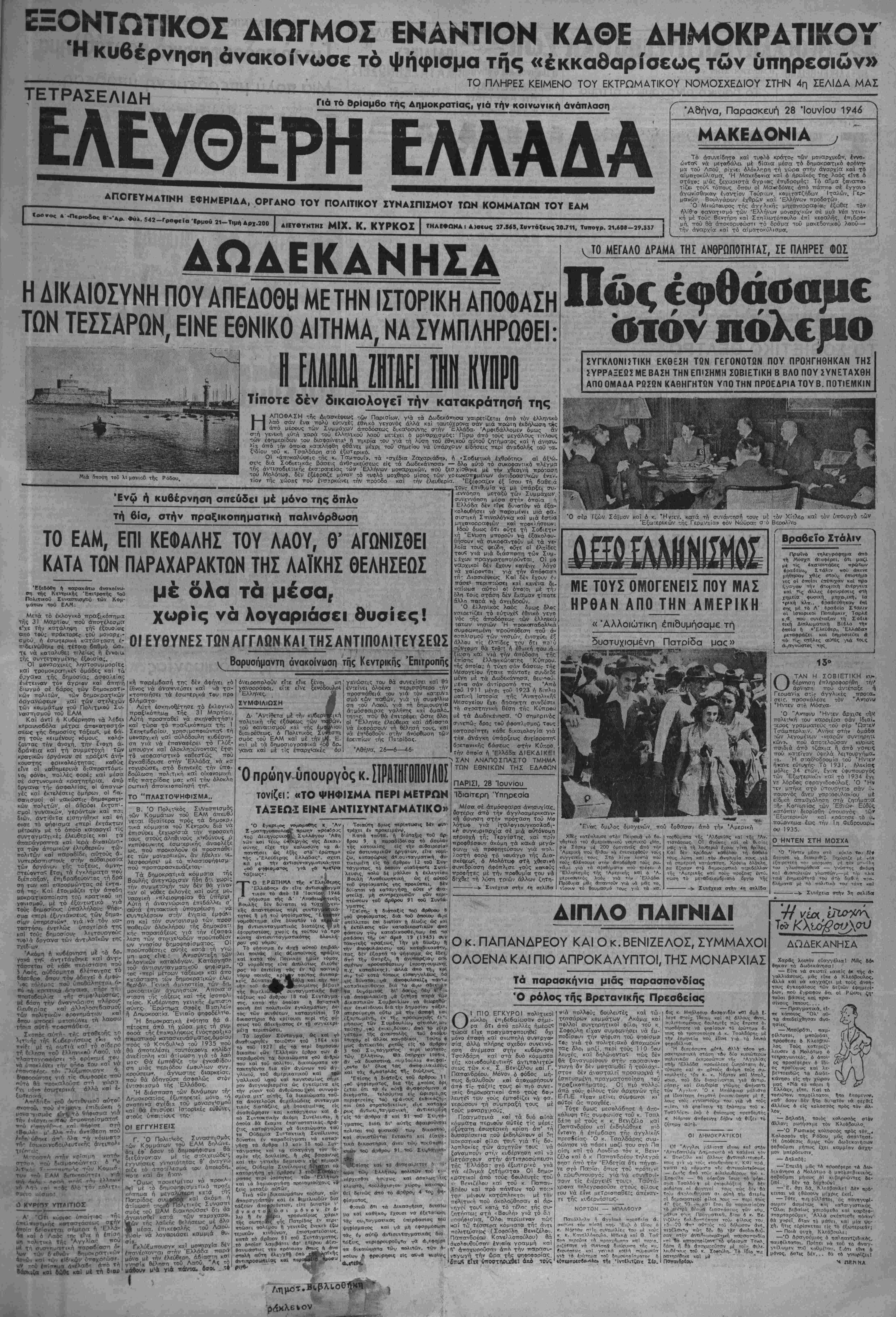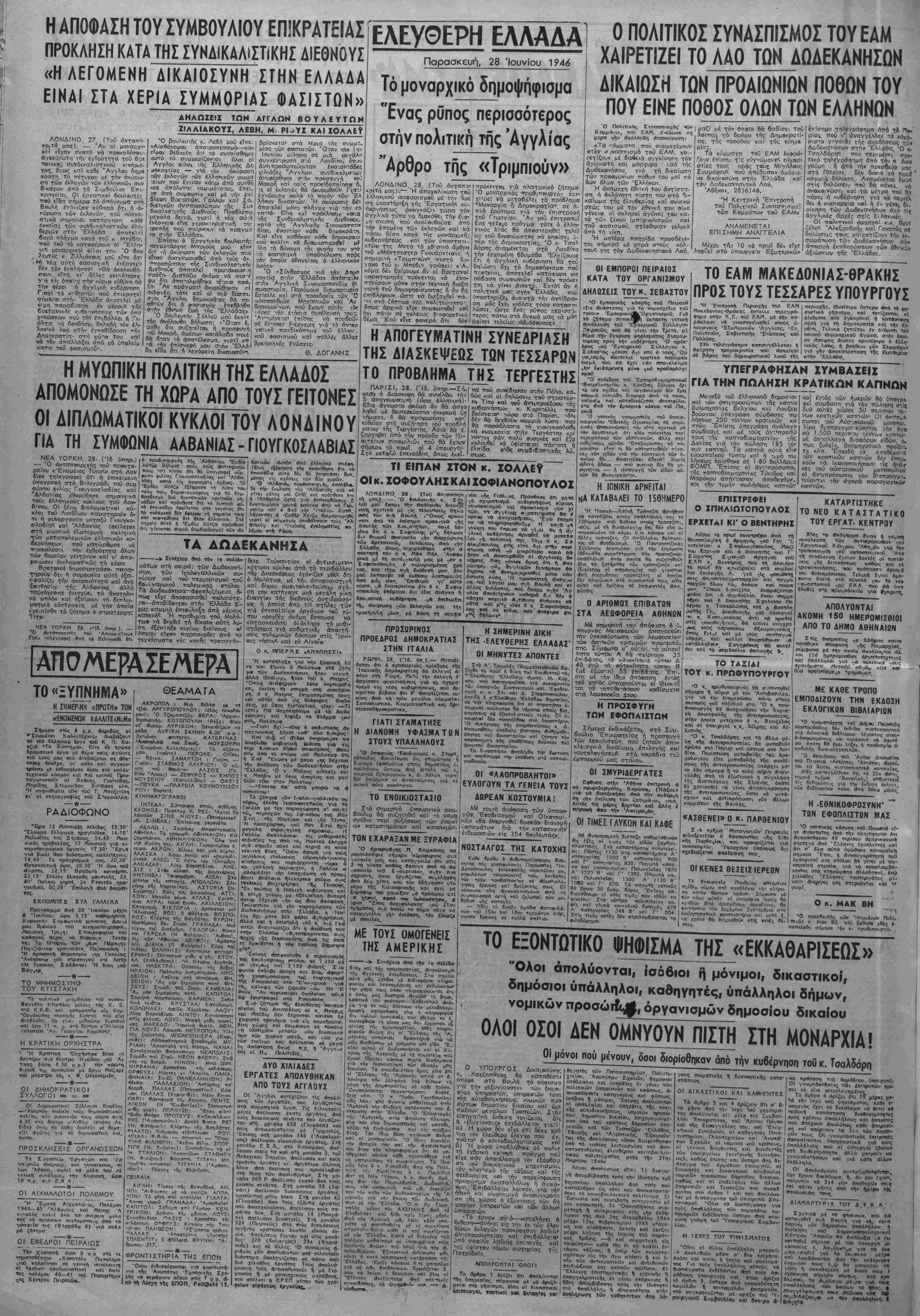 "Α9ήνα, Παρασκευή 28 ΊουνΙου 1946