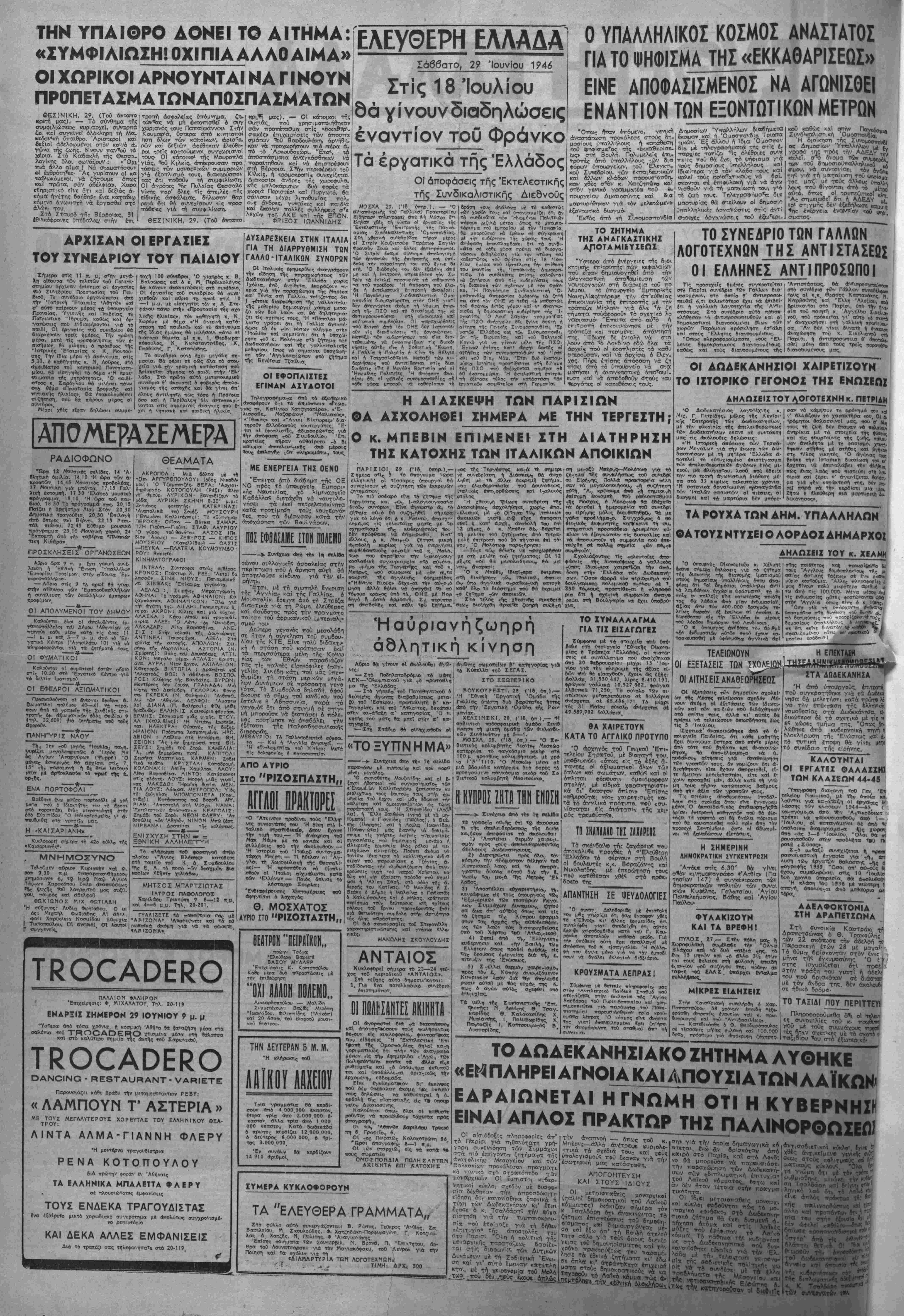 Άδήνα, Σάββατο 29 ΊουνΙου 1946