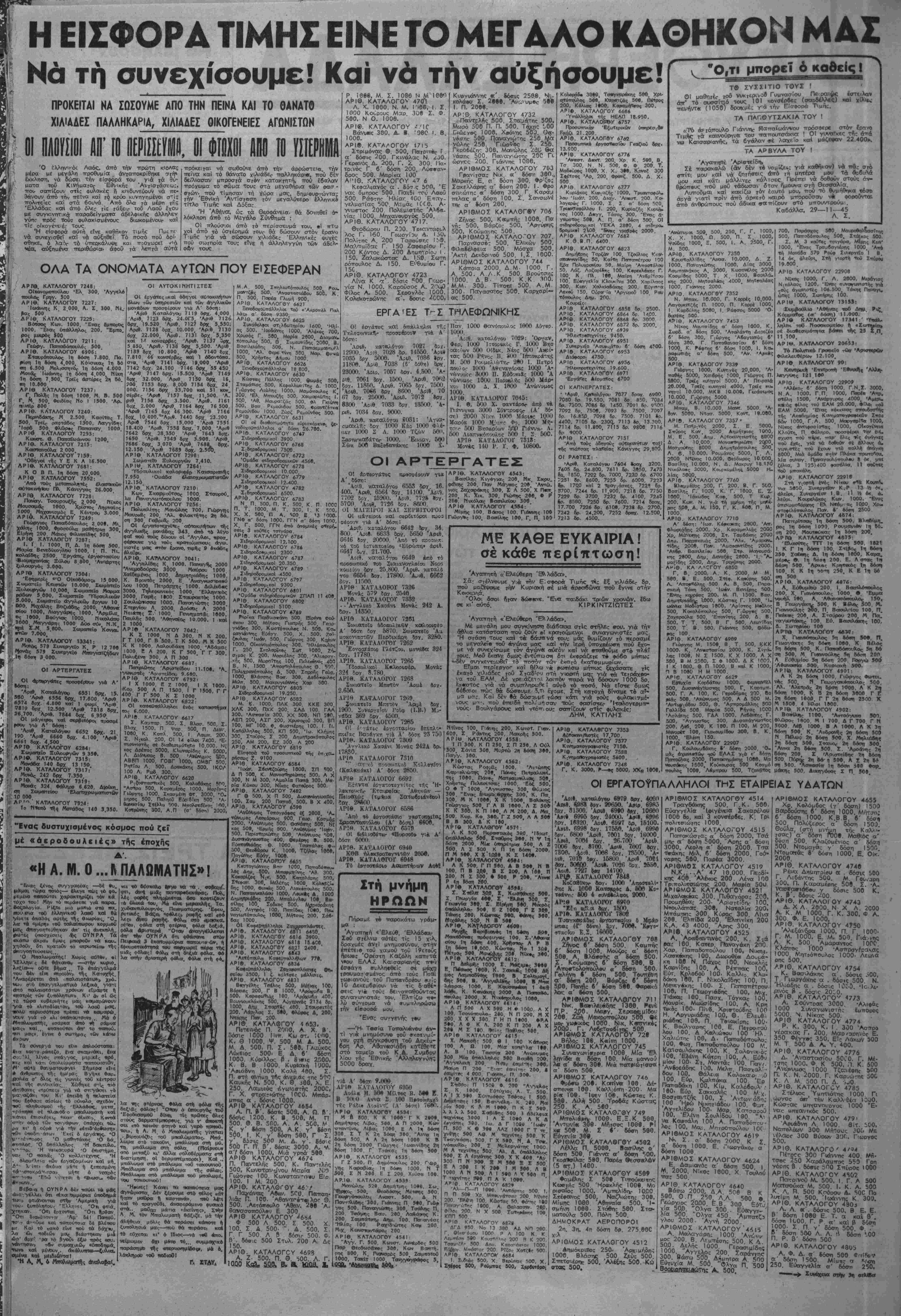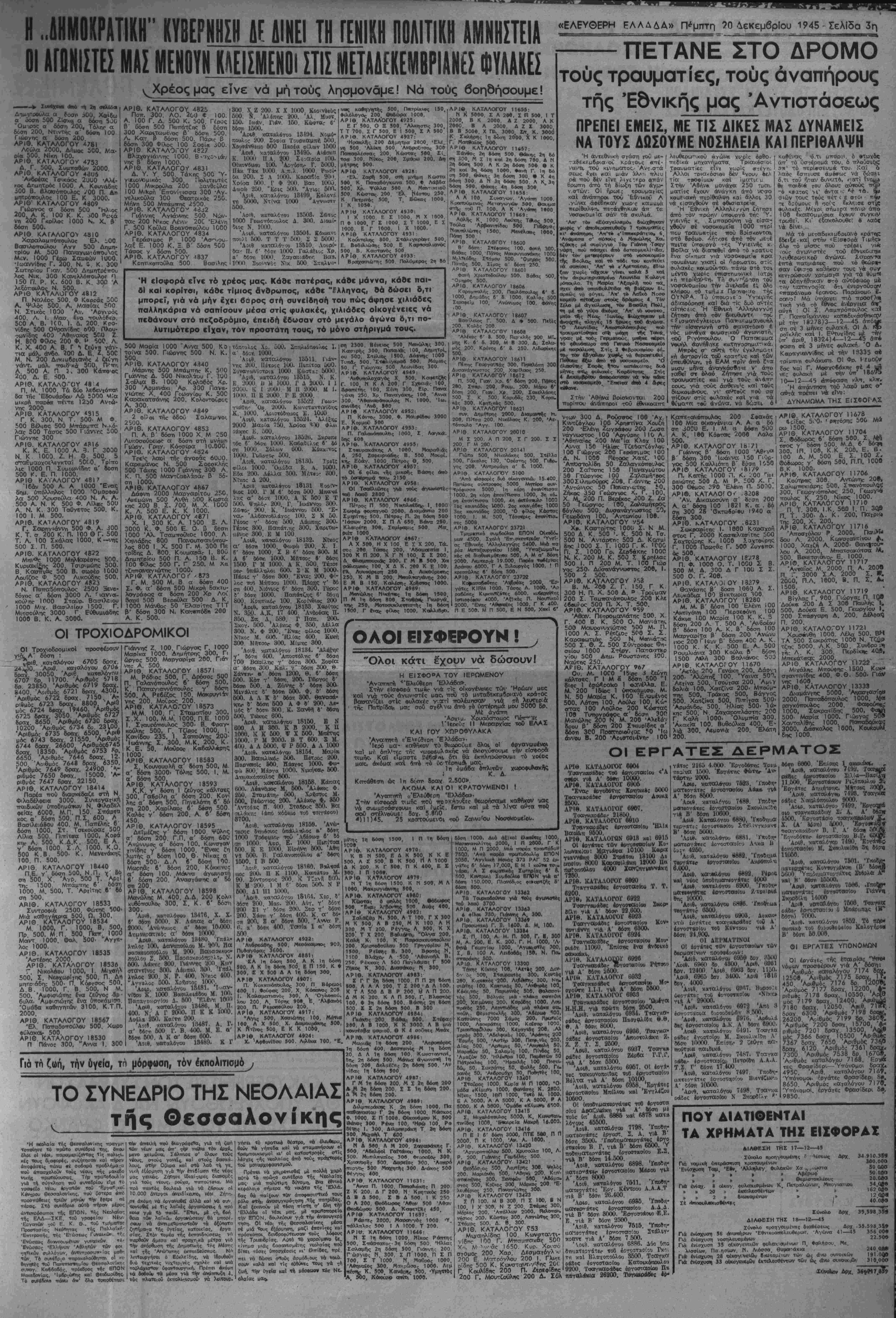 οβυν ττιν περαιτέρω <5ί«ϊη τους. . .. .. 2βν.) Οί φυγοδιχβΰντες ώς 'Εθνικής Άντιβτάοεως— τωρα, πού είνε πάνω άπό 150 ΕΑΜ. "Ολος ό κρατικάς μηχϊ-' χιλιάδες (είνε γνωατο «ώς ^ ♦/ιαμος. πλβιιοιωμ«;ν©ς με βργα | παρχβυν εκδομβνα άπό τίς δι να ύθίΐλογ* καί «ροδοτες, «■ , Λ*στικες άρχες το·;α -----.....■ στηοε χορβ μακάδριο γύρω ---■--» β ατβΰς άγωνιοτές. 'ΕσχόΤ'ϋσ*. ί- τυράν~βε. έφυλάκιοε καί έθε- ρη. έφ κί έθ σε σέ ίιωγμό. άοτυνομικο καί δικαοτικό, δύβ. έκατοντάδβς χι λιάδες κ·*ι Λεινω άημβκρατι κούς πολϊτες. Μ έ πρό·3χημα τα Δεκεμδρ.α νετ. μιτήκε αε κινήση ολβς 5 .τοινικός νομβς. Καί άςρου β|αν τλήβηκαν οί διατάξεις τού ηζ· ρϊ άνβρ«ττοκτονι«<, Αντιποιή- οειν; άρχής, λιποταξίας. ές>υλχ
