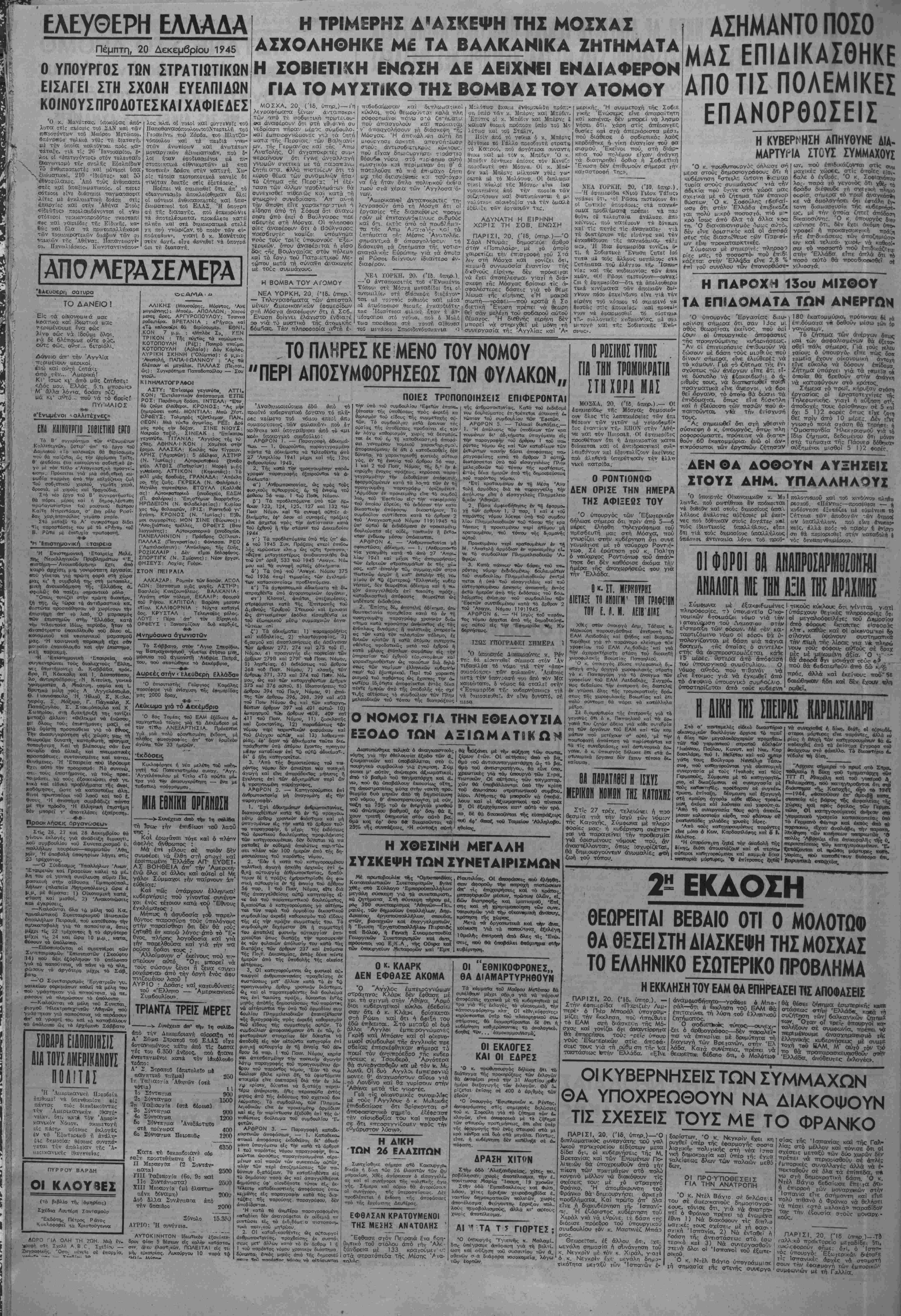 'ΑίΙήνσ, Πΐιμπτη 20 Δεκεμβριού 1945