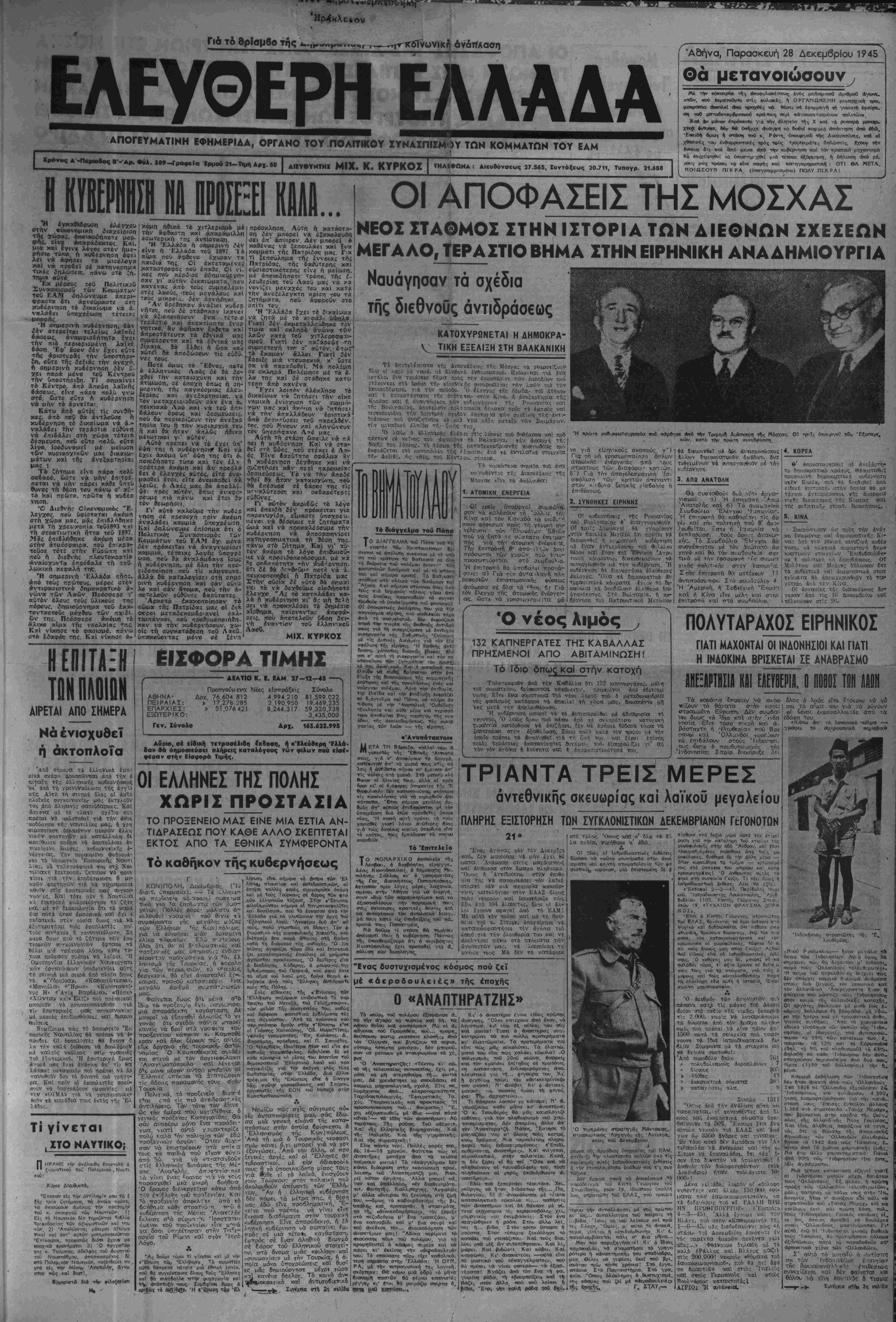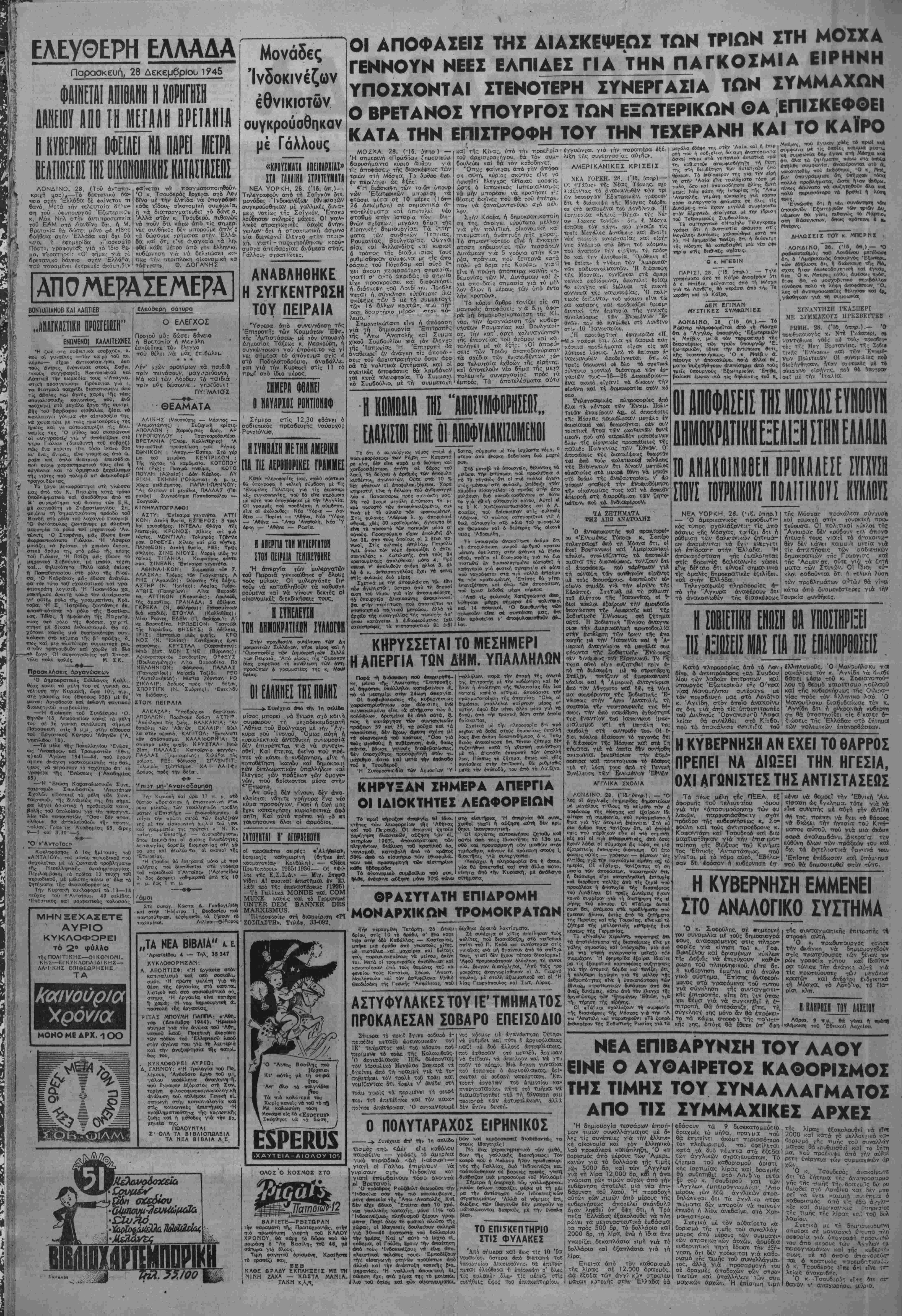 Άδήνα, Παρασκευή 28 Δεκεμβριού 1945