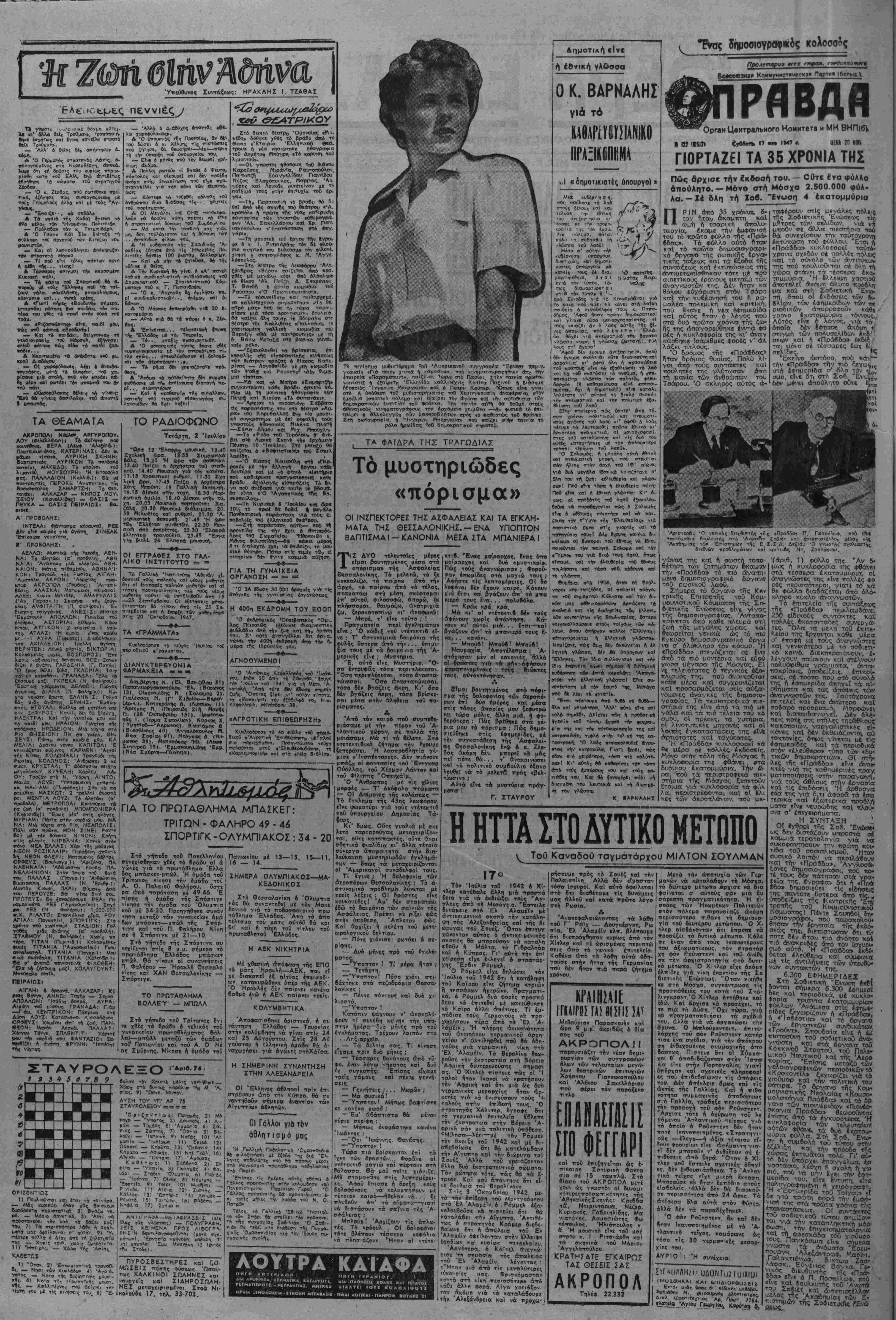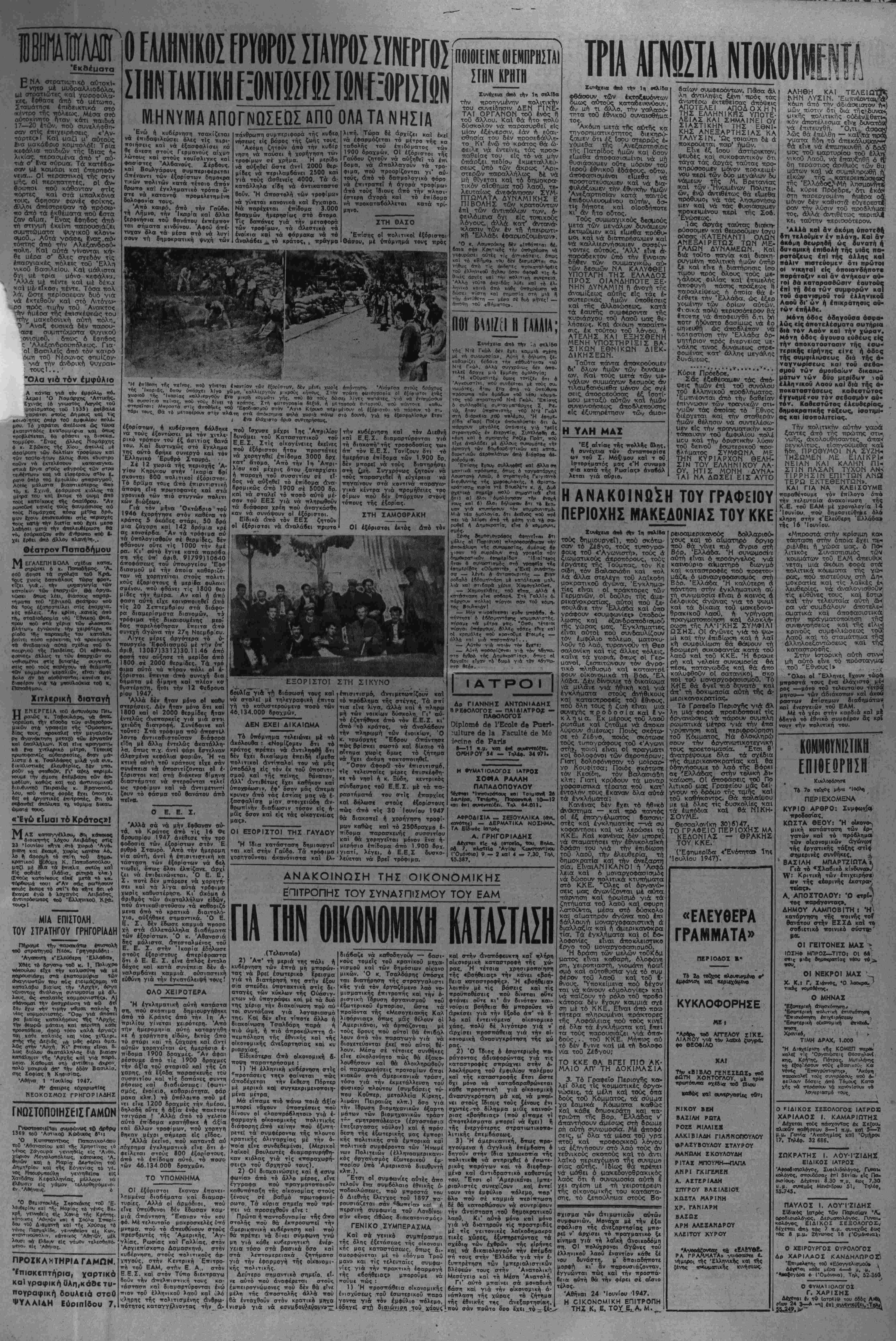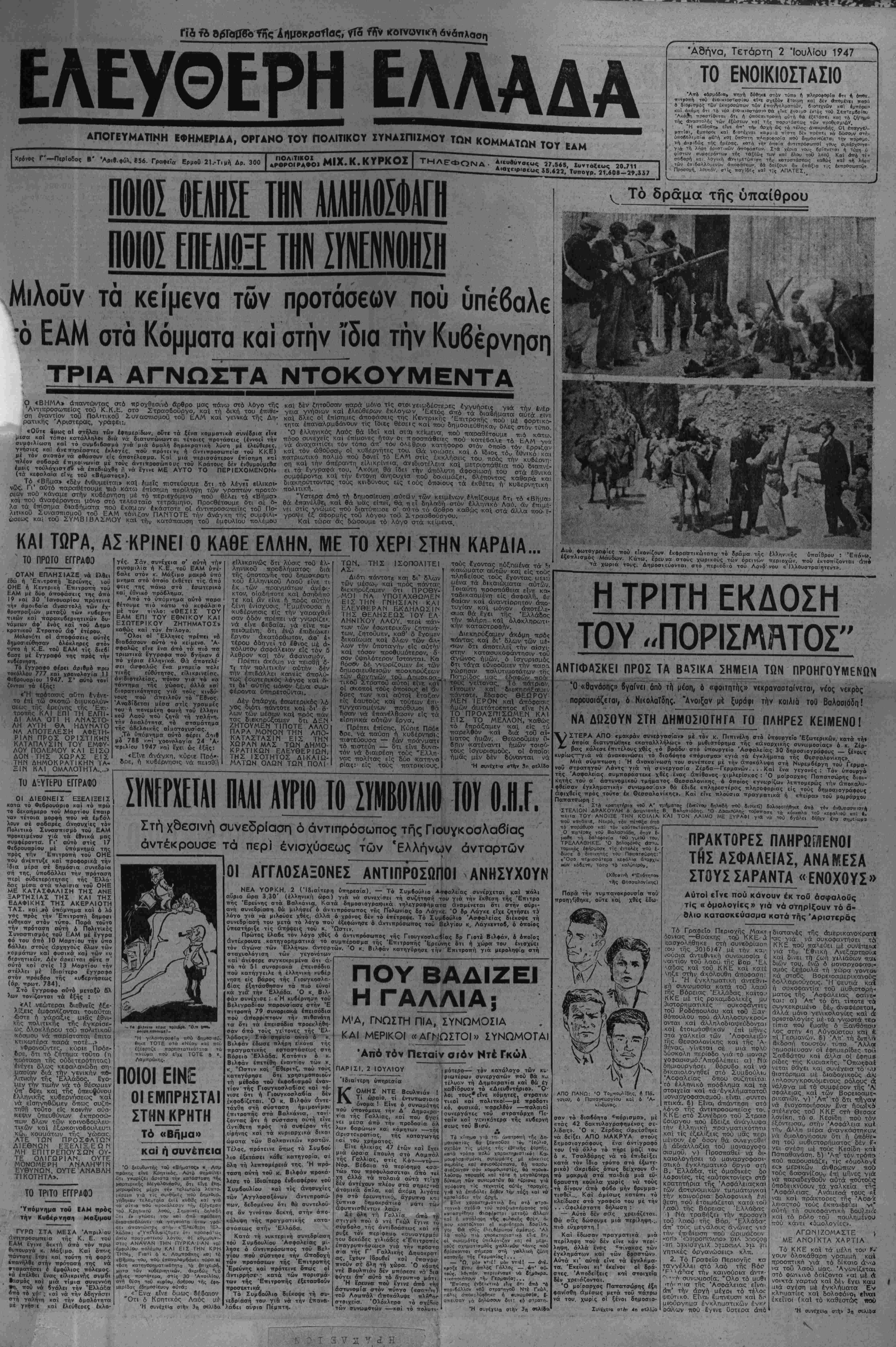 ίίδ ίδ δ^ΤοίΓΒο ττΤς Αή^κροτ1β<, γΐδ τ^» *οΓνΌν.»ίη άνάπΑοοη ΕΛΕΥΘΕΡΗ ΕΛΛΑΔΑ ΔΠΟΓΕΥΜΑΤΙΗΗ ΕΦΗΜΕΡΙΔΑ, ΟΡΓΑΝΟ ΤΟΥ ΠΟΛΙΤΙΚΟΥ ΣΥΝΑΙΠΙΣΜΟΥ ΤΩΝ |χΡονος Γ-ΠερΙοδος Β' 'Αρ.β.φύλ. 856. Γρσφίίβ ΕρμοΟ 21.-Τ.μή Δρ. 300 •οροιραφοι ΜΙΧ· Κ. Κ ΥΡΚΟΣ Ά9ήνα, Τετάρτη 2 Ιουλίου 1Ο47 ΤΟ ΕΝΟΙΚΙΟΣΤΑΣΙΟ Άττ4 «αρμοδία, —γή 86βΐ)κΙ στόν τύπο ή πληροψορΐβ βτι Α 6τ«ϊ- πιτρθπή τού ενοικιοστασίου «1»£ σχίδόν ίτοιμη καΐ δεν Λττομίνιι ιταο>ΐ