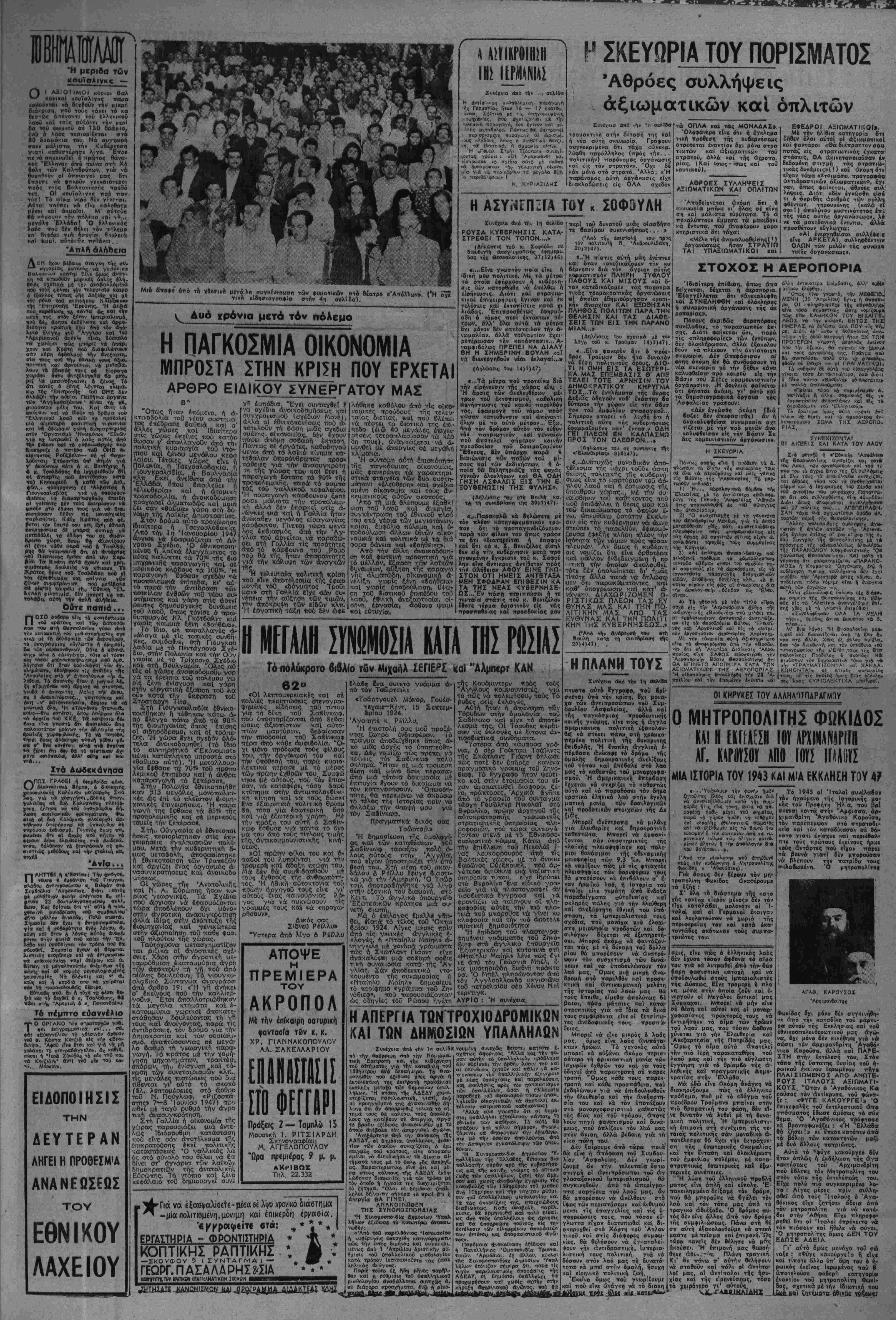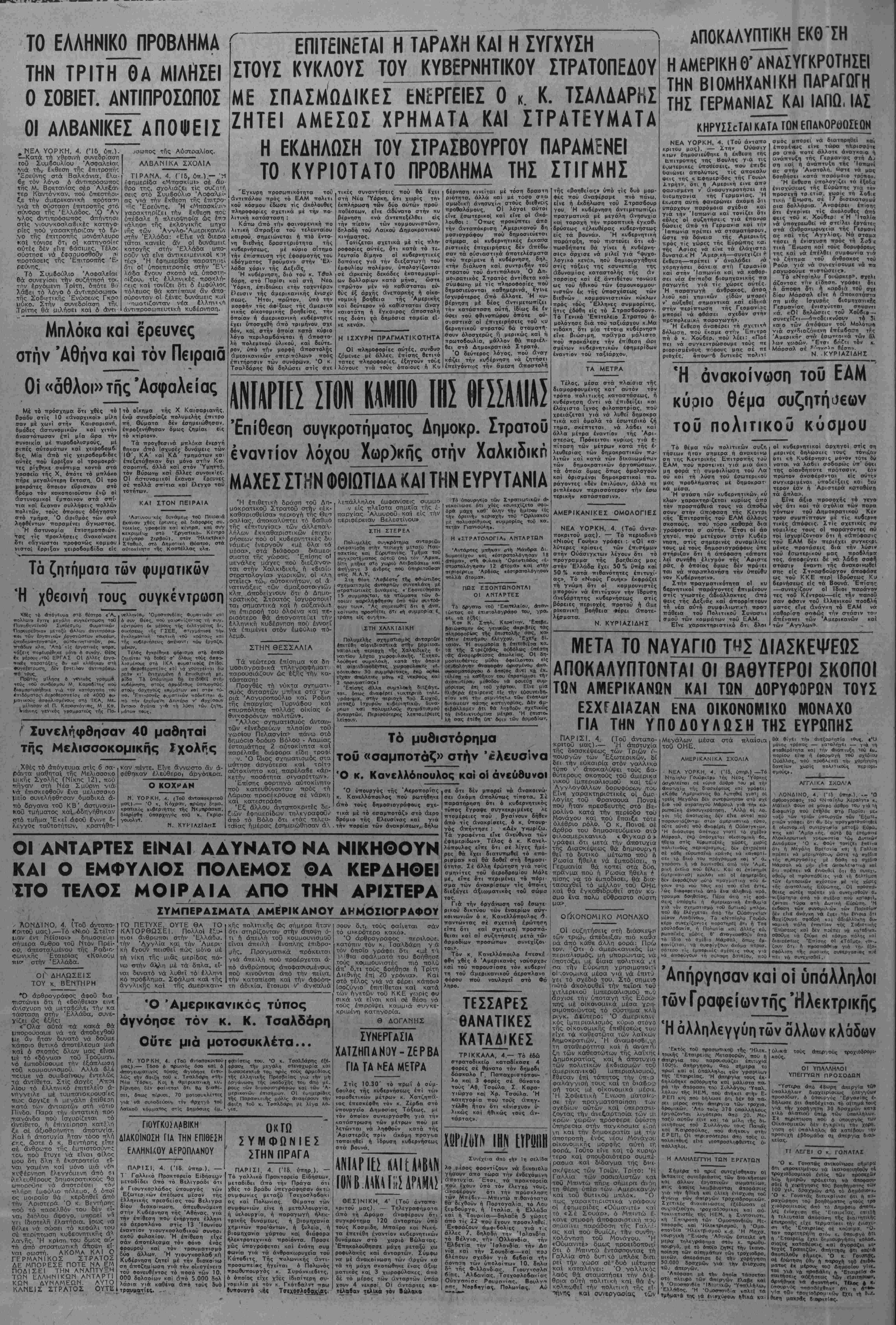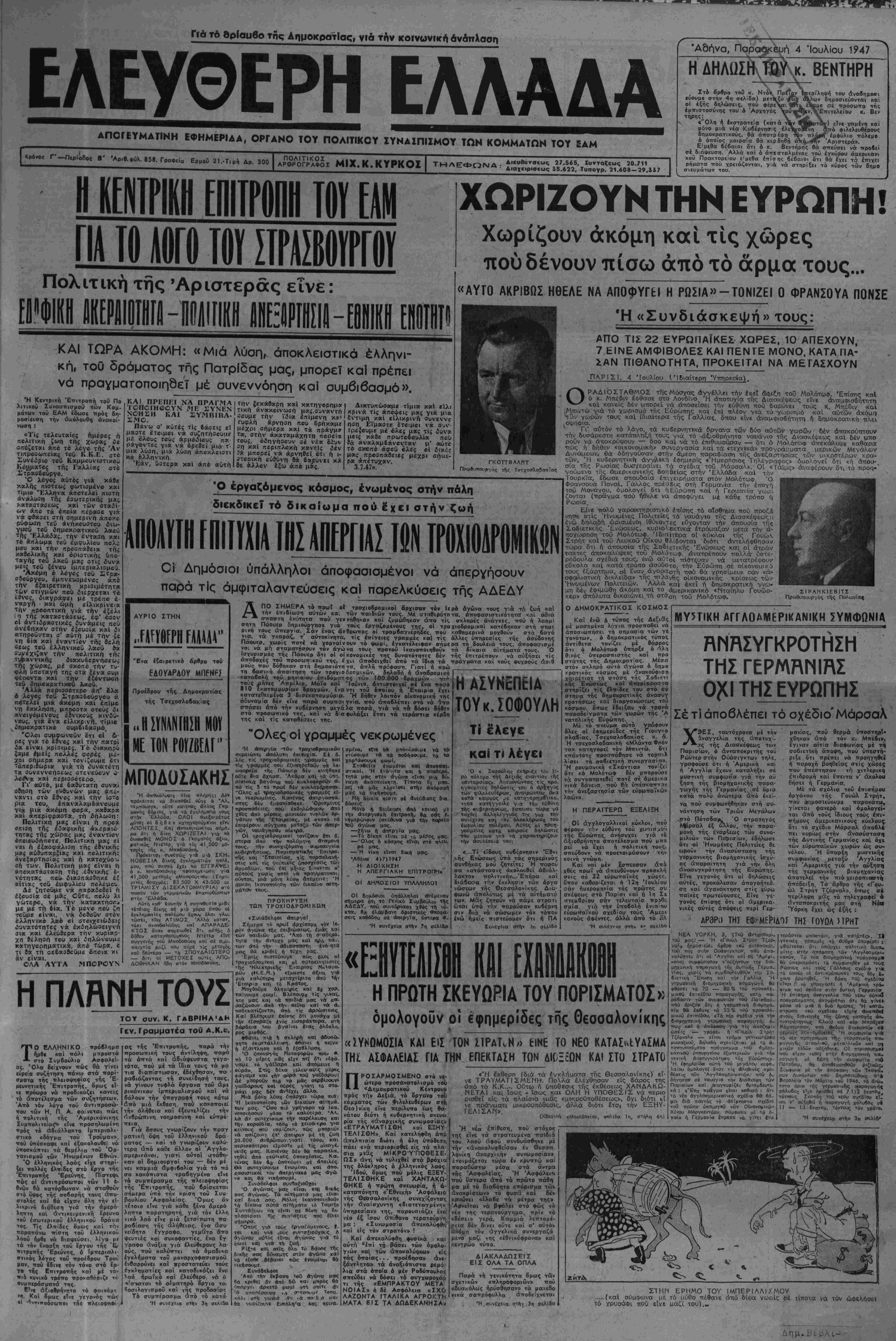 ^|^|||^^^^^^^^^^^^^^^^^^^^^^^^^^^^^^^^^Η^Η|^|Η^^Β^^ΗΒΙ^ΗΗΒΗ^ΗΗΒ^Ι^Ι^ΗΒειεΗρΗρ^ιεεΜΜ ____ < ΑΠΟΓΕΥΜΑΤΙΝΗ ΕΦΗΜΕΡΙΔΑ, ΟΡΓΑΝΟ ΤΟΥ ΠΟΛΙΤΙΚΟΥ ΣΥΝΑΧΠΙΣΜΟΥ ΤΠΝ ΚΟΜΜΑΤΩΝ ΤΟΥ ΕΑΜ Άρ,9.φύλ.856.ΓραΦε?ο ΕρμοΡ 2Ι.-Τ.ρ, Δρ. 300 ιΊ ΚΕΝΤΡΙΚΗ ΕΠΙΤΡΟΠΗ ΤΟΥ ΡΑΜ ΠΑ 10 ΑΟΓΟ ΤΟΥ ΣΤΡΑΣΒΟΥΡΓΟΥ —— ' - ————————————ε——εε—ε———ιπ————ιε-■ Πολιχική τής 'Αριστερας είνε: ΜΙΧ Κ ΙίΥΡκΏΤ ΤΗΛΡΛΟΝΔ Αΐίυβυνοεως 27.565, Συντάξεως 20.711 Ι Ι»1ΙΛ.Ι.|ΤΙ*ϋΟΙ. | ΤΗΛΕΦΩΙΜΑ: Λιαχε.ριο«»ς 35.622, Τυπογρ. 21/608-29.537 | Άδήνα, Παρο^βϋή 4 Ιουλίου 1947 Η ΔΗΛΟΣίτνΤ&γ· κ. ΒΕΝΤΗΡΗ ■■ι - Στό αρθρο τοθ κ. Ντόν ΠρεΓον (ττερίληψή τού άναδημονι ιύουμϊ στήν 4ι σελίδα) μετ&ξΰ ψω} όα^ων δημοσιεύονται καί οί εξής δηλώσεις, ποϋ φερετκι ·Λ_ έΐμε σέ πρόσωπο τής έμπιστοσύνης τού ό Άρχηγός οΰ—«ν.Έτπτίλείου Κ. Βεν «'Όλη ^ έκστρατεία (κατά Λν εη^ρτθν) είνε γαμένη κβί μόνο μιά νέα Κυβέρνησις # έλενο^νη Λπό φιλελιυθέρους δημοκρατικούς, θά άποτρέψη τ*ν ττλί^^' έμφύλιο πόλεμο ό οποίος^ μοιραΐα θά κιρδηβη ανόν-4ην Άριστερά». Είμεθα βεβαιοί ότι ό κ. Βεντήρης θά σπεύσει νά ττροβεί σέ διαψεύση. "Αλλά καΐ ό άπεσταλμένος τοϋ έγκύρου άμερικανι κου Πρακτορείου είμεθα έπίσης βεβαιοί δτι θά έχει τα έπιχει ρήματα ποΰ χρειάζονται, γιά νά στηρίξει τό κϋρος των δη.μθ σιευματων τού. ΚΑΙ ΤΩΡΑ ΑΚΟΜΗ: «Μιά λύση, άποκλειστικά έλληνι- κή, τού δρόματος τής Πατρίδος μας, μπορεΐ κ αί πρέπει νά πραγματοποιηδεϊ μέ συνεννοήθη καΐ συμβιβασμόν Ή Κεντρική 'Εττιτροττή τοθ Πό λιτικού Συνασπισμοΰ των Κομ. μάτων τού ΕΑΜ ίδωσι πρός δη- μοσίευση την άκόλοι/θη ανακοι¬ «Τις τϊλίΐιτβίϊες ήμίρες ή πολιτική ζωη τής χώρας ύε γ ής τιπρβοωπείβις τού Κ.Κ.Ιΐ. οτβ Σι>νέι3ριο τού Κχμμβυνιατικοΰ