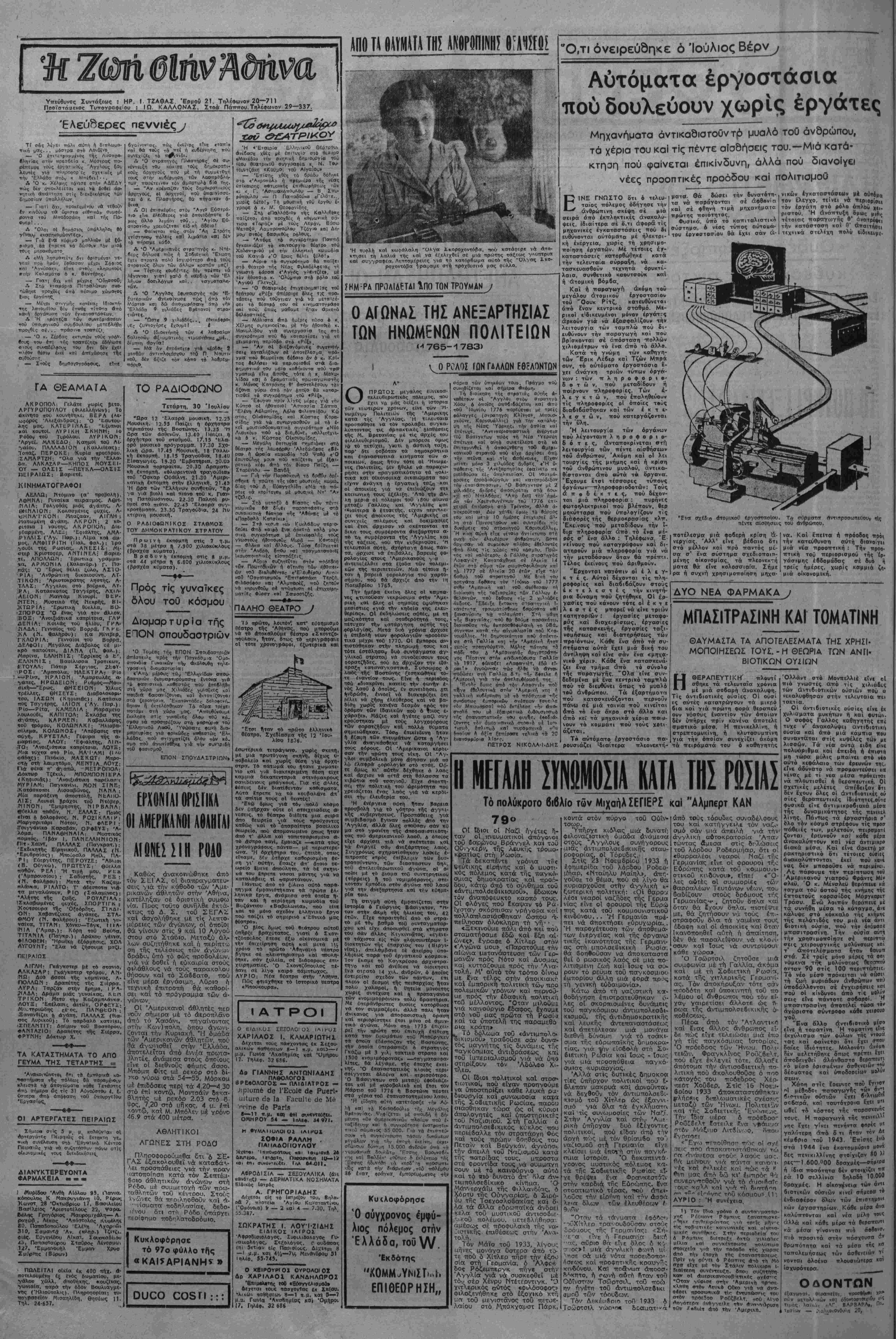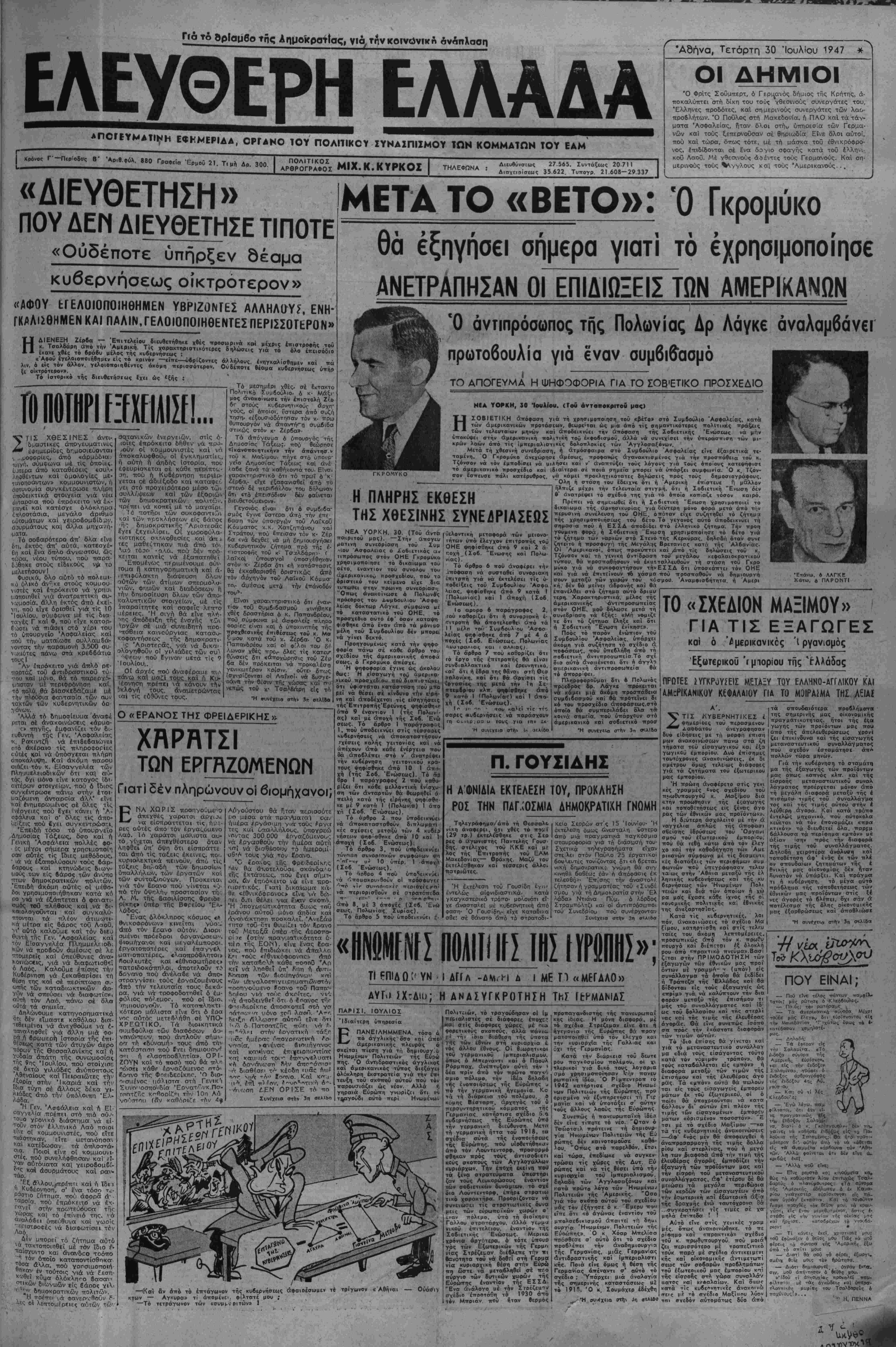 Άδήνα, Τετόρτη 30 Ιουλίου 1947