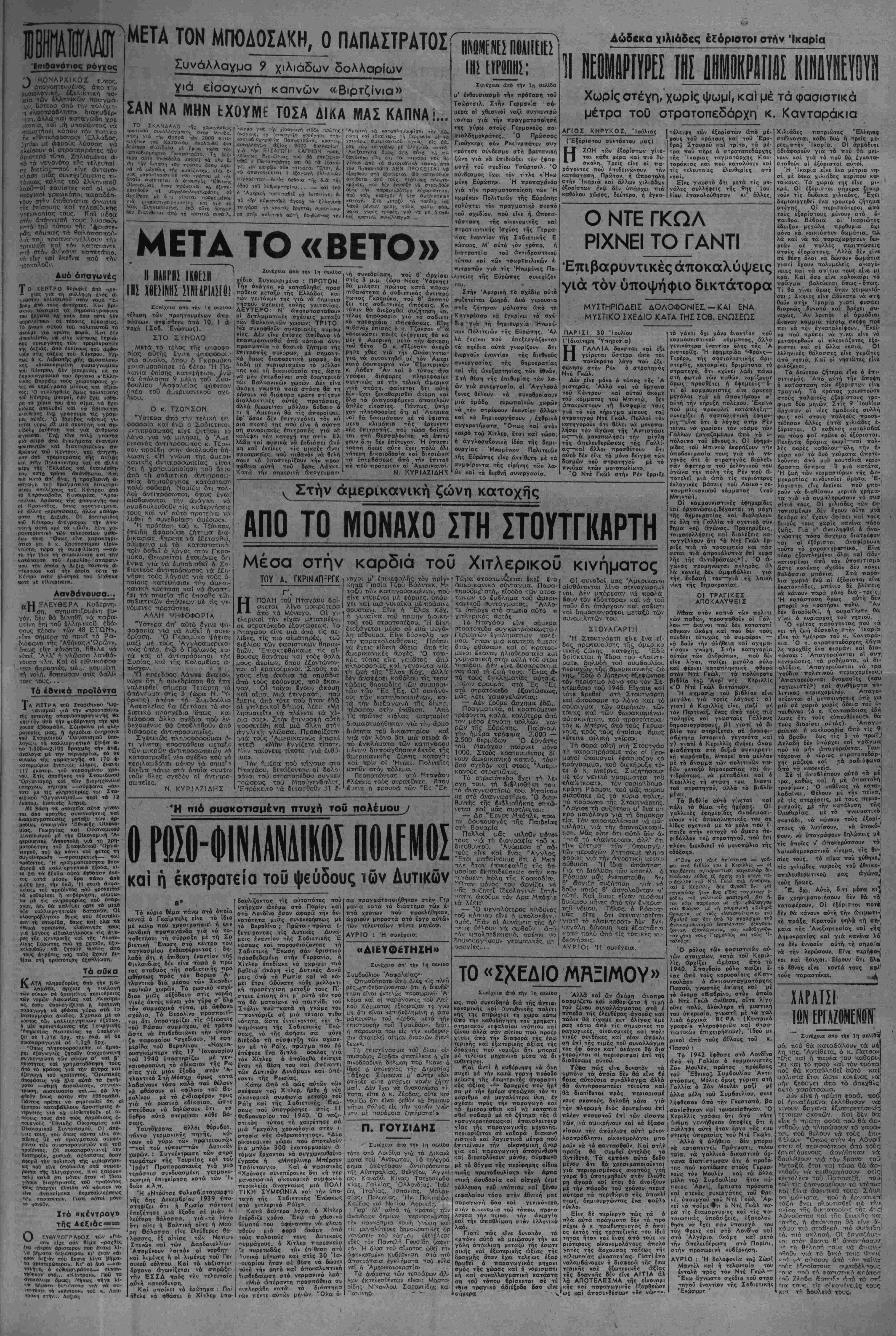 τάς, όγι μόνο είνε κατογος Ιδ<· σιτέρων στοιγείων. πού ό Ιδιος ουγκέντρ6Χ3ε τΐάνω στήν έτοι- ιυαζόμενη άνταρσία άλλ' είνε «αί ένημερωμένος σέ δλες τίς ένέργειες πού £γει κάνει ή Ά- σφάλπα καΐ σ' δλες τις άπο- ύειζεις τΐοϋ Ιίγει συγκεντρώση. 'Επειδή τόσο τό ύπουργεϊο ,Δημοσίας ΤόΕεως, δσο καί ή Γενική Άσφάλεια ττολλές φο· ςς μέγρι σήμερα γρησιμοποίι σαν αώτές τίς Ιδιες μεθόδους, " ιά νά έξαπολϋσουν τούς &άρ- δαρους καί κτηνώδεις διων- «.ιούς των είς βάρος των άνύτιο ^ττων δημοκρατικήν -πολιτών. Έττειδή άκάμη αύτές οί μέθο· 6οι γρησιμοποιήθηκαν κατά κό πό γ»ά νά έξάτττεται ό φανατι- "ΐιός τοϋ_ πλήθους καί .νά δι ■καιολογοθνται καΐ συγκαλύ ■πτονται τα πλέον άτιμωτι- ^ά μέτρα είς βάρος τού ΛαοΟ, δι* αύτό καλοϋμε καΐ τόν διευ θυντή της Γεν. Ασφαλείας καί ΊΧ>ν Είσαγνελέα Πλημμελειο5.