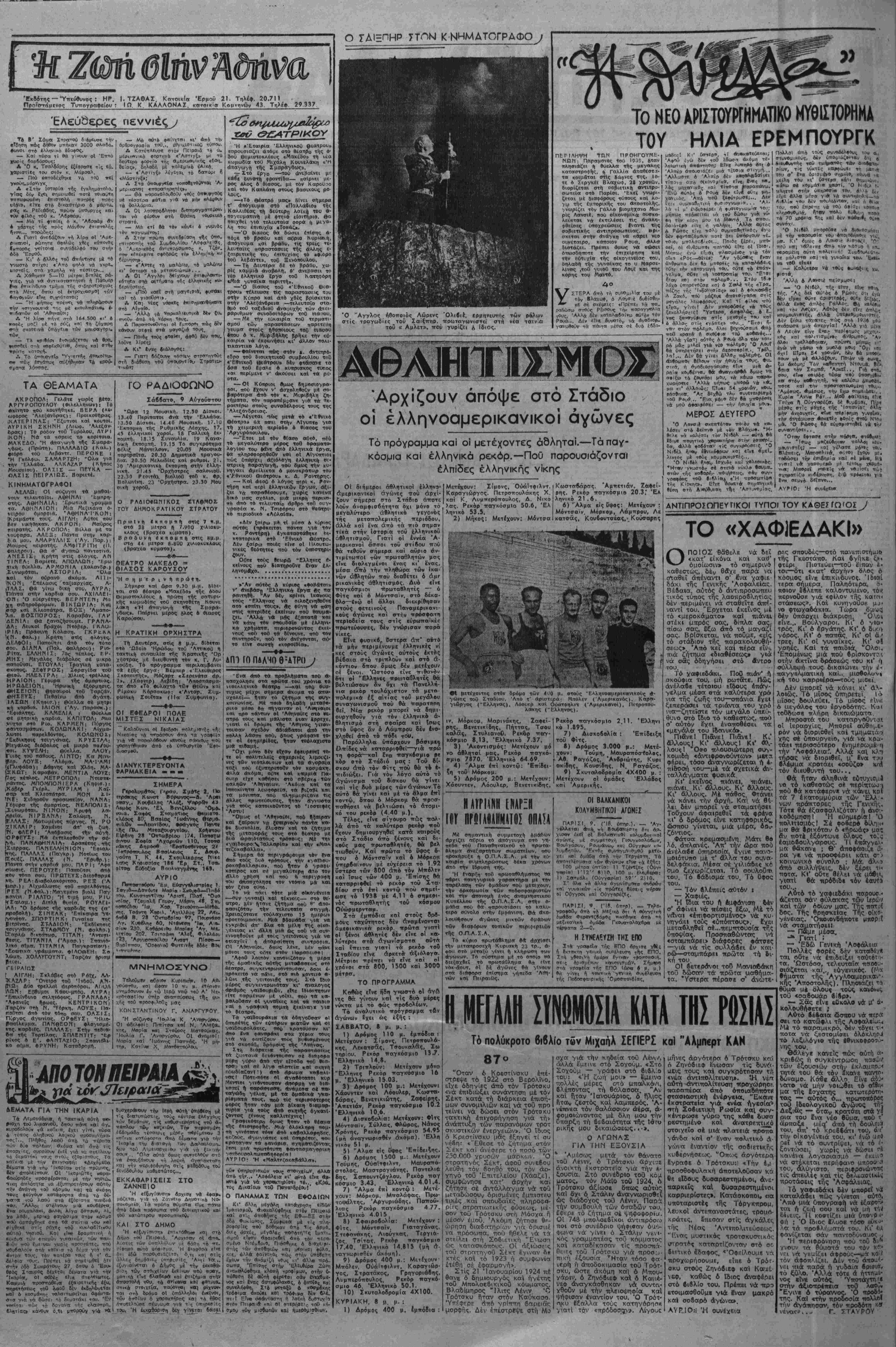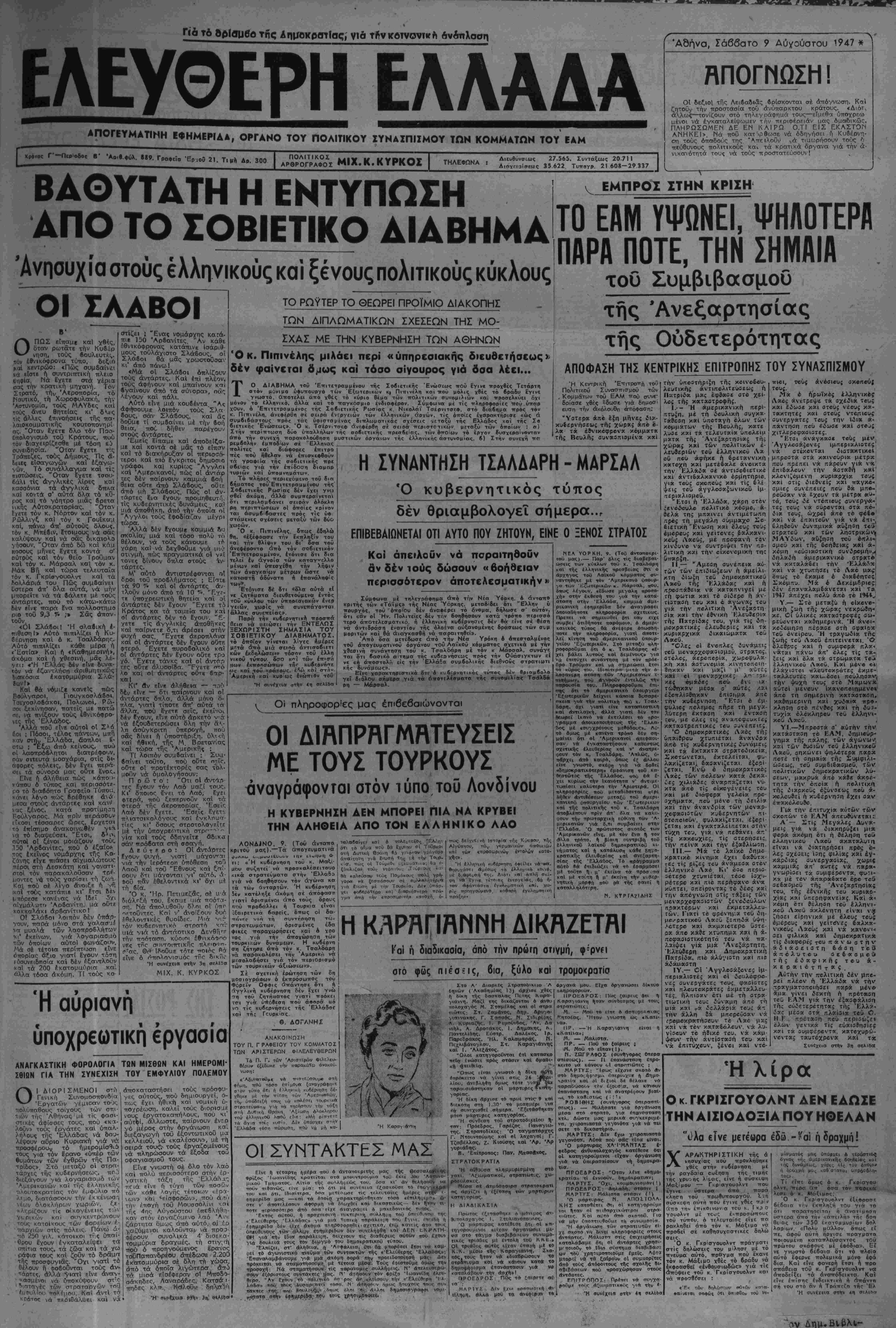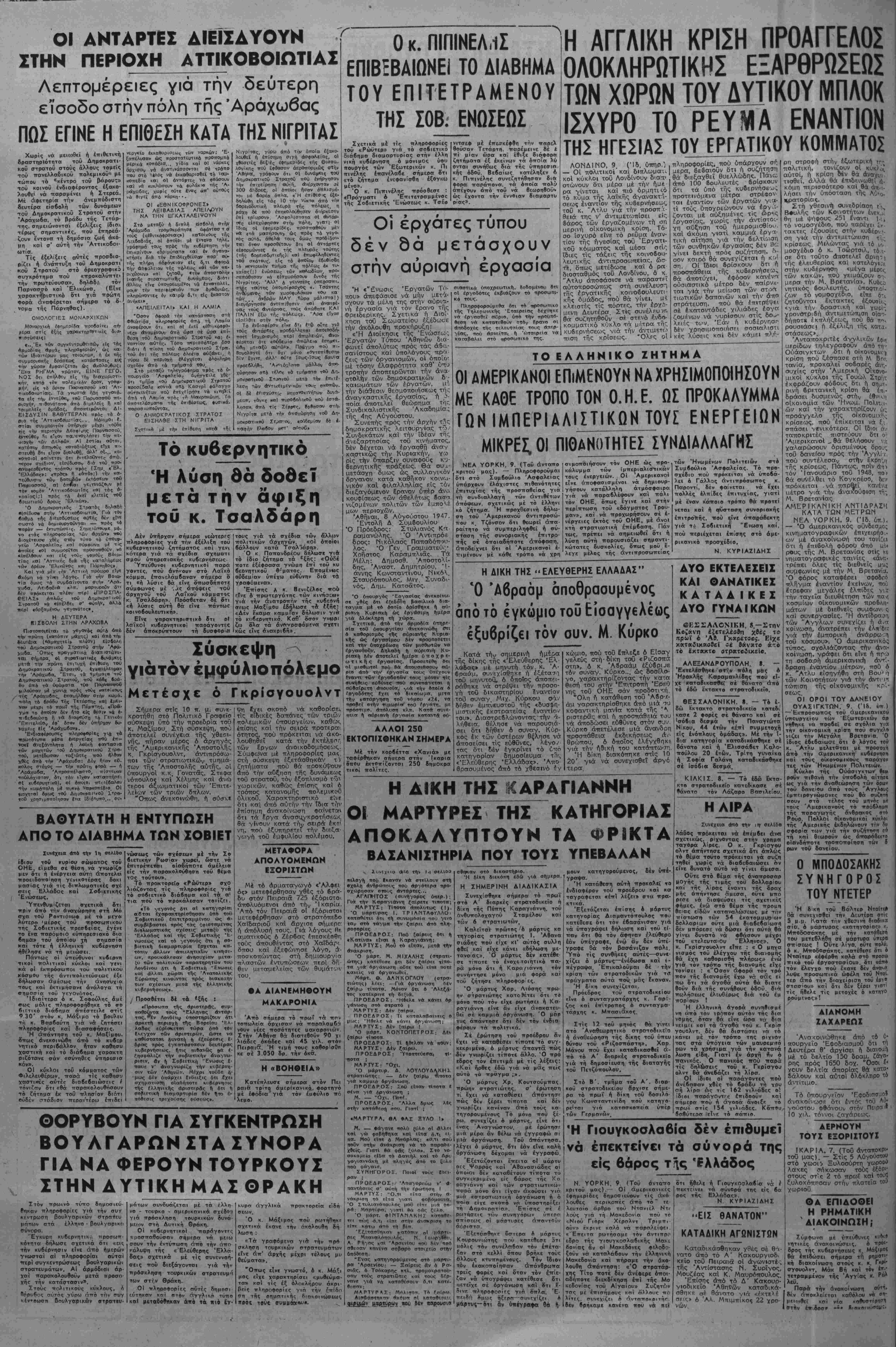 'Αδήνα, Σάββατο 9 Δύνούστου 1947