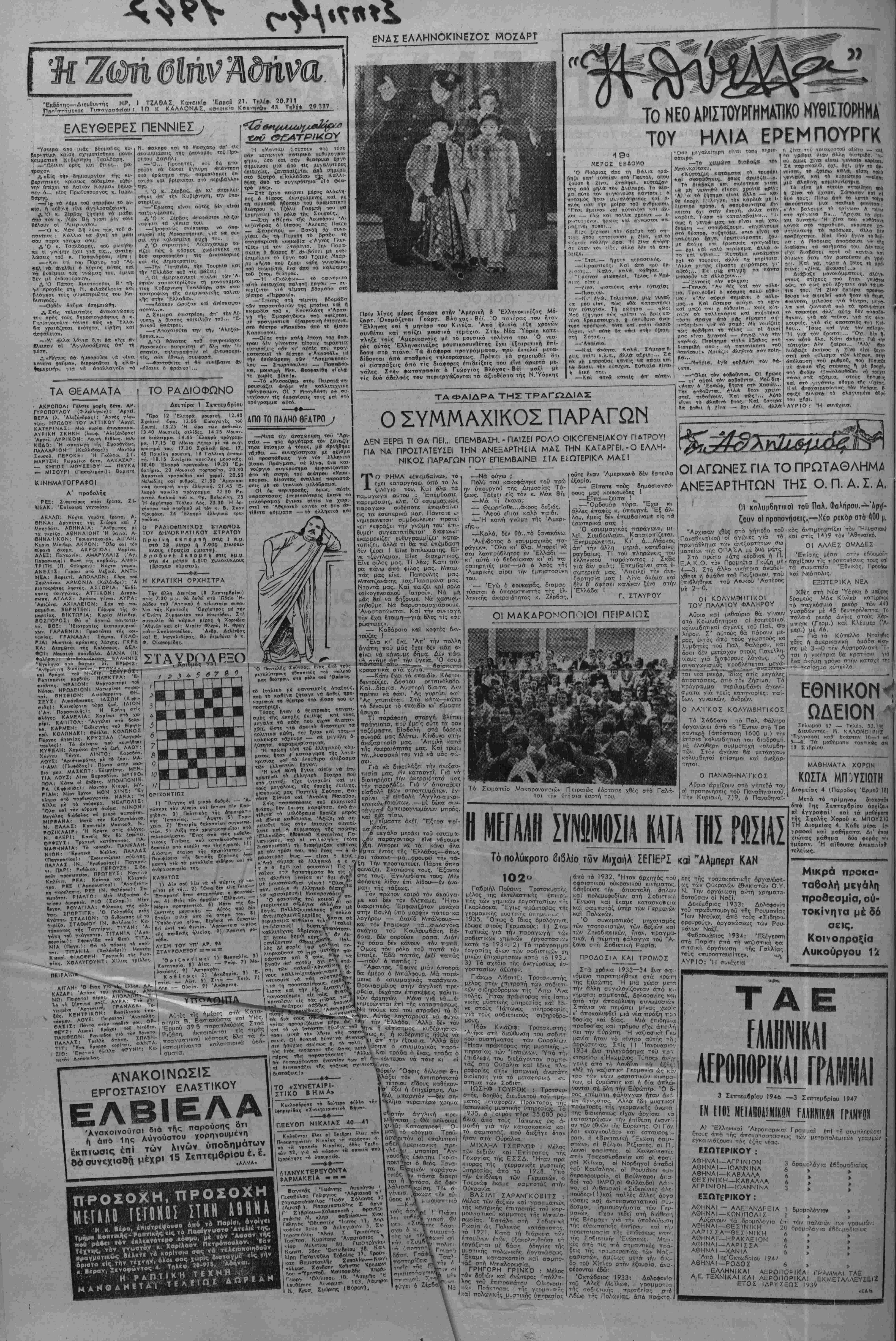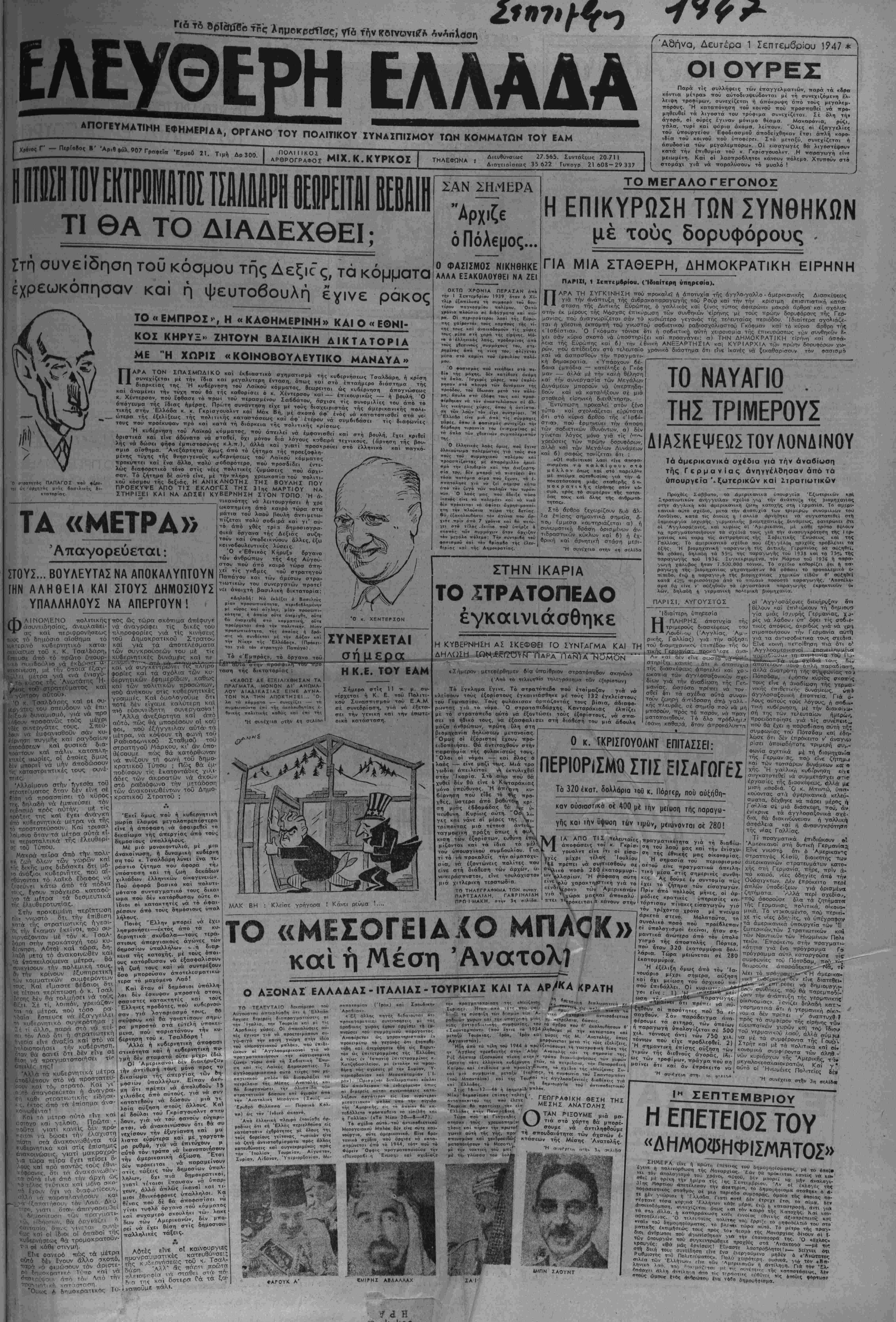 ' Αθηνά, Δευτέρα 1 Σεπτεμβρίου 1947