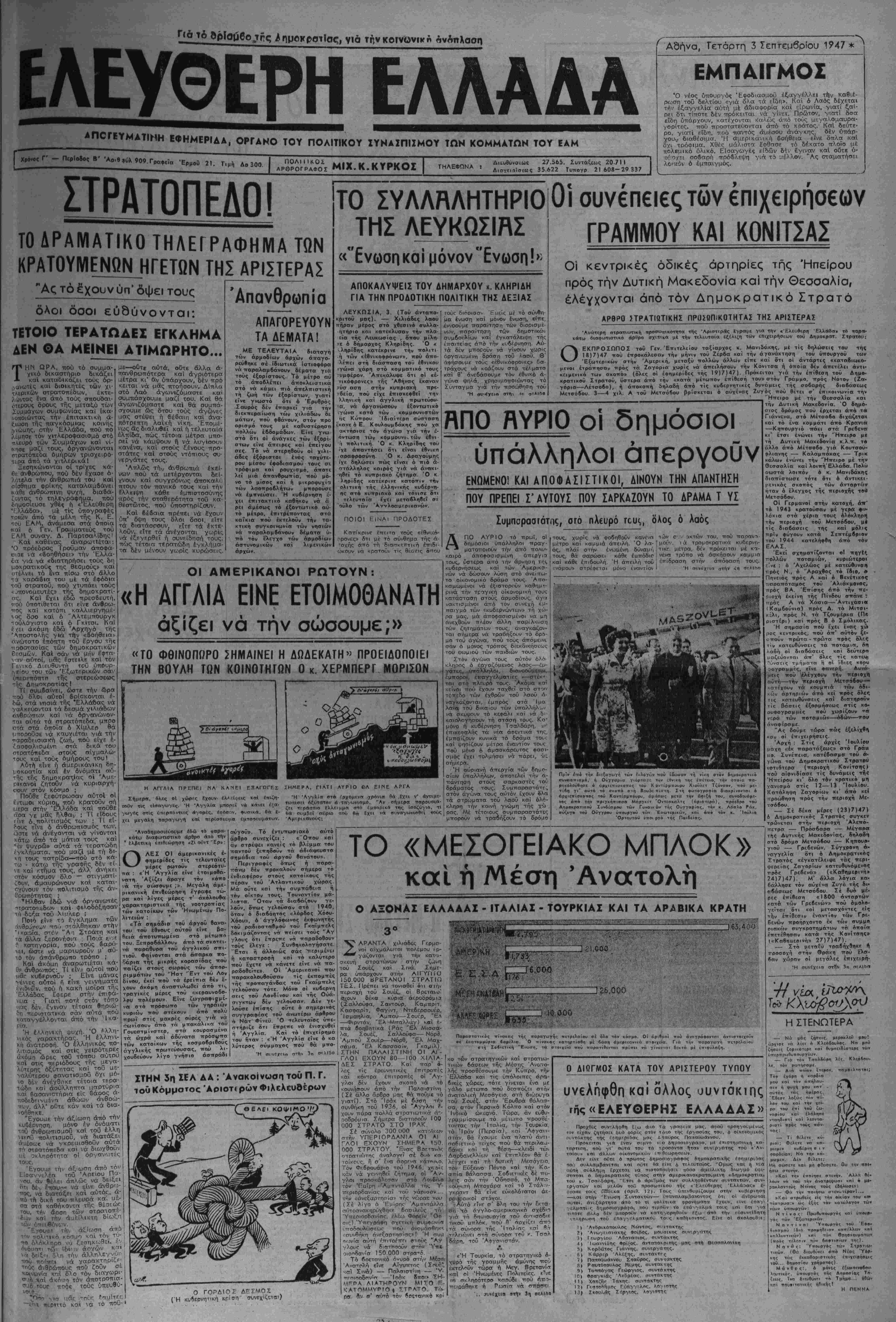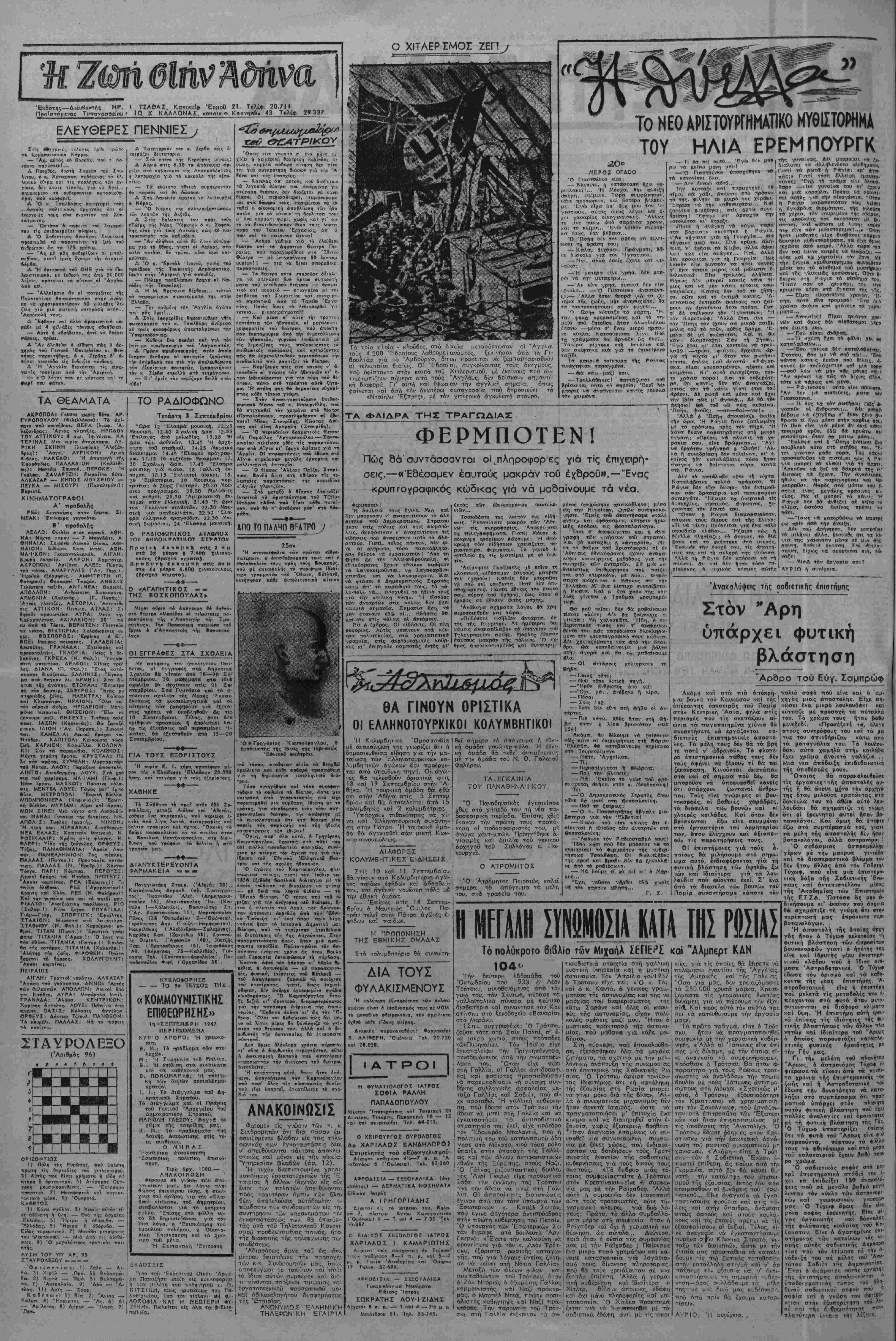Αδήνα, Γετσρτη 3 Τεπτεμβρίου 1947 *