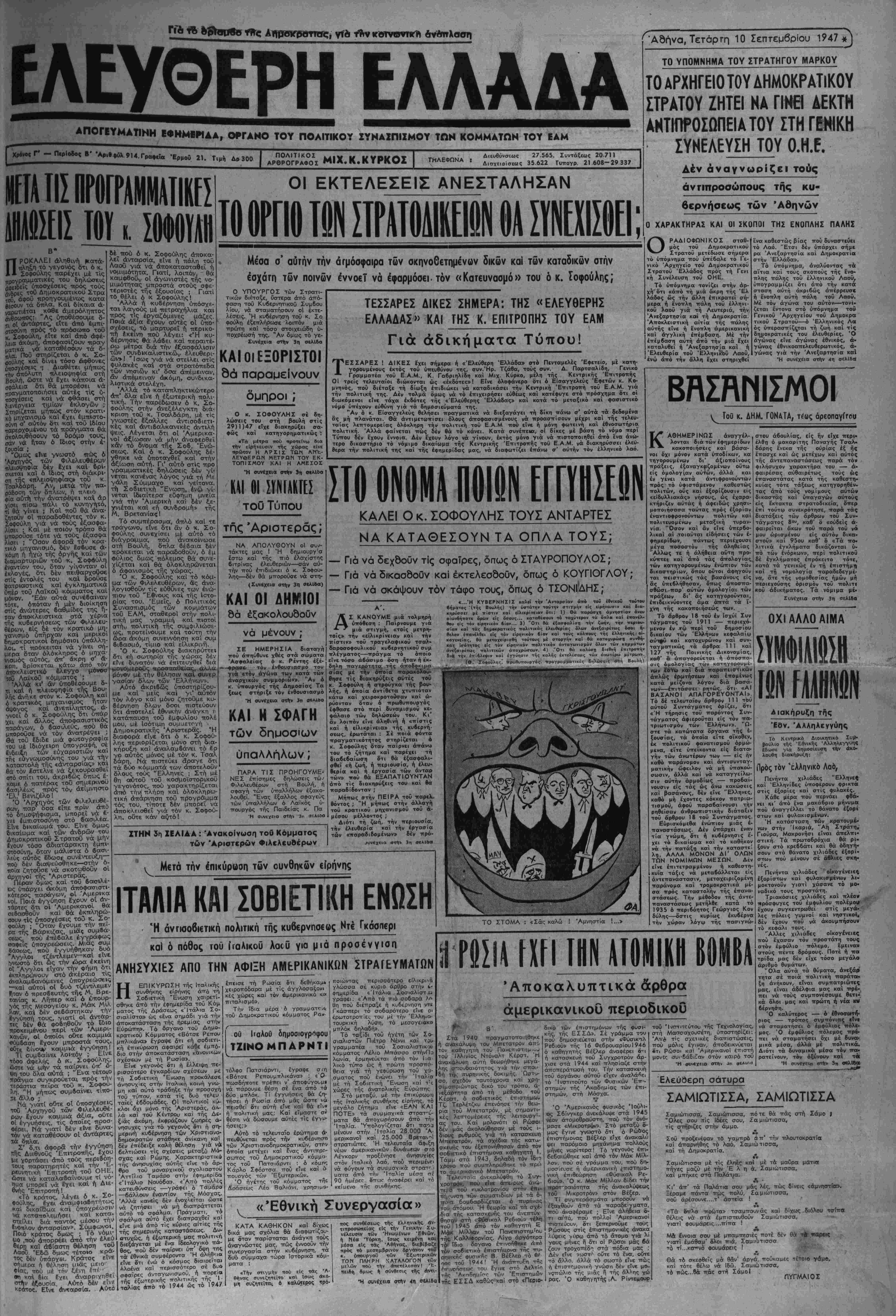 ΑΠ0ΓΚΥ*ΑΤΙΝΗ ΕΦΗΜ1ΡΙΑΑ, ΟΡΓΑΗΟ ΤΟΥ ΠΟΛΙΤΙΚΟΥ ΣΥΝΑΖΠΙΖΜΟΥ ΤΩΝ ΚΟΜΜΑΤΩΝ ΤΟΥ ΕΑΜ