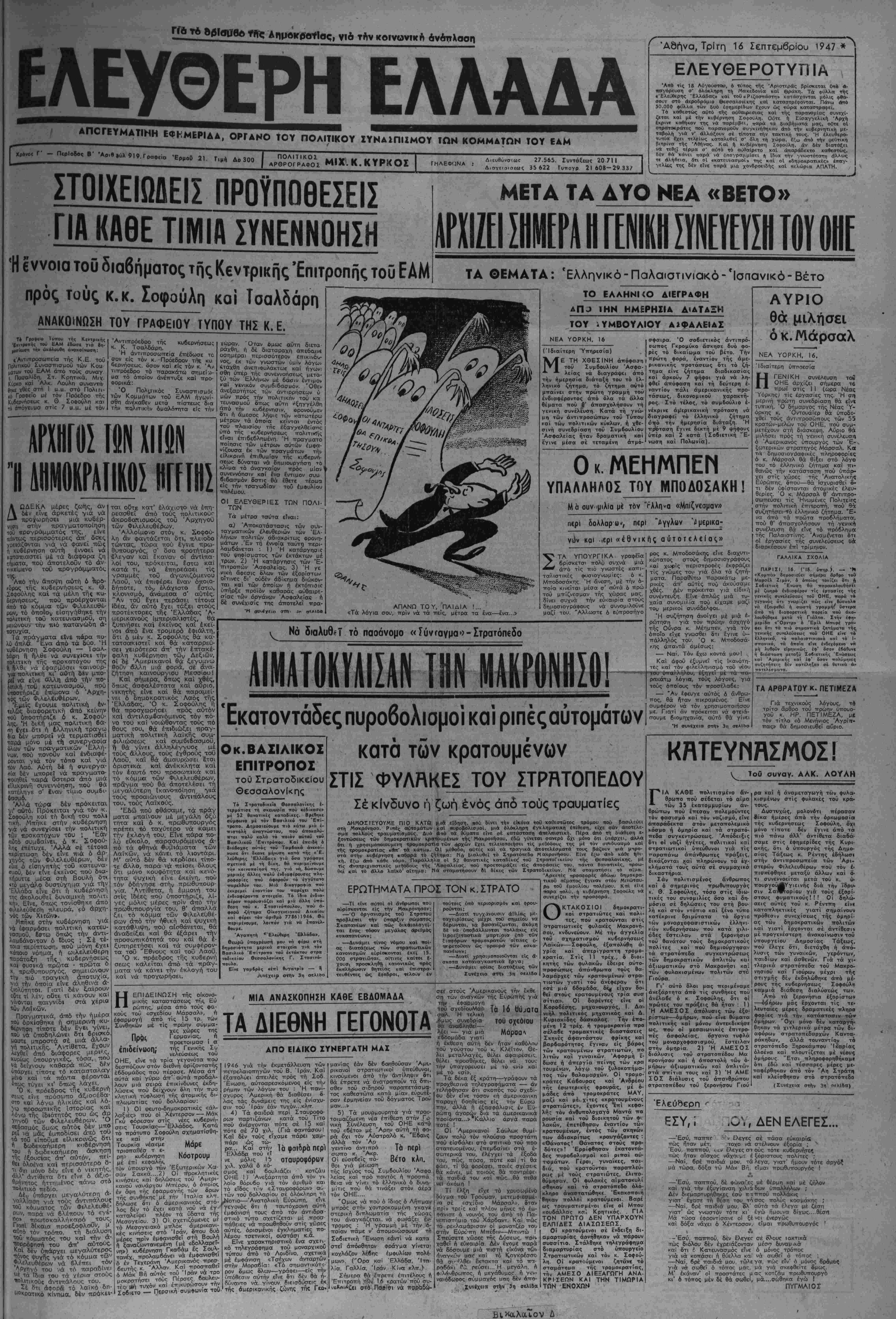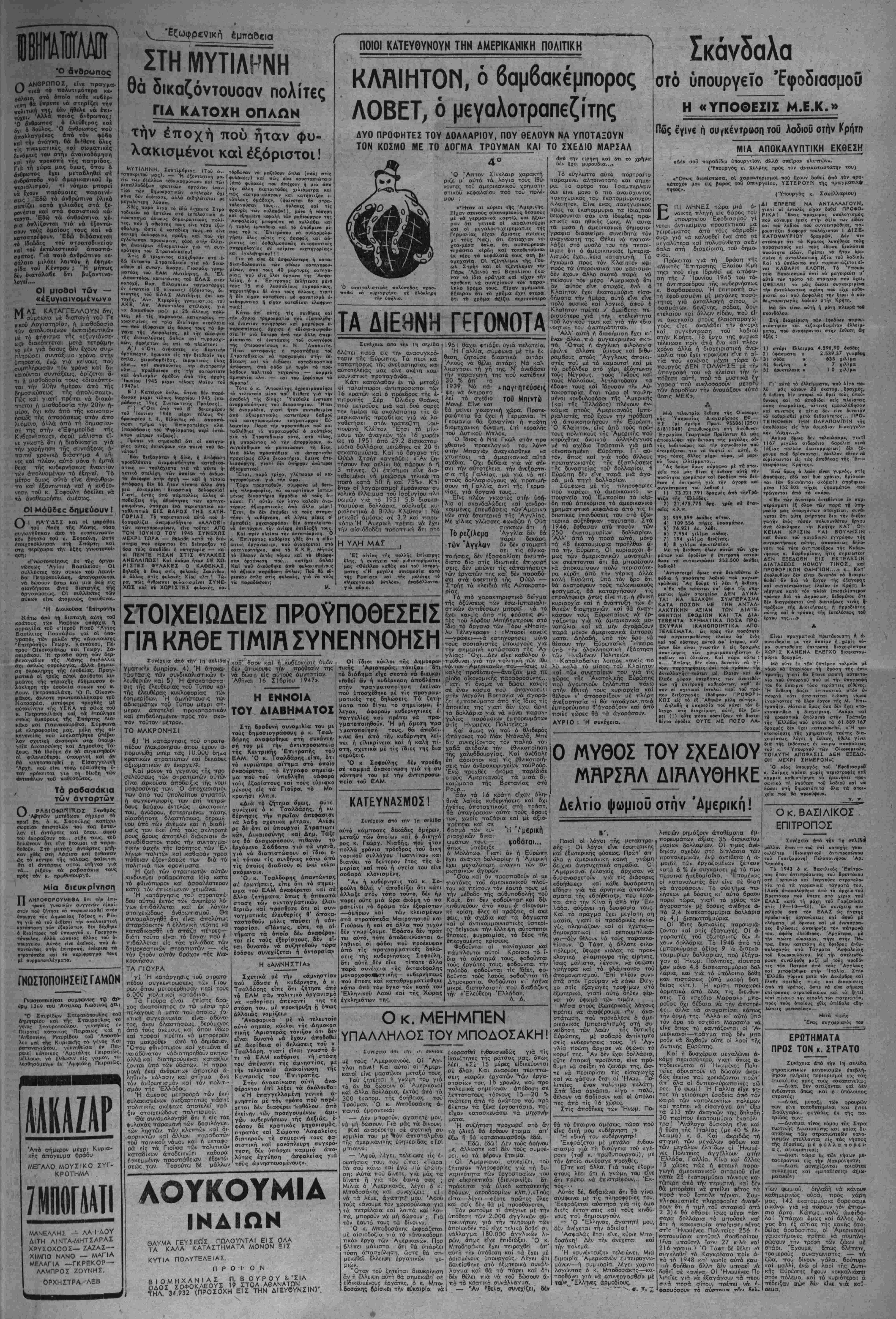Άδήνα, Τρίτη 16 Σεπτεμβρίου 1947*