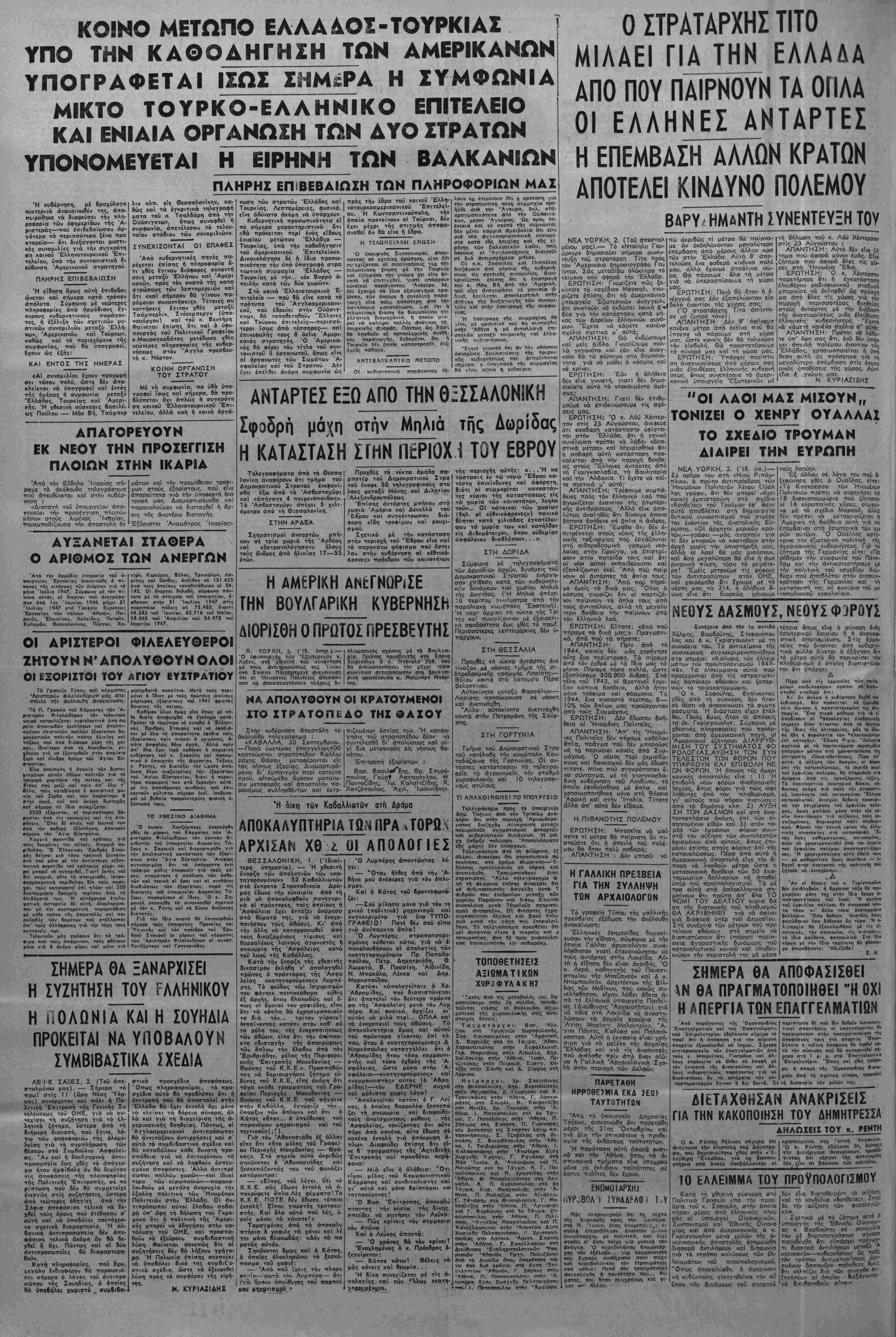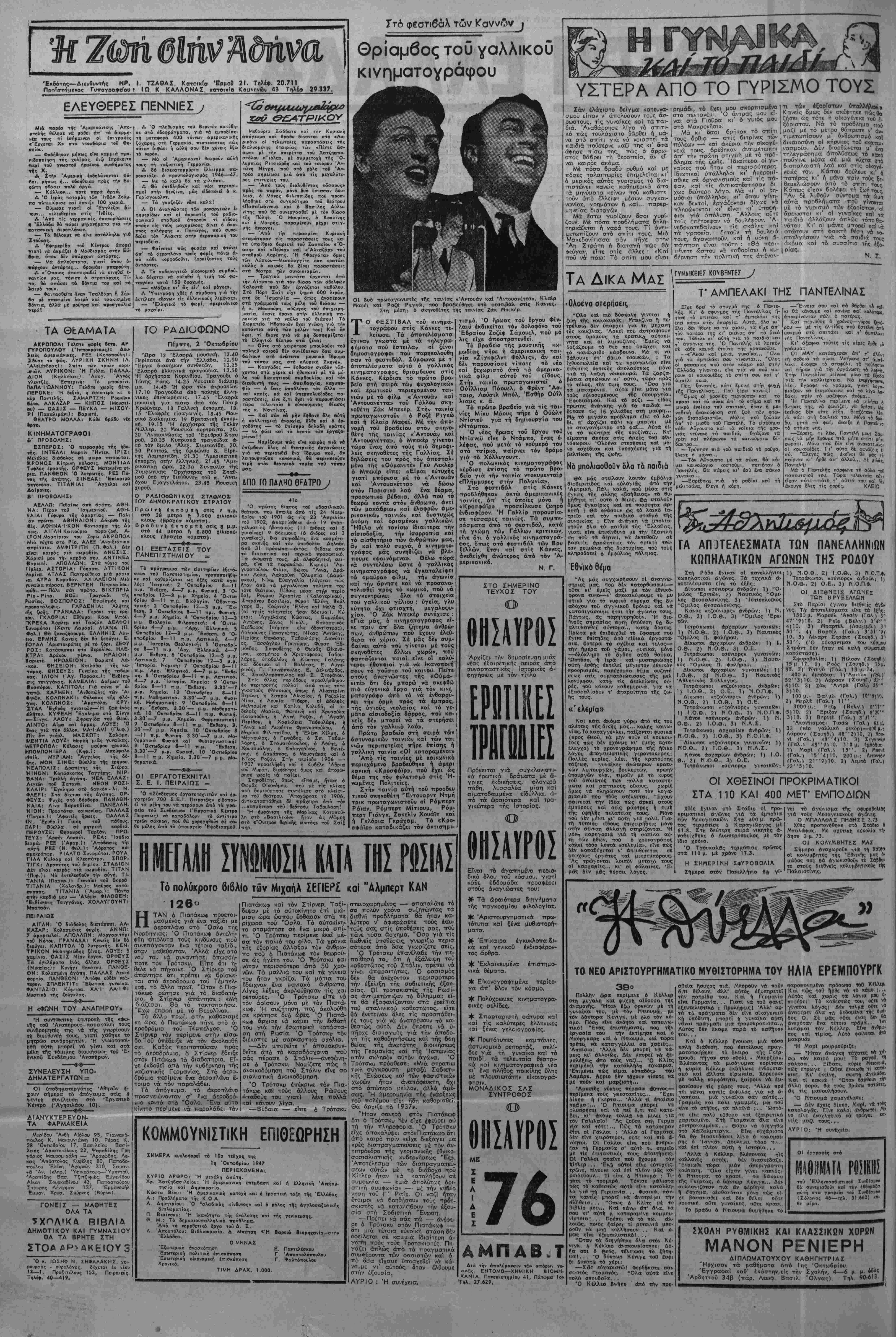 'Αδήνα, Πέμπτη 2 ΌκτωβρΙου 1947