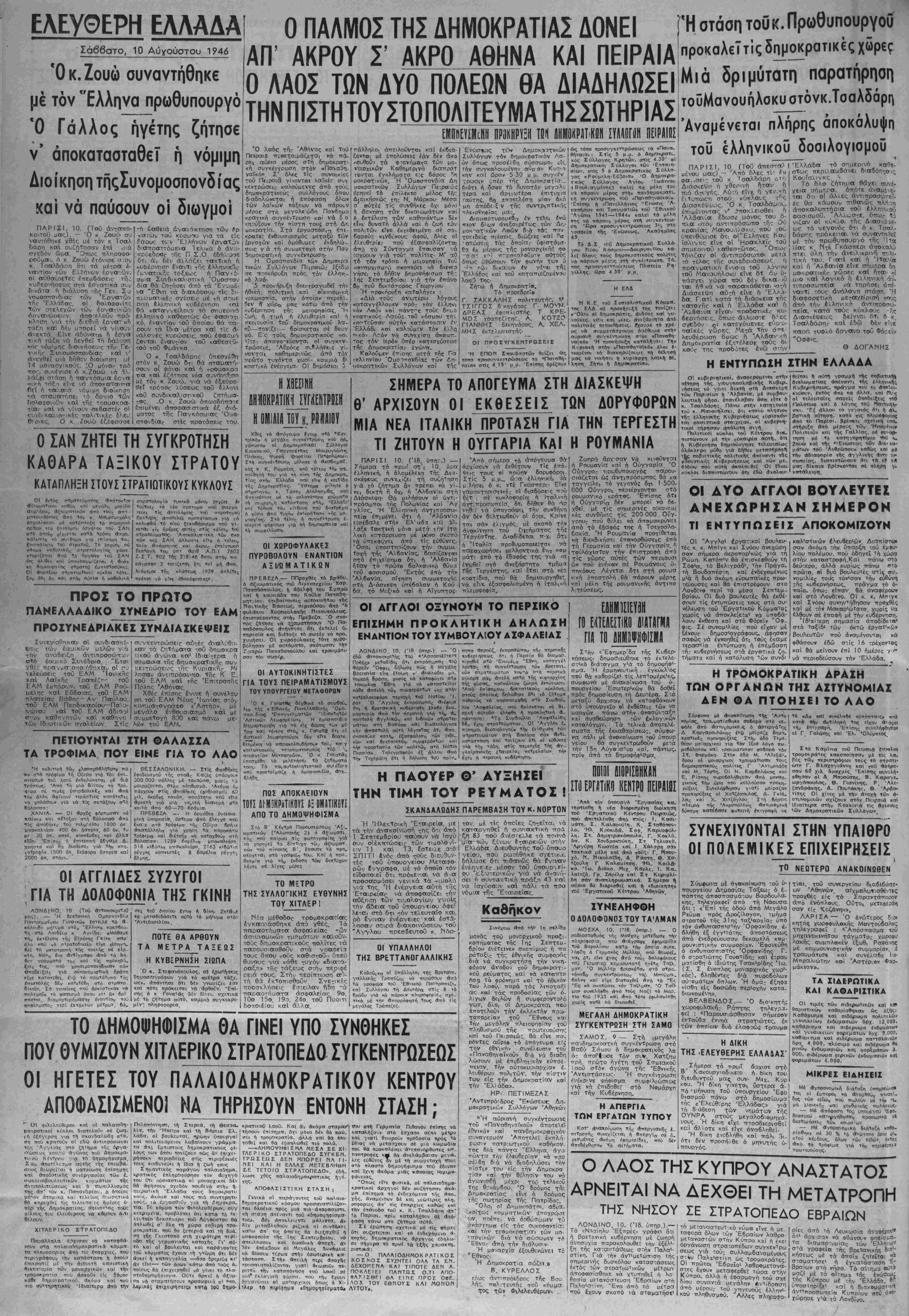 'Α&ήνα, Σάββατο 10 Αύγούοτου 1?46