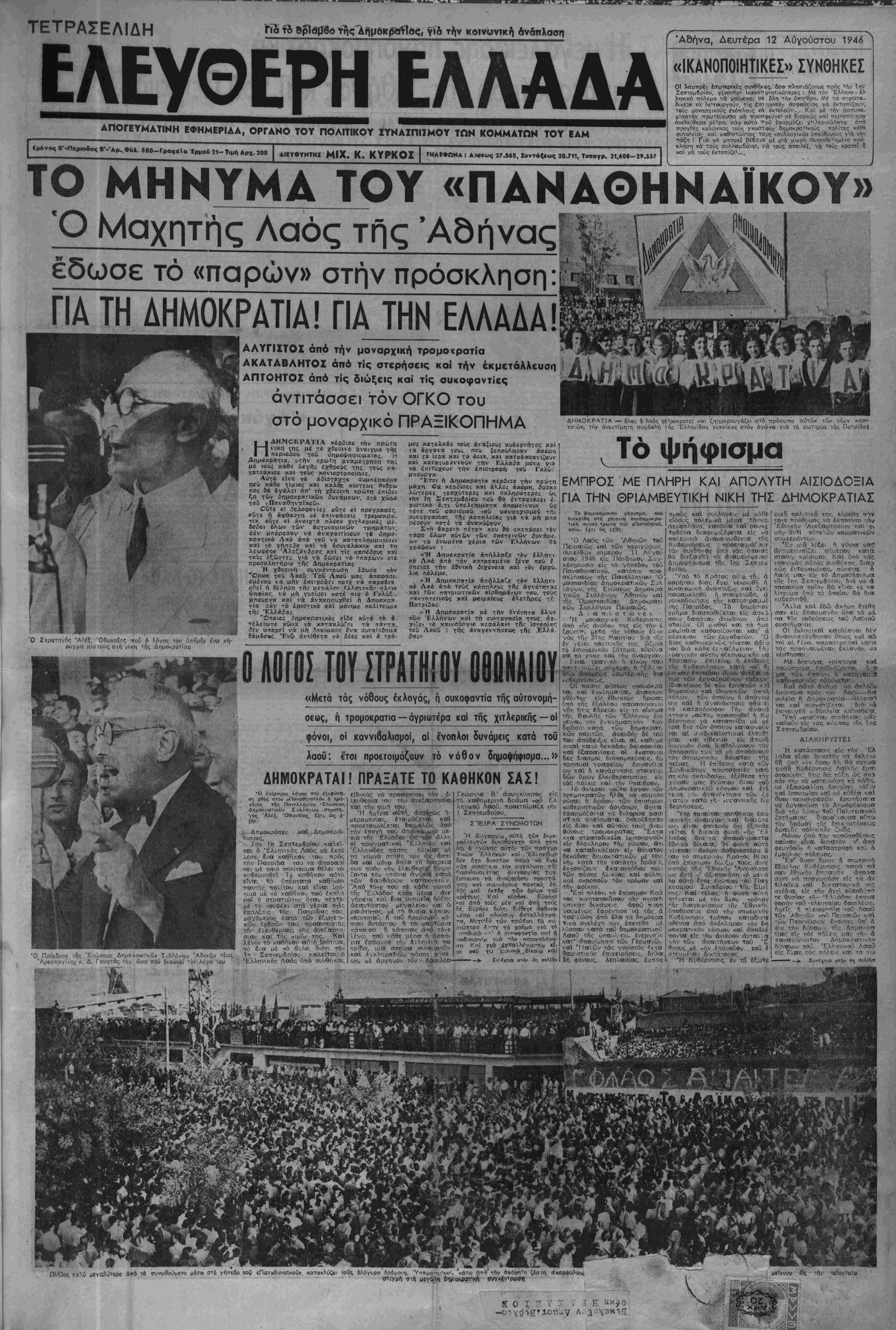 'Α&ήνα, Δευτέρα 12 Αΰγούστου 1946
