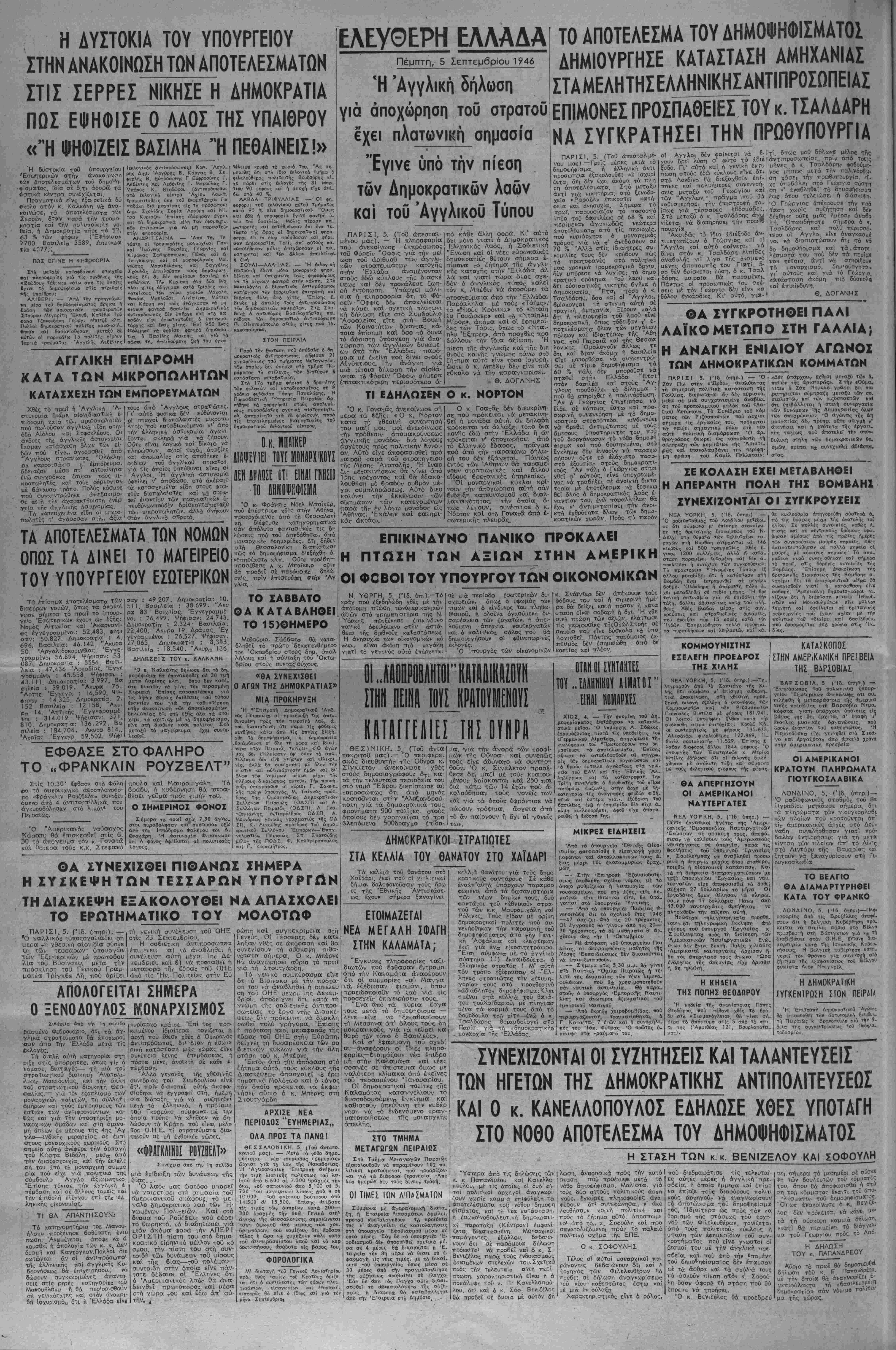 'Αδήνα, Πέμπτη 5 Σεπτεμβρίου 1946