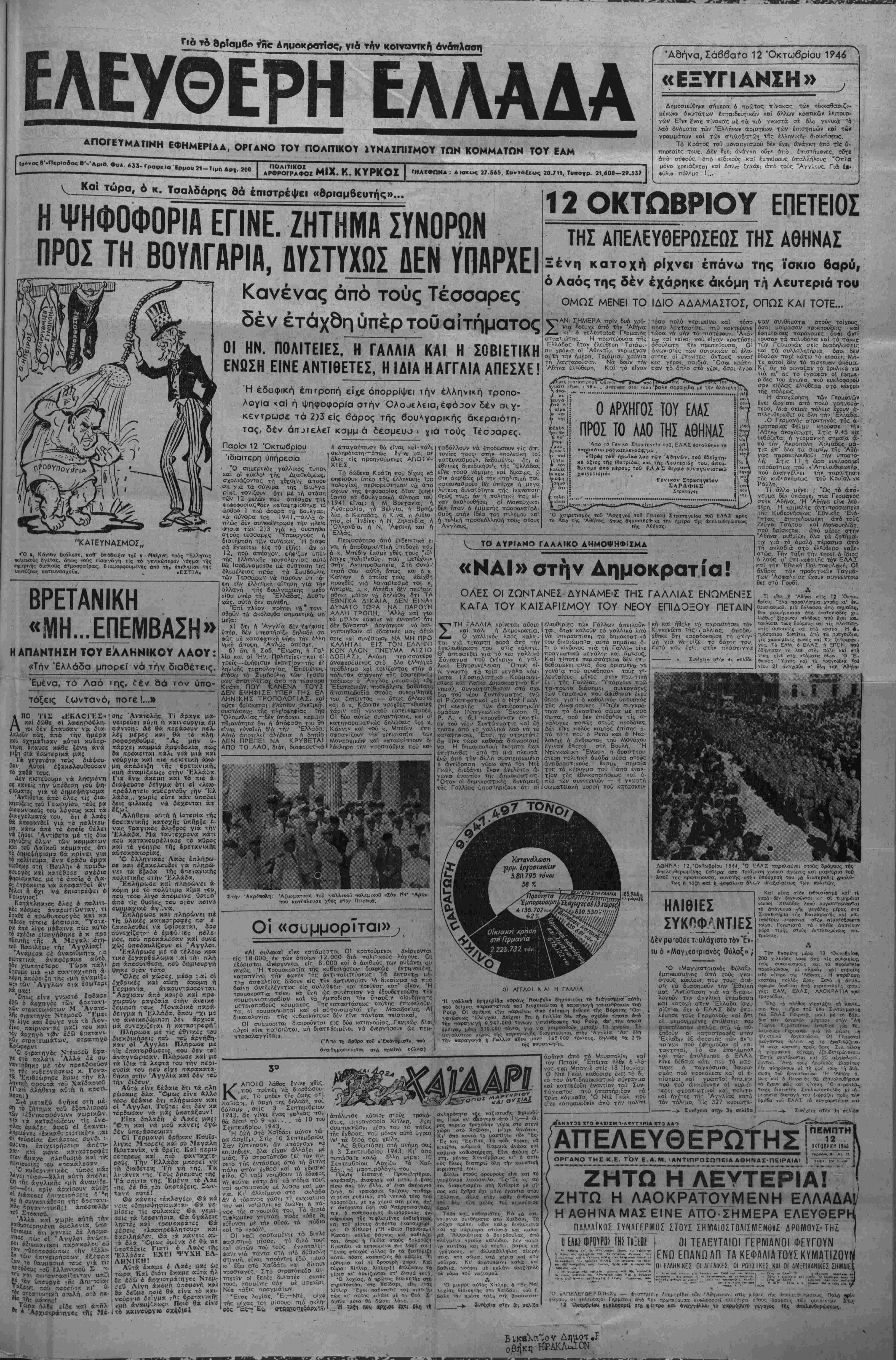 Άδήνα, Σάββατο 12 Όκτωβρίου 1946