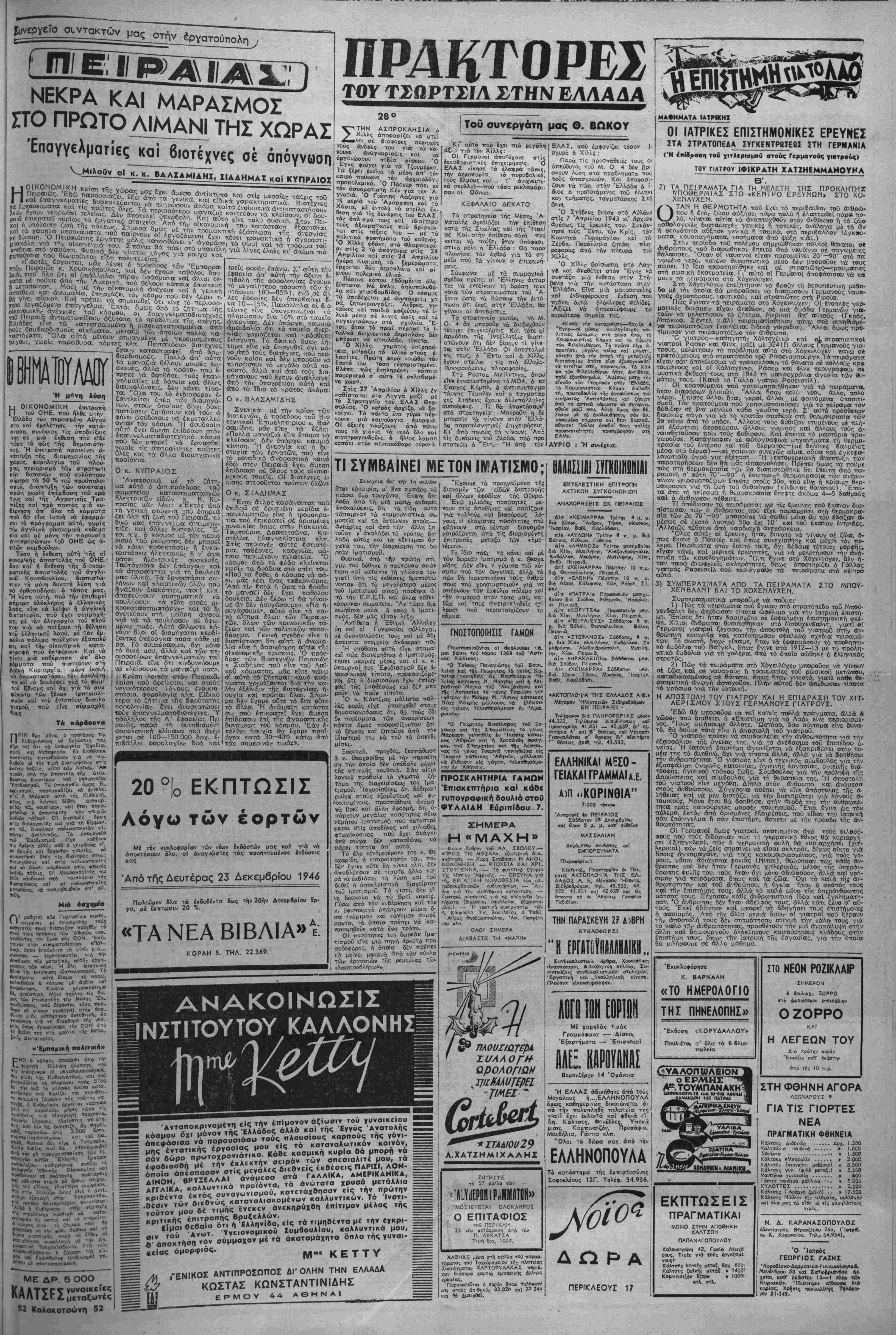 Άνακοινώθηκε αττό τό οπου<, νειο Δηιι. "Εργων δτι ή τκχρο- νη νερου κατά τήν τταροτυονήνι των Χριστουγέννων καΐ τήν ή- μερα_των Χριστουγέννων 6—ω< κα Ιττ)ν παραιαονή της τ.ρατο· νρονιας_καί την ήιαέρα της τιρ» τογρονιας θά νίνεται 8λη τήν ήμέοα. ΑΙΑΖΩΘΗΚΔΝ ΟΙ 400 ΤΑΞΙΔΙΩΤΕΙ Τό^ Γενικό Έττιτελεΐο Στρατολ ανεκοίνωσε «δτι τμήμοττα στρατοθ της ταξιορχίας Λαμίας σπΐιίσαν τα^ έ—ι τόττου μεταξύ ΔομοκοΟ κσ.« Λαμίσς δττου άττεκλείσθηο-αν 50 αυτοκίνητα μέ 400 έτπβατε-ς, απηλευθεριοσαν τό δρόμο και διέ σωσαν τούς ταξιδ ώτες. Τά π>ρΐ
