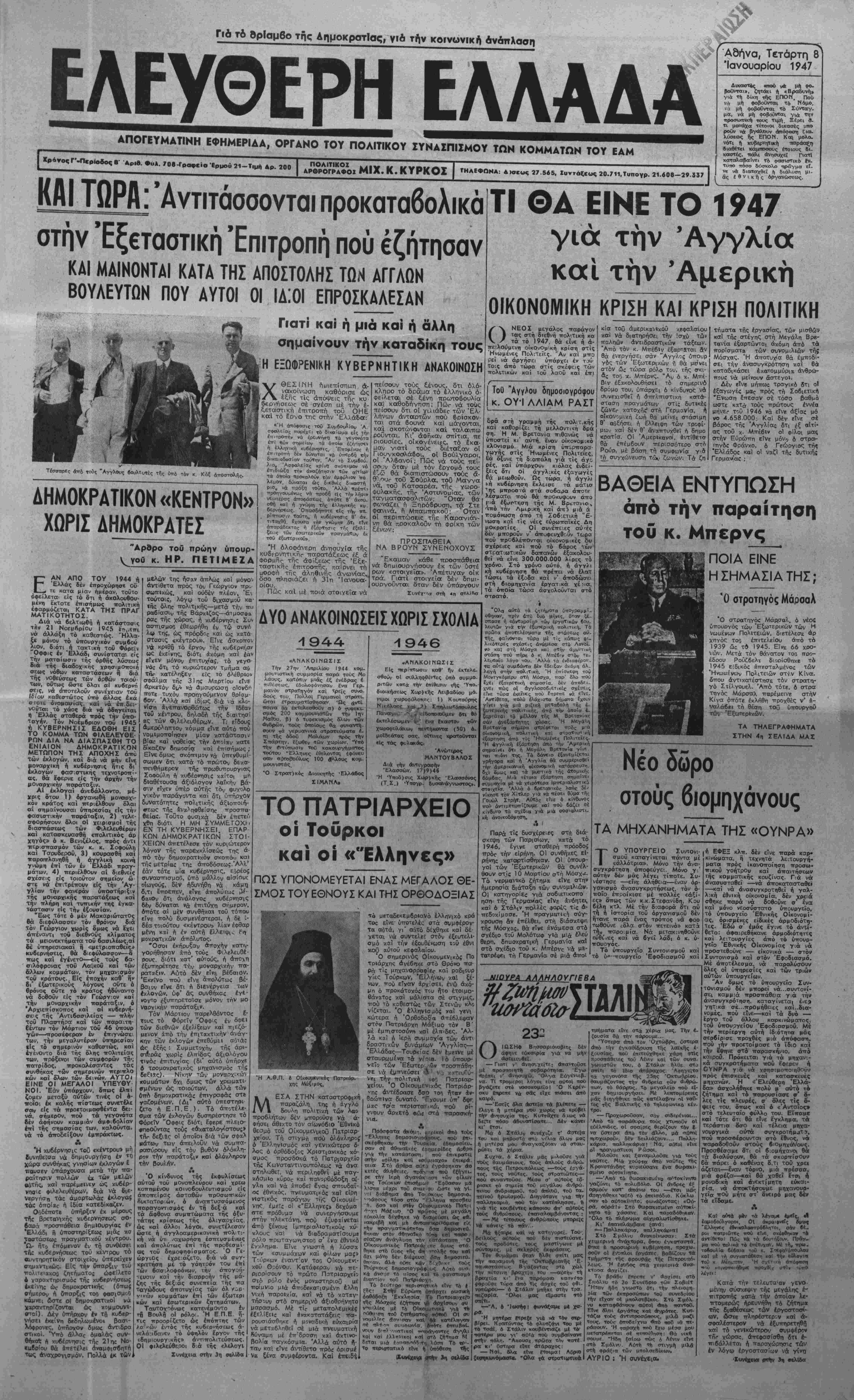 μο, νά μή <(κ»βοΰνΓαι γιΛ την προσωπτΐική τους τιμή. Ξέρει 9- τι μανάχα τέτοτοι δικασές μκο ροΰν ν& βγόίλθυν Απόφαση Γ κ», λύσιανς ής ΕΠΟΜ. Κ αι μολα. νοΤι ή κυβερνηΐυκή ".ράαξτ) βιαθέτει καμ—σους έτοιους 8ι. καχττες, ποτλι άνησυιχεϊ ΓΐατΙ κ«—ΛαβίχίνΕι το φασιοτικο ίν- τιττο τόσο δΰσχολο πρα-γμα εΤ- νέ νά διοπαχθεϊ ή διαλύση μι- ας έ β ν ι κ ή ς οργανώσεως. Γιατί κα. ή μιά καί ή αλλη σημαίνουν την καταδίκη τους Η ΕΞΟΦΡΕΝΙΚΗ ΚΥΒΕΡΝΗΤΙΚΗ ΑΝΑΚΟΙΝΩΣΗ Χ Τίσσαρες *ττ4 τους "Αγγλθυς βθυλίυτές τής υπό τδν κ Κόξ Αποσταλή. ΔΗΜΟΚΡΑΤΙΚΟΝ «ΚΕΝΤΡΟΝ» ΧΩΡΙΣ ΔΗΜΟΚΡΑΤΕΣ Αρδρο τού πρώην ύπουρ- ΗΡ. ΠΕΤΙΜΕΖΑ κ. ΕΑΝ ΑΠΟ ΤΟΥ 1944 ή Ελλάς δέν έπροχώρησε ου τε κστα μίαν ημέραν, τουτο όψείλεται είς τό δτι ή άκθλουθθυ- ρενη έ'κτοτε επισήμως πολιτική ίφαρμόζετα, ΚΑΤΑ ΤΗΣ ΠΡΑΓ ΜΑΤΙΚΟΤΗΤΟΣ. Διά νά βελτιωθή ή κατάστασις ιλν 21 Νοεμβριού 1945 («..ε—. νσ άλλάξη τό καθεστώς. "Ηλλα- ξε μόνον τό υπουργικόν συμβού λιθν, διότι €ή τακτική τού Φόρειν Οφφις έν Ελλάδι συνίσταται είς Την μστβίωσιν τής όρθής λύσεως δια τής διαδοχικής χρησιμοποιή σεως νόθων καταστάσεων ή διά της νοθεύσεως των όρθών τοιού¬ των, οίίτως ώστε _ο'λαι αί κυβερνή ο«ις, νά άποτελούν συνέχειαν τού ιδίου κοθεστώτος ΰπό άλλας έκά οιοτε ό—ρανίοτς, καϊ νά. έπ.διΐ- νοΰται τό χάος διά νά όδηγεϊται ή Ελλάς σταθερά πρός την υπο- -Ιαγήν. Τόν Νοέμβριον τού 1945 μελών της ήσαν απλώς χαϊ μόνο1 άντίθετα ττρός τόν Γεώργιον προ σωπΐ/ώς. καί ουδέν πλέον, Έ τούτοις., λόγω τού διχασμοθ κα ή δλ λή γ ιχμ τής δλης πολιτικής—μετά τήν π< ραβίασΐν τής Βάρκΐζας—άτμοσφα ρας τής χώρας, ή κυβέρνησις Συ αοττι,σμοο εθεωρήθη έν τ£ι συνΛ λω της, ώς προρδθο και ώς κατά στάσις «κέντρου». Είνε δσχοπο να κριθή τό έργον τής κυβερνήσι ως έκείνης. διότι άκόμη κα! £« είχεν μόνον επιτυχίας, τό γ*γθ νάς δτι, τό κυριώτερον τμημΐα αύ τΑτ κατέληξεν είς τό όλέθρΐοι σφάλμα τίκ 31 —ς Μΐρτίου είνε αρκετόν δΐ/ί» νά Λμαιφωσ^ οΐονδη ττοτε τυχόν προηγούμενον θρΐσμ βον. Άλλά κσϊ ιδιωζ διά να κλ&- νίσπ άνετΓανορθώτος την Ιδέαν ΤοΟ κέντρου, δηλαδή τής διαιτησί άς των Φιλελεύθερον. Τ; είδους ή ΚΥΒΕΡΝΗΣΙΣ ΕΔΟΘΗ ΕΙ Σ αμ*ρόληπτον κόμμα εΤνε αύτό πού ΤΛ IX /^ 111 Ι Λ ·τ-^>^.1 ^^ ι α *— Α Γ·ν// — ε ϊ/λ. ■ · ■ ι π. ■> ι . . ' -__ . . __. ^ —~ ^,__,