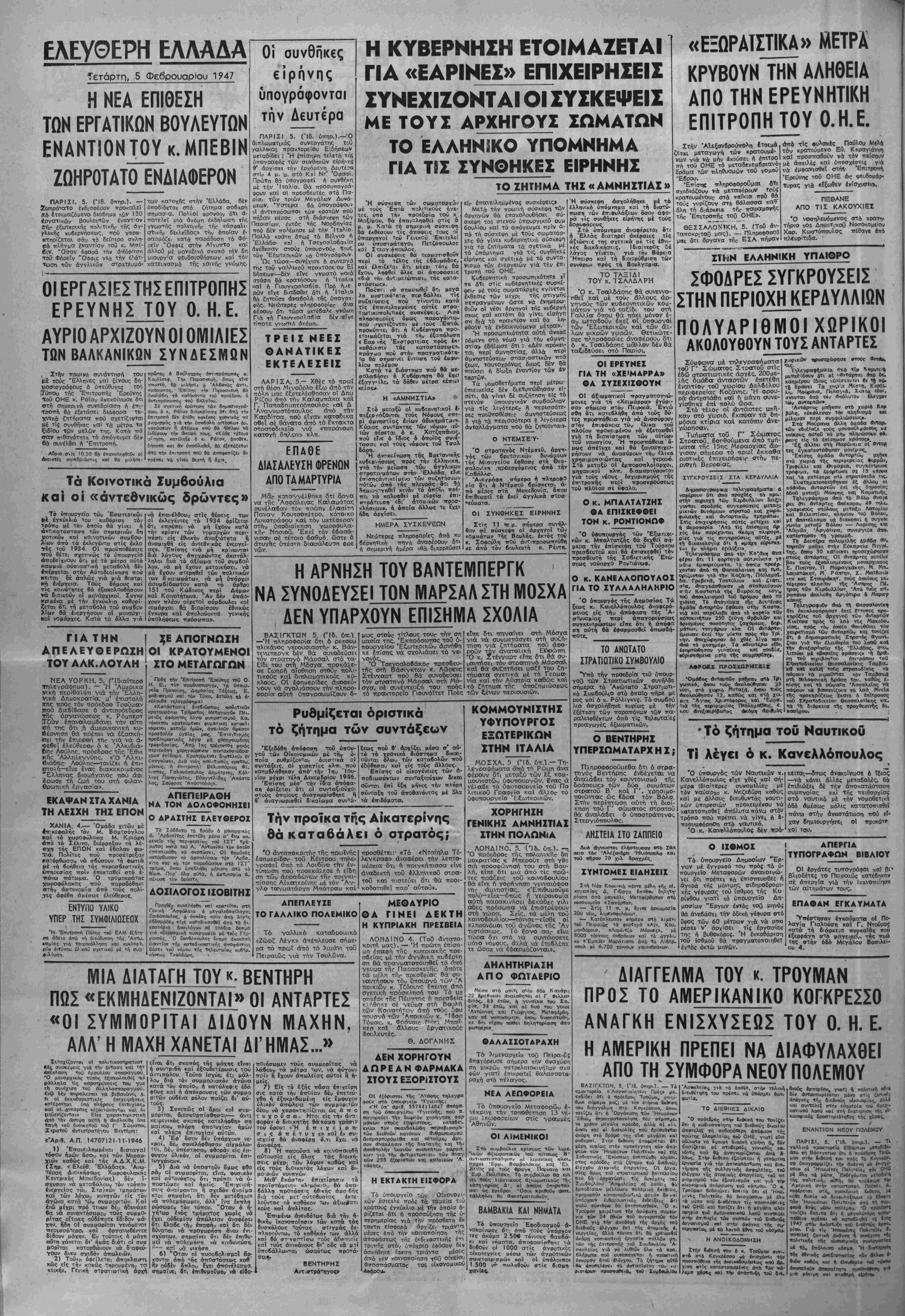 'Αδήνα, Τετάρτη 5 Φεβρουαρίου 1947