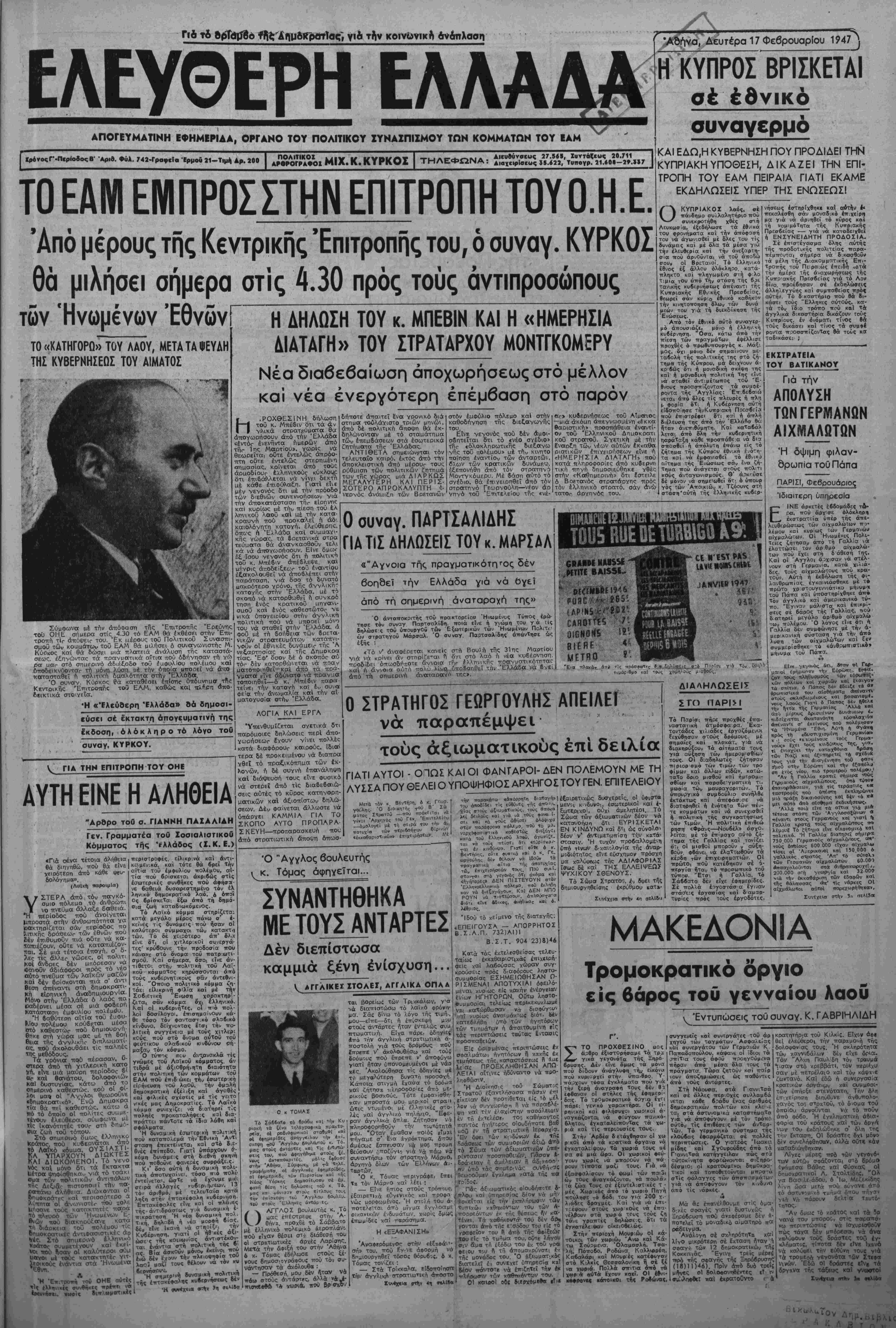 ΑΠΟΓΕΥΜΑΤΙΝΗ ΕΦΗΜΕΡΙΔΑ. ΟΡΓΑΝΟ ΤΟΥ ΠΟΛΙΤΙΚΟΥ ΙΥΝΑΙΠΙΙΜΟΥ ΤΩΝ ΚΟΜΜΑΤΩΝ ΤΟΥ ΕΑΜ