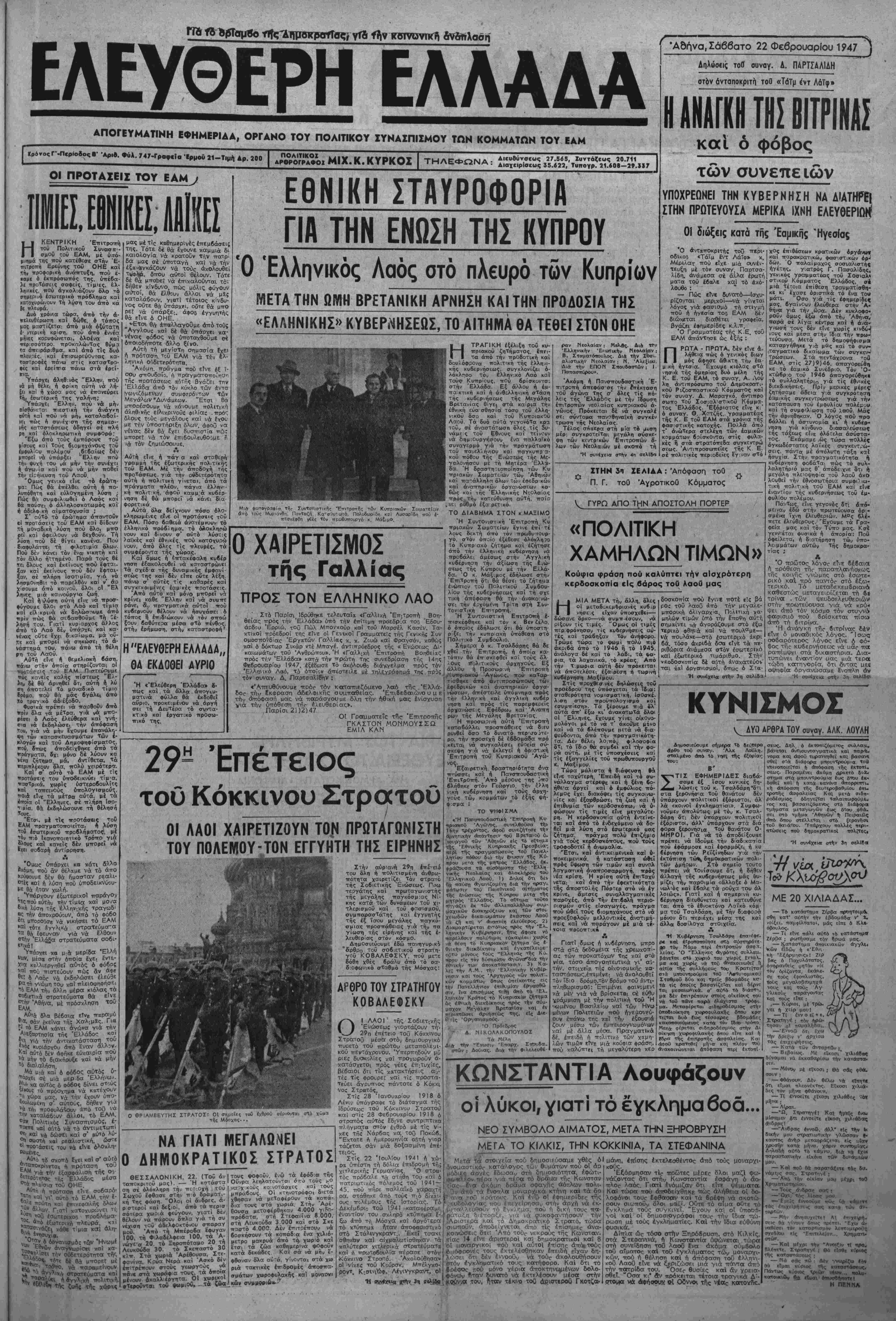 ΑΠΟΓΕΥΜΑΤΙΝΗ ΕΦΗΜΕΡΙΔΑ. ΟΡΓΑΝΟ ΤΟΥ ΠΟΛΙΤΙΚΟΥ ΣΥΝΑΣΠΙΣΜΟΥ ΤΩΝ ΚΟΜΜΑΤΩΝ ΤΟΥ ΕΑΜ