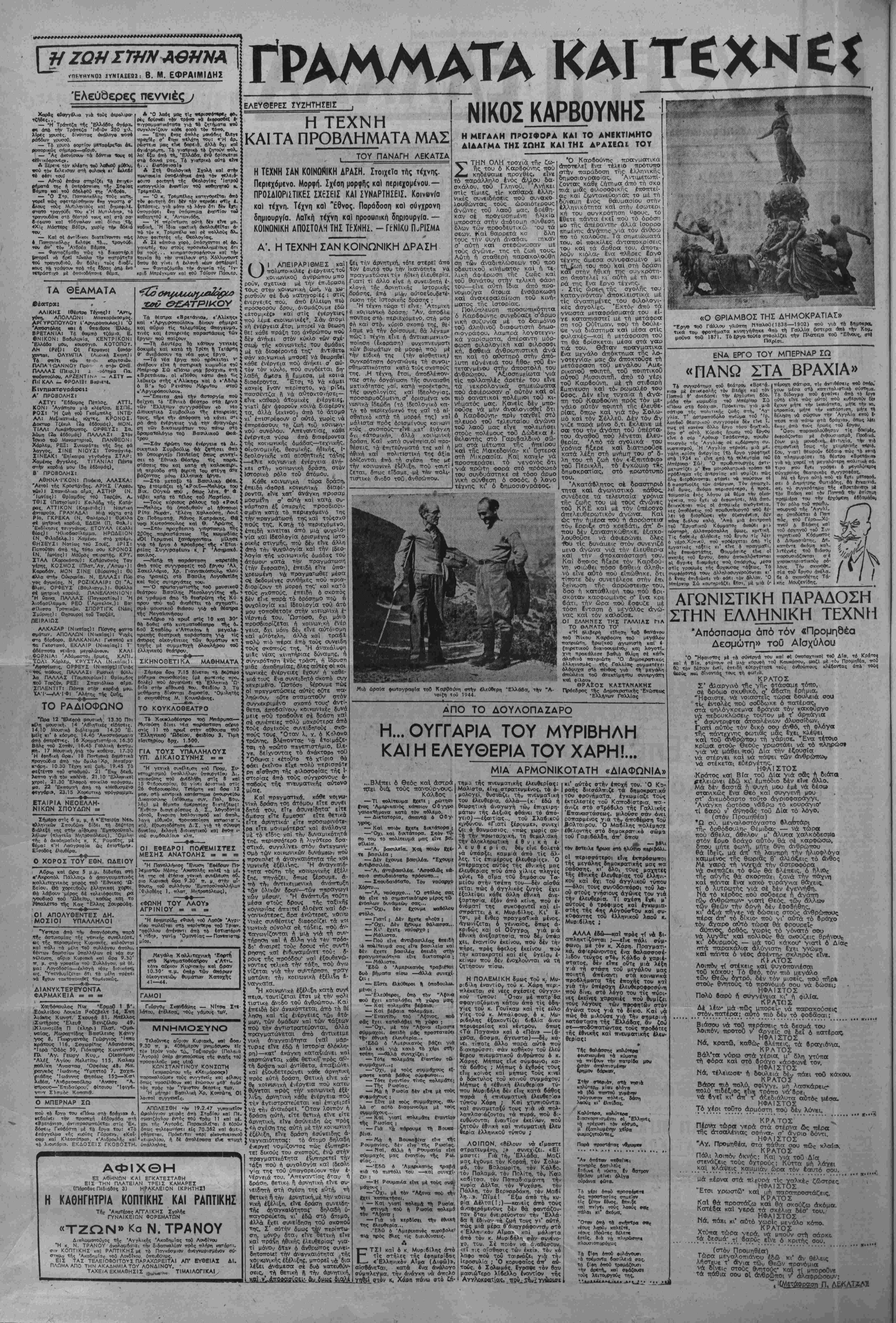 <α άπειράριθμα, καί άπό τίς δυό ττλευ,~ές, καί έπισωρεΰθντας κα- Ταστροφές πάνω στις κατασΤρο- φές καί έρείπια πάν» στά έρεί- κια. Ύττάρχϊι άληθινός "Ελλην, πού νά μη θέλει ή Φρίκη αύτη νά λή- ξει καϊ ή χώρσ μος νά έπανευρει ϊήι; εσωτερικώ της γαληνη; Υπάρχει "Ελλην, πού να μην πΐσθάνετα1. πιεστικη την άνάγκη Ιΐΰτή καΐ πθύ νά μην κβτολαβθί- Ιΐι πώς ή συνέχση τής σημεο'; κης καταστάσεως όδηγει σέ πλή ρη καΐ όλοκληρωτική συμφθρό; "Εξω άπό τούς έμπόρουί τοθ μίσοι/ς^ καί τούς βιομηχάνους τού έμφκλιθυ πολέμου' .βεβαίως δέν μπορεϊ νά ϋπάρξει Έλλην ποΐι την ψυχή τθυ νά μην την συνέχει ί| άγωιία· και ποϋ νά μην πθθεΐ Την είρήνευση τού ΛαοΟ. » Όμως γενικό είνε τό έρώτη- μο: Πώς θά έπέλθει αύτη ή πο- λυπόθητη καί εϋλθγημένη λύση <■ Πώς θά συμφιλιωθεϊ ό Λαός και βά παύσει ό άλληλοσκοτωμός καί ή αδελφ κή αίματοχυσία ; Σ' σύτό τό έρώτημα άποτντθθν οί προτάσεις τού ΕΑΜ καί δίδουν Τή μθναδική λύση πού δλθι μπθ ρεΐ καί όφειλουν νά δεχθοϋν. Τή λύση πού δέ θίγει κανένα. Που διβφυλάττει τί| φΐλοτιμία δλτοι'. Πού δέν κάνει τόν ένα νικητη καί ίτόν αλλο ήττημένο. Παρά ·τούς βέ Τει δλους κσί έκείνους πού εφται- ξαν καί έκείνους πού δέν ε'φται- ξαν, σέ πλήρη ισοτιμία, νιό. να λησμθνηθί.! τό παρελθόν καϊ ν ^άρ ν,ίσουμε άπό κοινοϋ, δλθι οί "Ελ ληνες μιά καινούργΐα ζωη. Καί ήλύση αύτη είνε να προσ- φύγθυμε ολθι στό Λάό καί τιιιΐα καί εΐλ κρινά νά δηλώσουμε^ άπο πρΐν πώς θά σεβασθοΰμε Τη θε¬ λήση τού. Γιατί κυρ.αρχος α)λος άπό τό Λαό δέν ΰπάρχε, καϊ κα- νένας οϋτε ε'χει δ'.και'ωμα, μά ου- ΙΓε καί μπθρει νά σηκωσΐιτόα- άά ά ΙΓε καί μπθρει νά σηκωσι^ νάστημά τού, πάν» άπό τή θέλη ρη τού ΛαοΟ. Αυτή είνε ή θεμελιοκή βαση, «άνω στήν όποία στηρίζονται οί *Η"άΓς'ζ τ=ΰ ΕΑΜ. Πιστεύουμε —ώς κανείς καλής πίστεως "Ελ¬ λην 8έ θά άρνηθεΐ 8τ, αυτή ή λύ «τη αποτελεί Το μθναδ.κό τίμιο ίρδμο, πού θά μος βγάλει άπό ϊό τραγικό άδιέξοδο. ... Φυσΐκά πρέπει νά παρθουν άπό «ρίν ολα τα μέΤρα, γιά νά μπο- ρέσει ό Λαός ελευθέρα καί^ γνη; οια νά εκδηλώσει την άπόφασή ίου, γιά νά μην ε'χθυμχ έπανάλη· ΐη των κατασκευασμάτςον των ε- κλογών καί τού Δημοψηφίσματος, πού, 8π«ς άποδείχθηκε άπό τα πρόγματα, 8χι μόνο δέ λύουν κα νένα ζήτημα. μά, άντίθετβ, ,ιά ιτεριπλεκουν δλα, πθλυ χειρότερ*. Καί σ σύτό τό ΕΑΜ μέ τίς προτάσε·ς τού ύπθδεικνύει τίμ-σ, παοΤρικά, χωρίς ύστεροβουλίες κοί ταπεινθύς ύπολθγισμού^, τοιά είνε τα μέτρα αύτά. μέ τα όιτοϊα οί "Ελληνες, σέ πλήρη Ιστ>