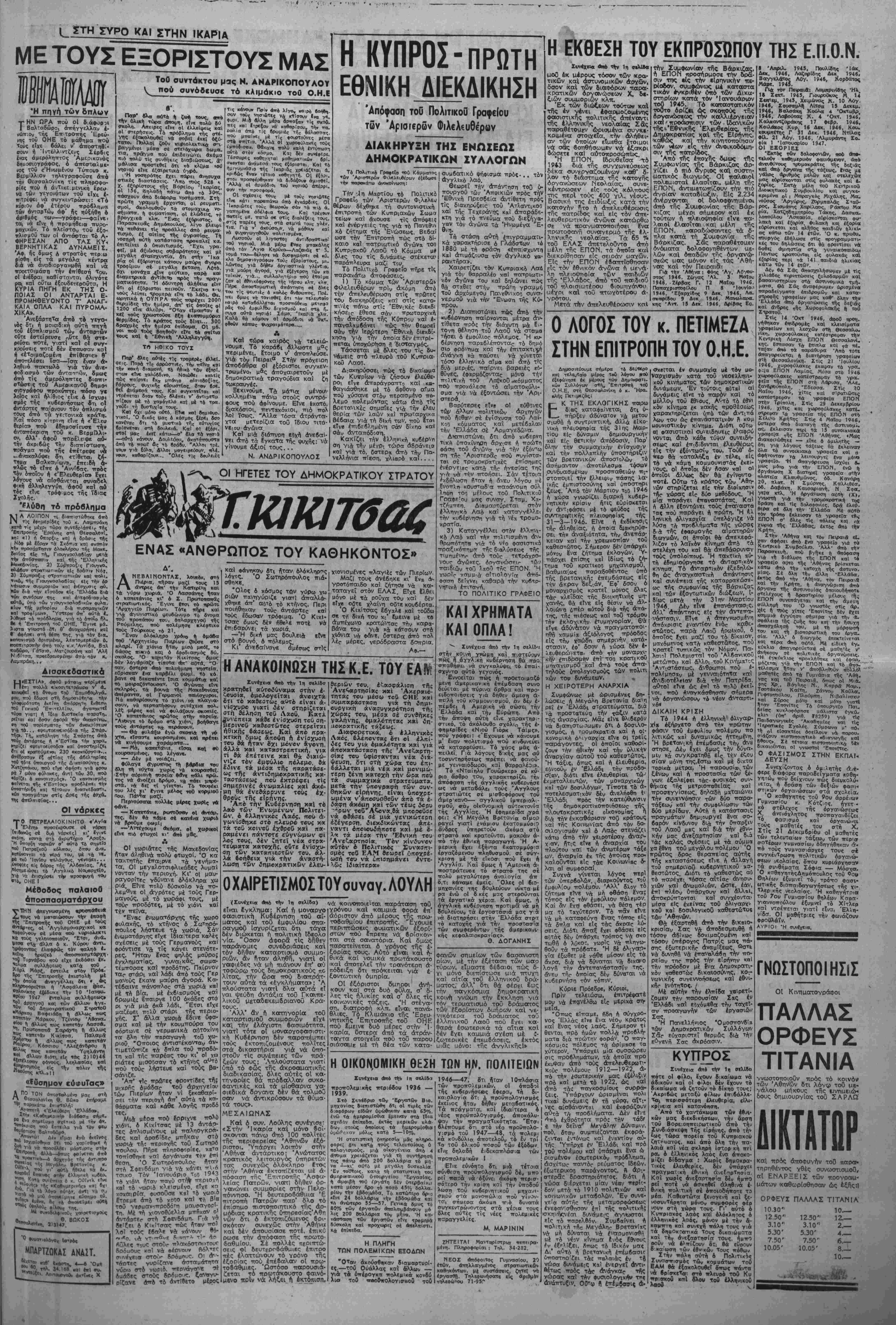 τας, Σώτος Χρυσοχόος, ΣΤέργ<θς Χατζηνικθλάου. Μιχ. Νικηφορά¬ κης. Β. Χριστόπουλος, Δημ· γιουμτζόπουλος, Τάσος Κουκου- μπατσης. Όλοι ο, τταραττάνω κρατούνται στό 10 άστυνομικό τμήμα. Στά Νέα Σφαγεΐ* οί άδελφθΐ Άλέκθο κα! Μιχάλης Σφυρίδηί στό Δουργοΰτι οί Ν. Χατζηγΐάν- νης, Ίτπτοκράτης, Μπαρμπανιάν νης καΐ αλλοι 5 ίίως 6. Στοα Γκύθι ττΐάοτηκαν'οΐ Γιάν νης ΠατΓασττύρου, ταγμιχτάρχης έ. ά. γραμματέας τοΟ Δημοκρα¬ τικόν Συλλόγου, Δημ. Μπάβσς, "Ηλ. Λιβιερατος, Αθαν. Ντούνη;, Μιχαήλ καΐ Δημήτριος Κχνιώρ- νης. Στό Κολωνάκι συνελήφθησαν ο| Κυριάκθς Κίζας %α Γρηγόο»- ος Χάρακος, Στή Νέα Σμύρνη οί Χατζσπου λος, Λάππας, Άθανασίου »·1 πολλοΐ αλλοι. Στήν Πλάκα ό ανεψιός τοϋ Σαράφη, "Αλκηο Σα- Στήν Κσλλιθέα οί άδελφοΐ Πά ναγιώτης Σπθρος κ«1 Γεώργιος Σαμουλ·'δη. ό Παναγιώτης Χασα πίδης, 'Ελ. Παπαδόπθυλος, Μιχ. Μΐμιτόττουλος, Στ« Τουρκοβούνια (, ΆΘ. Νικο λακόπουλος στέλεχος τού ΕΑΜ καί πολλοί αλλοι. Στό Νέο Κόσμο οί Χρήστος, Θ*ν«σηο ν.«ί Γεώργιος Καφετζής Στοΰ Μέτςοΐ Ι. Κοτσοδήμος '_ 'Ελ. Τοτ6μης τού Δημοκρατι,κοΰ συλλόγθυ της συνοικίας Στό Περιστέρι συνελήφθησον τριάντα περίπου μεταξύ Των ο¬ ποίων είνε 6 σμηναγός Μωραΐτης καϊ οί Γ. Βιδάρης καΐ Γ. Ήτγι- ώτης. Στί,ν Κιχλλιθέα συνελήφθη ώης. ΣττΛ/ Κχ ο-αν επίσηί οί Καμπλίδτνς., Ψωμιάδης καΐ άλλοι πολλοί. ΑΛΛΕΐ: ΣΥΛΛΗΨΕΙΣ •Επί—ς συνελήφθησαν οί φ συνοικίες τής ■Λ&ήνας οί Παναγ. Κβ ρατσόλης, Κ. Βαμβακδς, θ. Φατσε. άς, Χρ. Ρθυμελιώτης, Χρ. Βουρτσί- λος, Άντ. Κσραμσνλίδης, απόστρα. τος άξιωμ<ττικ6ς, Β. ΧριστΰιτουλΛς (ΓοΒβσ), "Αγγ. Λυκούδης (δδθς 'Α· ιτόλλωνος), ΕΓ)4γγ. Γλην6ς (Κο«α. νδς), 'Α0. ΠαΒΐακόκττας, κσΤαΒικα- σμενος σέ θάνστο άκ6 τοΰς Γερμα νούς και Λ. Παπακώστος. ΟΪ 8υ6 τι λευταϊοι κακοττοιήθΐικσν στο Τμήμα τής Μίσς Σμύρνης. 'ΕτΐΙ—ς συνελήφβησοτν οί χ Έλ. Χστζη ιωαννίδης, Όσταμτκχσίδης, ΓΤο ΜοπρΙΛης, Βελούδης, Γ. Ρουμελιϋ- της, Ν. Νικολετόιΐουλος, στέλεχος τοΰ Κ.Κ.Ε., Ευστ. Ρωμανθς, 6δοντο- ιατρος (Γαργαρεττοί)^ Λ. ΔεσιτοτΙδης, <ττέλεχος τ?)ς ΕΠΟΝ, Χαρ. Γιοτννακί. ποι-λος, πρώην ότστυφύλακας, Λ,ϊγον- στής Φιλιπποττολΐτης, Λ. θεοδοσοπου. λος, ηρώην Λστυφύλσκσς,' Μάρκος ΚωβαΛς, Σπ. ΜελΛύδης, Γ. Νοτυ- πλ·ώτης κ αί ή άδελφή τού, Μ. Κρεμ. μύδας, τυττογράφος, Γ. Κωστακιις (Μ. Κόσμοτ). Στ6ν "ιΊνΐΛ ΚωνστβντΤνο Τ6ν Π<χ- λαιό συνελήφθησαν περί ΐο 40 *το. μ«. Στή συνοικίο ΜέΤς συνελήφθη Λ ττρθιδρος τοΰ έκεϊ ΔημοκρατικοΟ Συλ λ6γου ουντ)χης Κονγκαλίδης. Στό τίρμσ 'Αμπελοκήτιων συνελήφβησ»· άτίό τό 14ο Τμήμα περί τα 50 όντομα. Στβ ΠαλαΛ Σφαγεϊα συνιλήφθησα-' οί Χοΐρ. Κατζόγλου, Άθ. Παπαδό- τΐουλος, Ι. Ζαφϊΐρΐαβης. 'Λβ. θρατ. ξαλης ____________ ΣΥΜΤΑΚΤΗΣ ΤΟΥ «Ρ1ΖΟΣΠΛΣ1Ή, "Οργανα τοο ϊου Παραρτήμα—ς Ασφαλείας μ' ίτΐικεφαλής τόν βιοι· χητή τού. οννίλοβαν στ» σπ(π τού τόν συντακτη τοϋ «Ριζο—άστη» Σί». Λιναρββτο, Ικακοποίησαν 6* τ(ι ιιη· χέρα »*υ. ΓΙ Συνελήφθησαν 4κ6μα στβ σιΚτιβ τους οί δικηγόροι ΉλΙβτ ΉλιοΟ, •Ερμήλιος καΐ Δ. Νικολατδης. Ιτ6 ιτηίτι τοΟ τελευτοΐου οργανα τοΟ ΚΒ' ΆστΛΛβμικοθ Τμήματος Κ—α. οαν τδ τηλΐφωνο γιατ ο ΜικολσΛοης διαμαρτυρήθηκϊ γιβ τη σύλληψή Τοο χωρΐς Ινταλμα. Εγνώσθησαν Λκθμα «Ι βυλλή#ιις τ4ν δημοκρατικ&ν Δημ. Ειλιτολυτβ. ΓεωργακοτΓούλου, Β. Κυριαχοπούλου, Κ. Μαρα, Σπ. ΜτεληΒορια, Γ. Κο»· τοσκίδη, 'Αργ. Μαλιάμου, Ποπταίια. μάντη, Ι. ^οτνθΛκη «αί Κ. Άιτοστο. λίδη .(οί βυό τελιυτσϊος ιΤνϊ Οηάλλη. λοι της Άγροτυκής Τρ—ίζης), 'Α· παρτόγλου και Γάκη, Δ. ΚολλιιΜΐι τ?κ Όμοο—ονδΐοις Δημοσίων Ύπαλ. λήλων. ΙΤΟ ΘΗΣΕΙΟ Ζτήν ττεριψίρίια θηο«(ου ενιν&ββ·) Τοΰς Κυριαζή, ιιοΛιτικΑ ιιηχβτ»ικβ, Χρβ. 