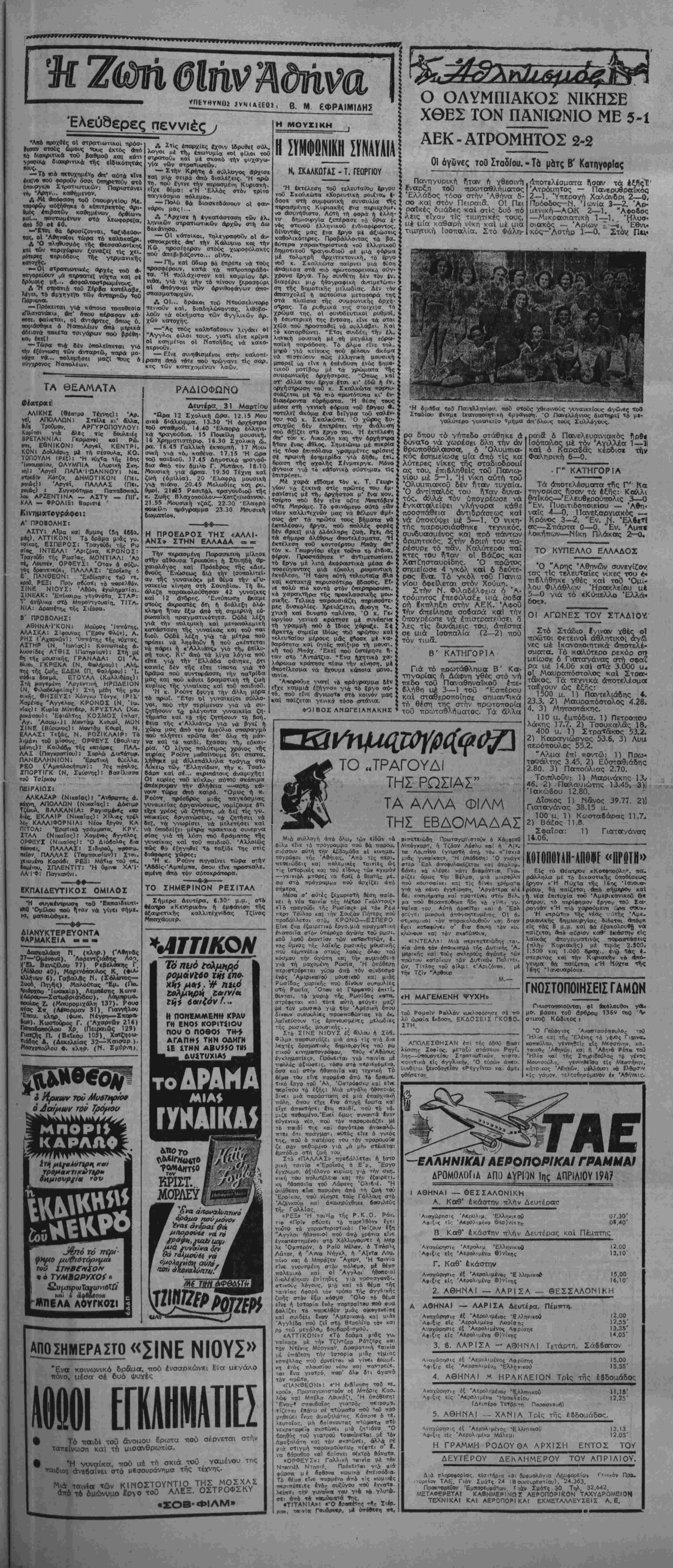 Αρφρ0ΓΡΑφ01ΜΐΛ.Κ.ΚΥΡΚΟΣ | ΤΗΛΕΦΩΝΑ: ΑιαχειρΙαεος 38.022, Τυπογρ. 31.<06-2».»87 | Ά9ήνα, Δευτέρα 31 ΜαρτΙου 1?47 ΕΝΑΣ ΧΡΟΝΟΣ "Ε»α« χρονο* ονμπλινΜινηαι σήμ«οα 4κ6 τΑ> ανΑβου τοθ Λβΐκοο κ*»
