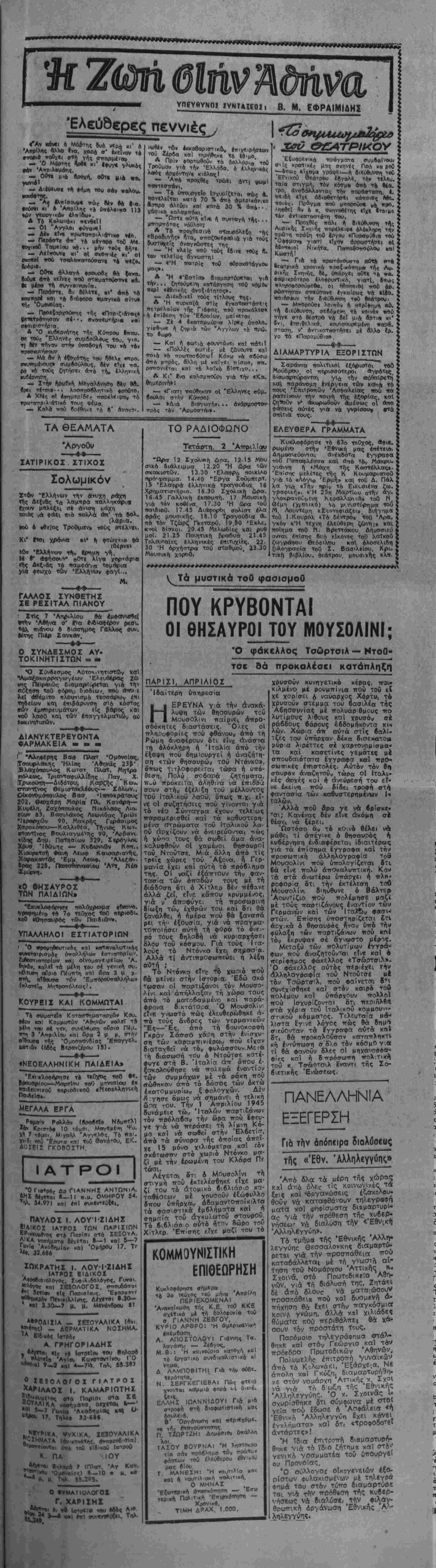 Ά8ήνα, Τετάρτη 2 Απριλίου 1Ο47