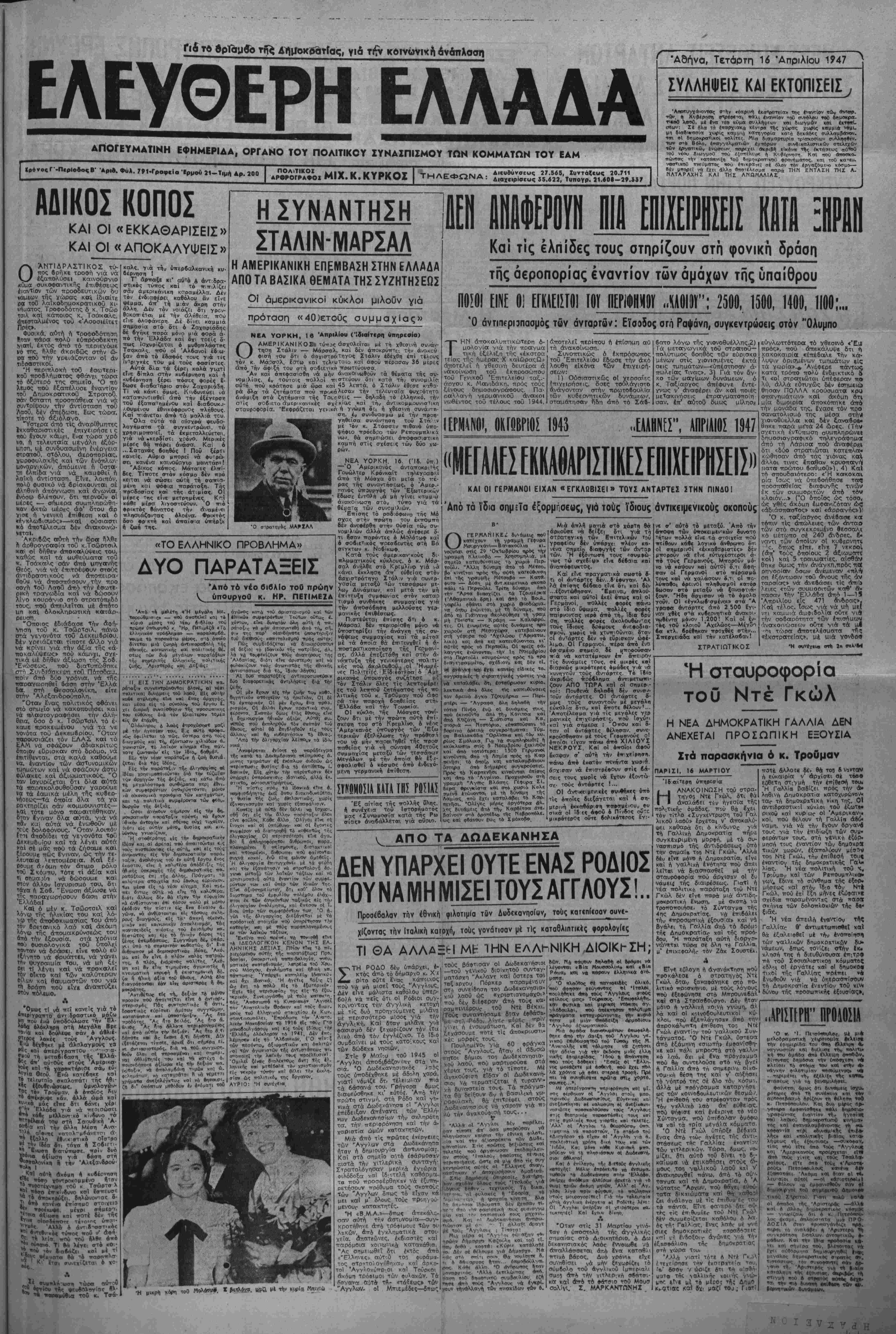 'Αδήνα, Τετάρτη 16 Απριλίου 1947