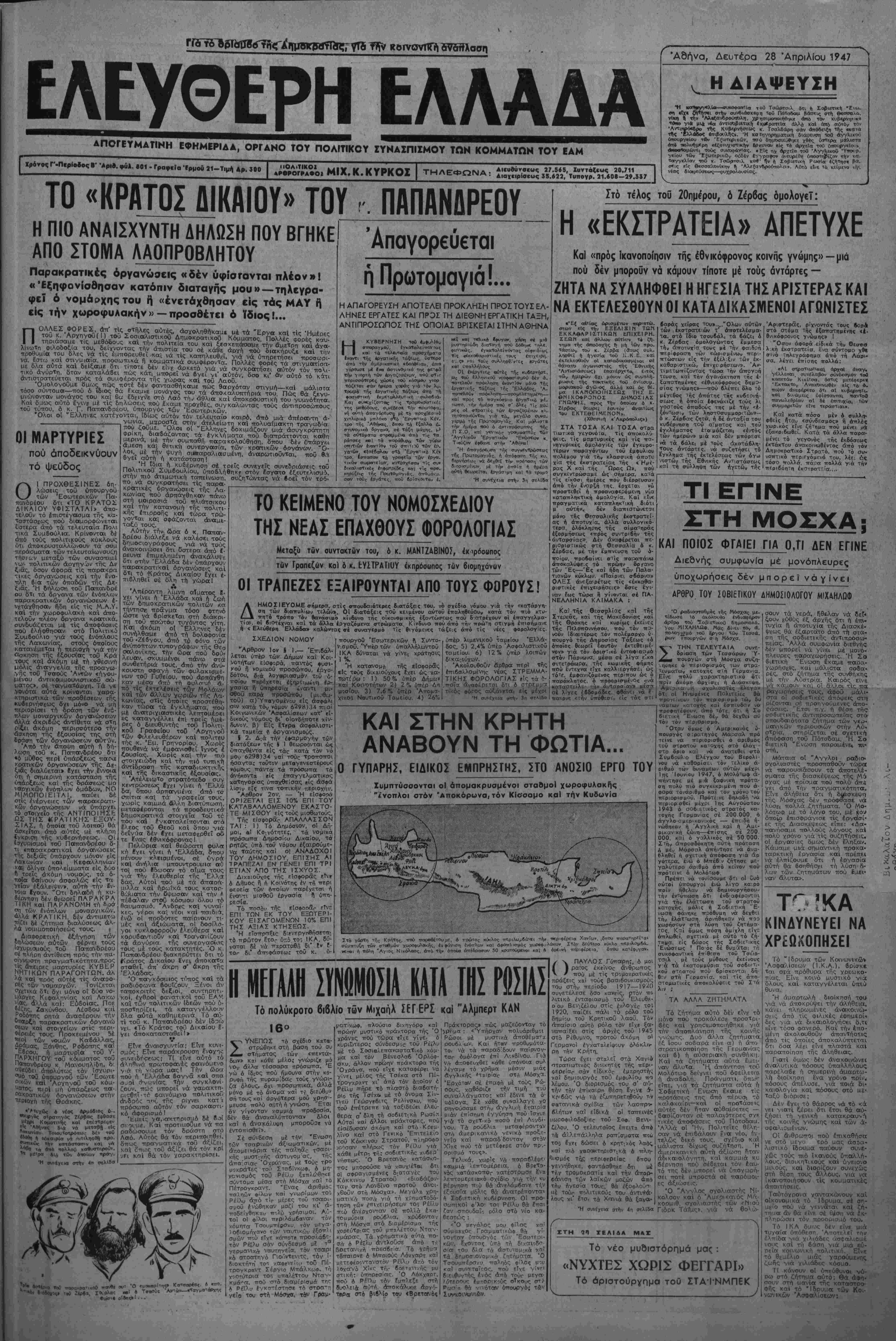 Άδήνα, Δευτέρα 28 "Απριλίου 1947