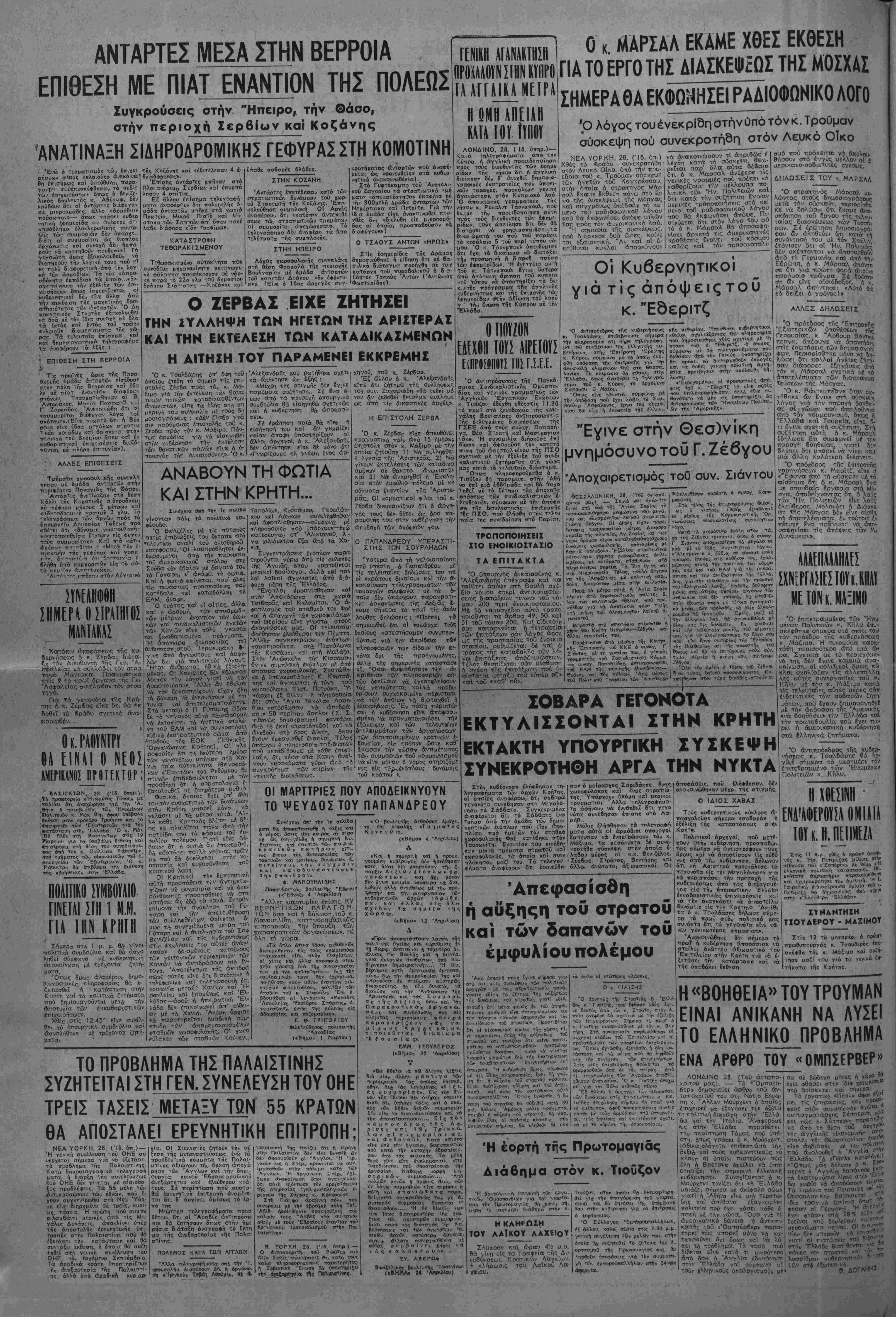 Τό έργατΐκό «Πήπλ» <*ΦΟ1 έν»1 ρει τίς ϋττηρεσίες, πΟύ,ηΡ°°1 Φερε στόν συμμαχικόν σνω ηι^ συνταγματάρχης Σέτπτερντ. *Ρ» Φεΐ ττώς <Λ- Σέππερντ παρσιτπθ'' κε άπό τή θέση τού ά^ τήΓ άγγλι/.ής οίκθνομικήΓ στολη: της Θεσσαλονί/ηΓ εΤχε άηδιάσει ιιέ Ην,ττ πού ά/.ολουθεί ή Αγγλία Έλλάδχ. Τό «Πήττλ» κατα «*0π«ς μάς δηλωσϊ ό κ. περνπ ή Αγγλία δαπάνηθί τό έκατομμύρια λίρες στην ε δα χωΡ'ς νά άττοδώσοι/ν τιηθ™· Τα )ιμάνια τοΰ Πειραιώς κοι ^ &'εσσαλονΐκηΓ 0ρίσκθντο» & ■δια τραγΐ/σ ίρηττια 6^ ? Φησαν οί Γερμαν,ί Ή «τνΓΡν·« Ιχει φτάθΜ στά 28% άλΜ '"! ίκεΐνοΐ ΓΓθύ δουλειΊθυν *<*'&*! μεοοκάματα πείνσς. Ο' 6 νίερ δέν μπορούν νο γιατί οί τπστώσει: ττοΰ στήν Ελλάδι διατθρντσ. ά στοοττού ο ττάνες τοη στοοττού νο> τ"ν