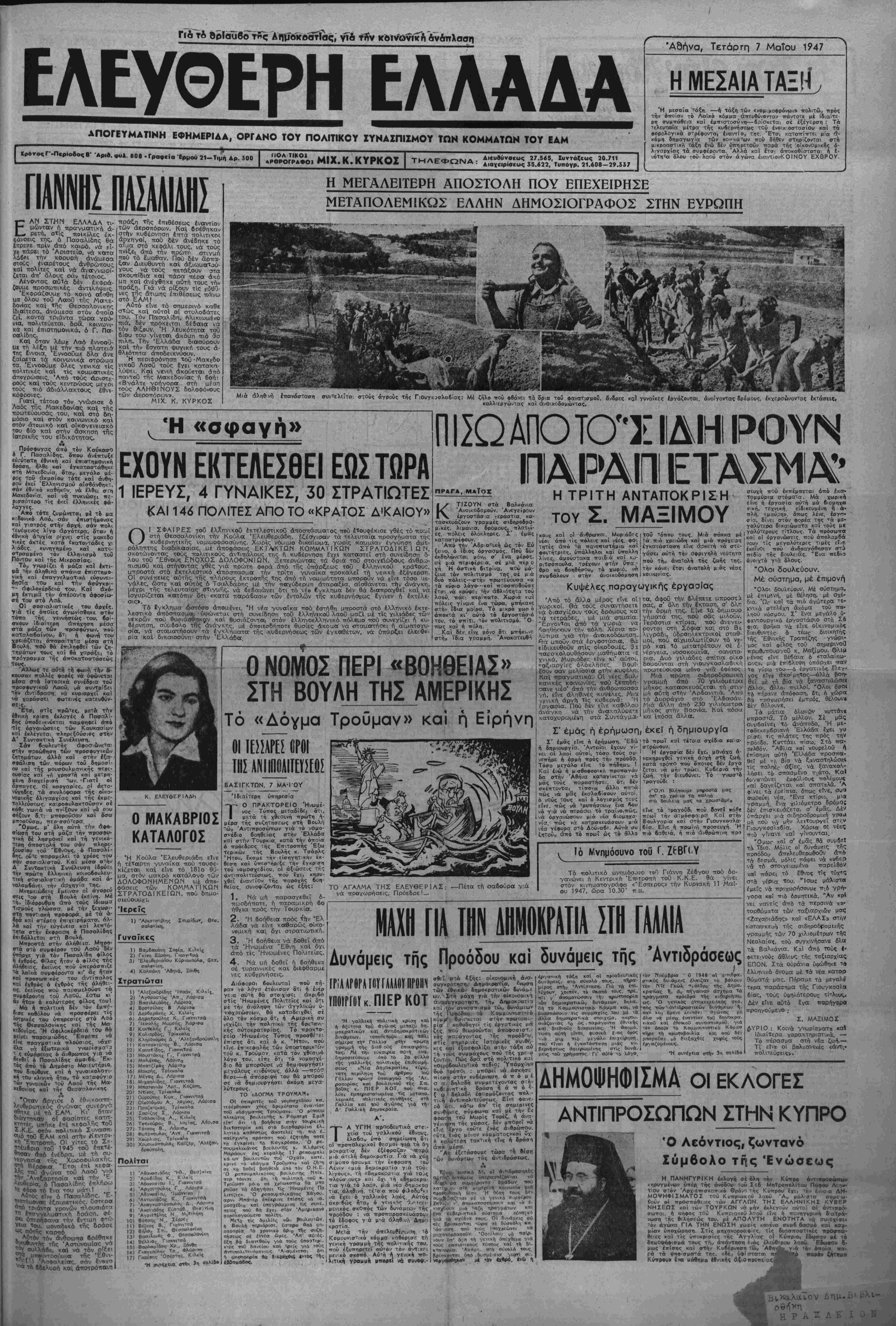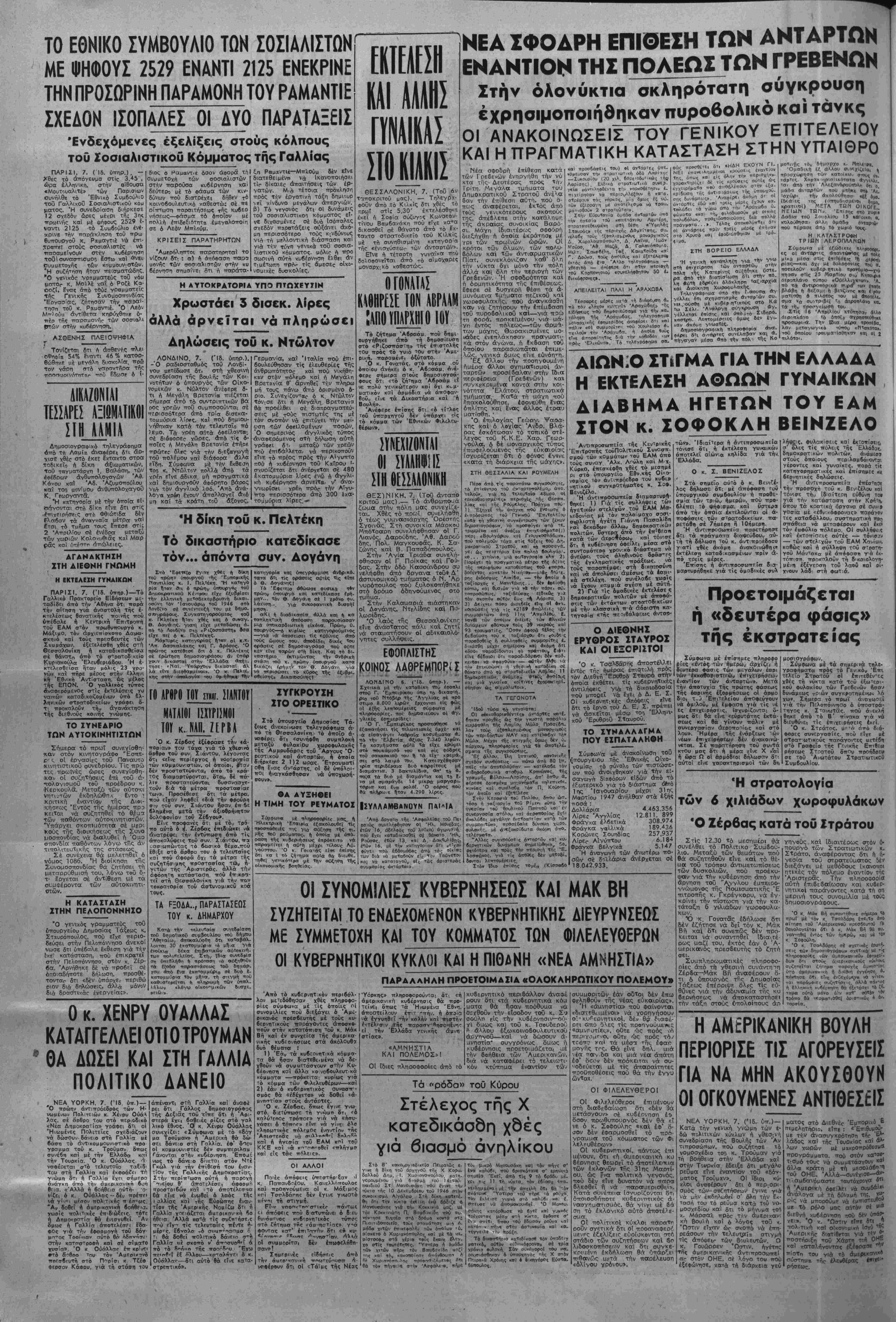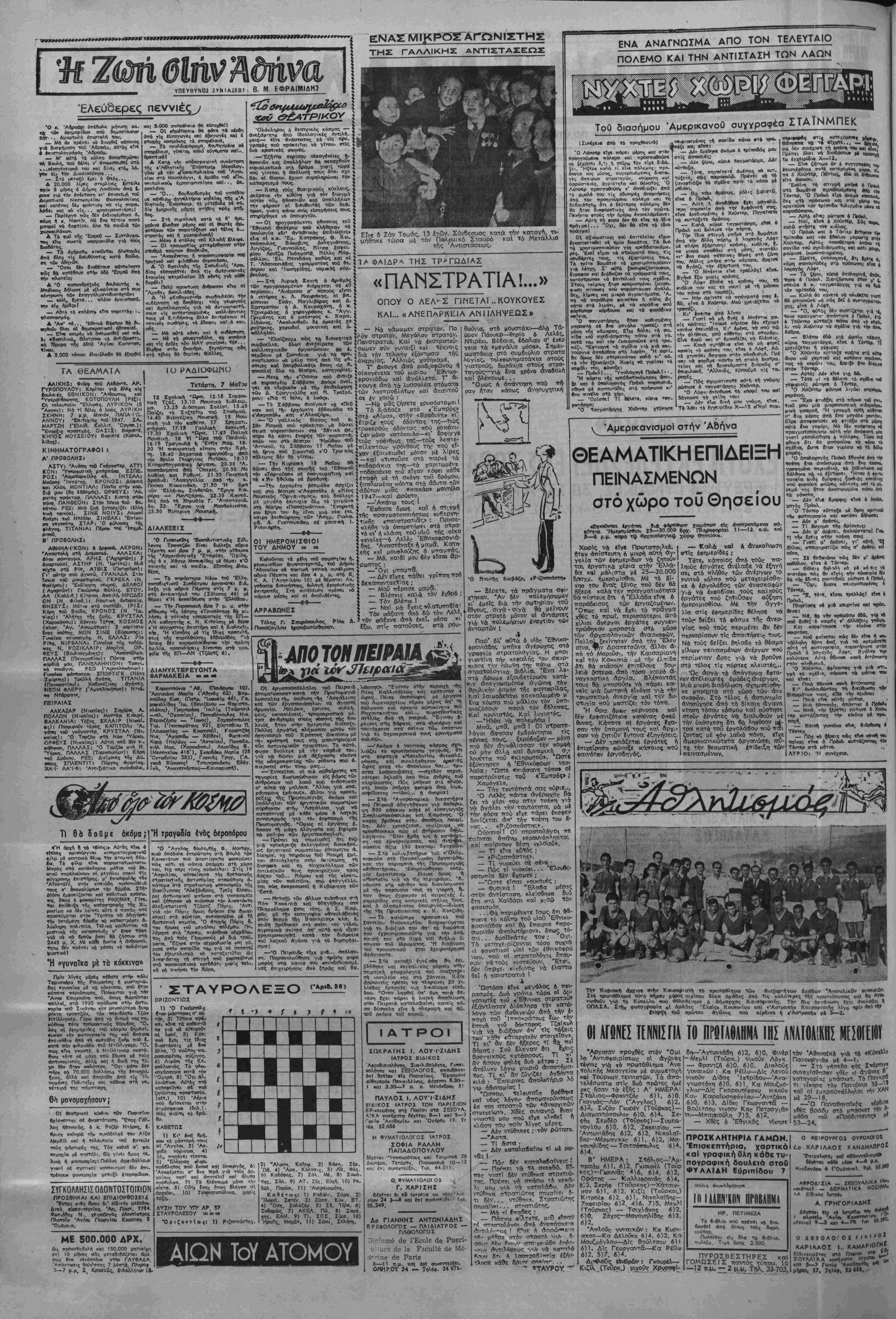 •Αδήνα, ΤετάρΓη 7 Μαΐου 1947