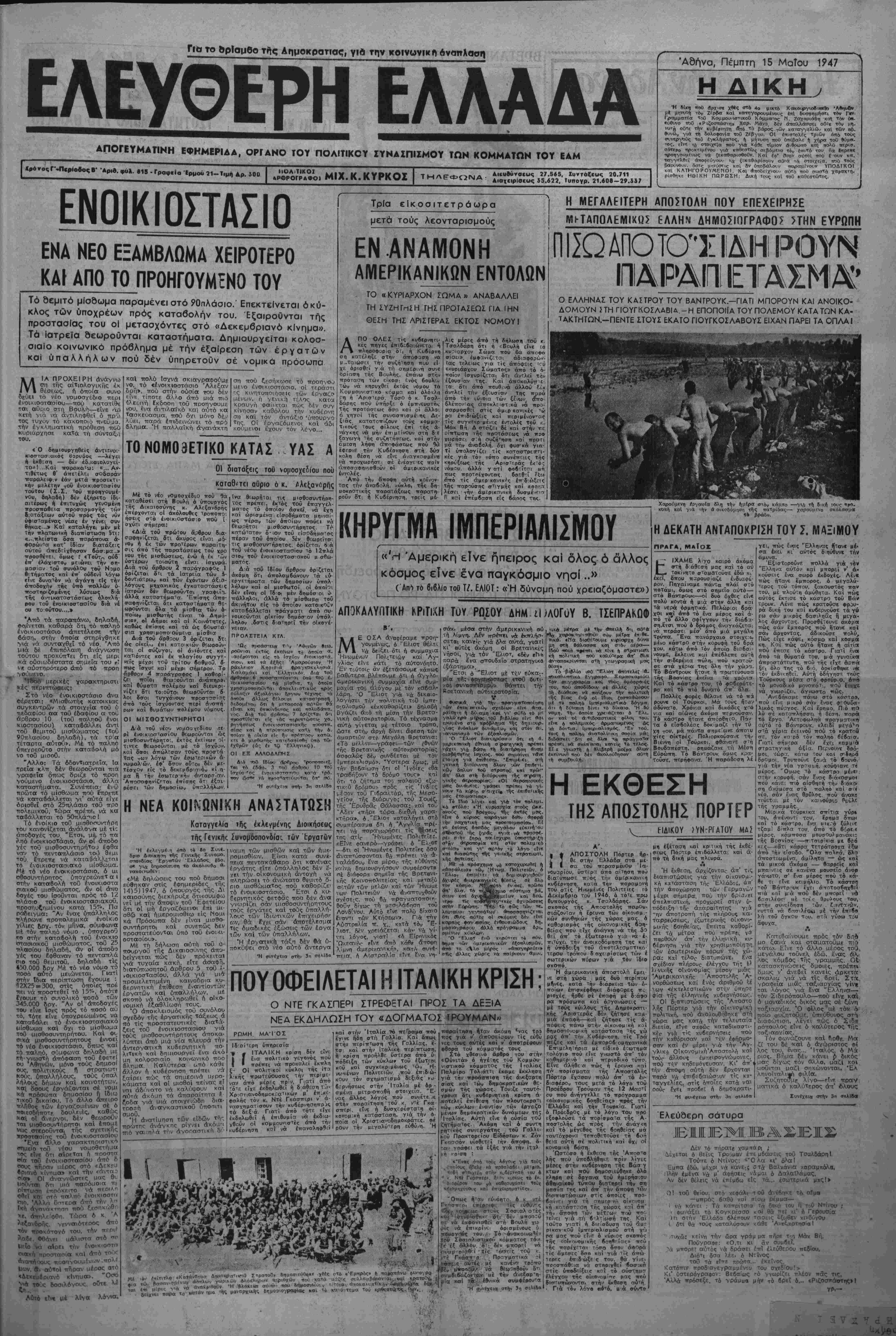 Άδήνα, Πέμπτη 15 ΜαΤου 1947