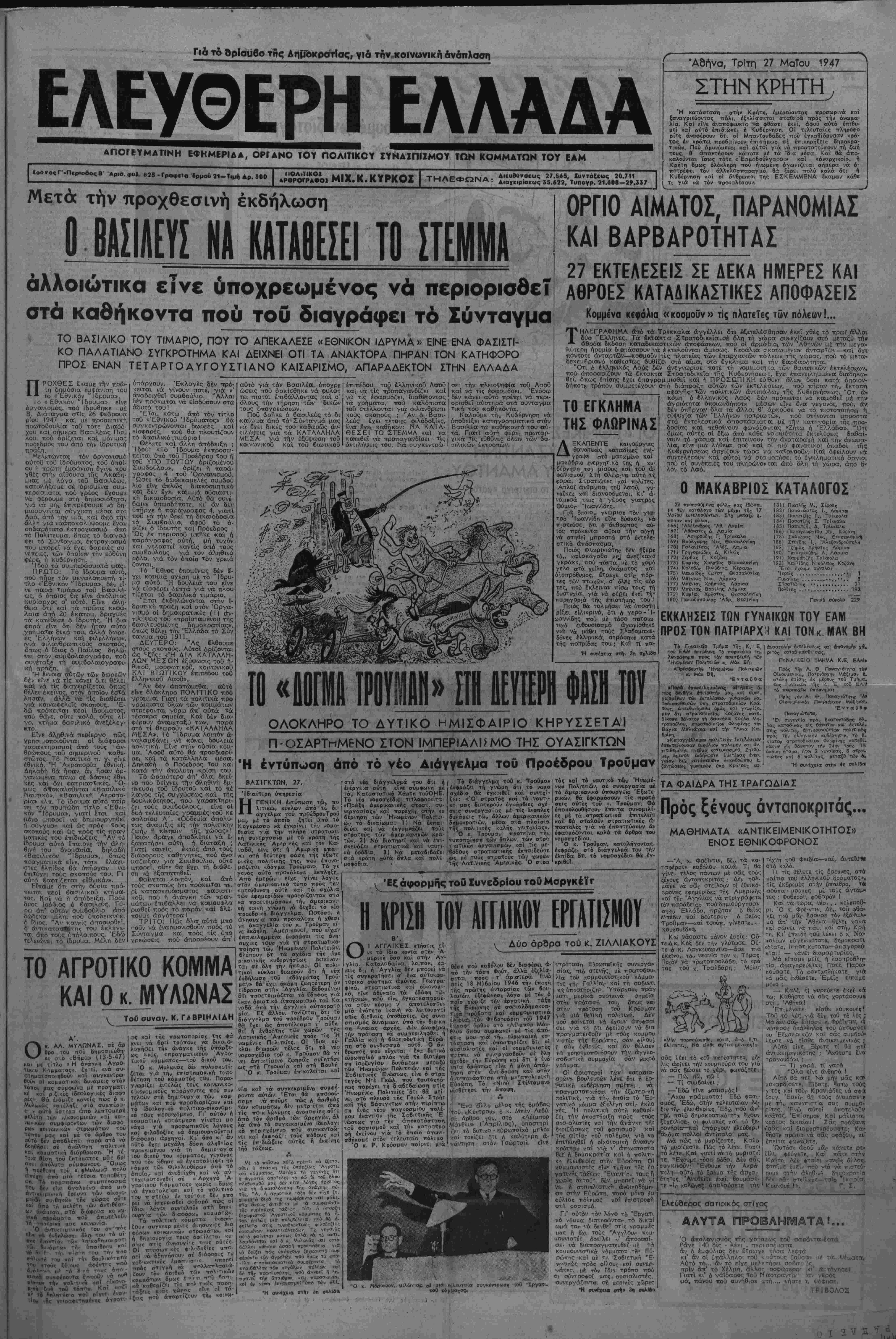 •Αδήνα, ΤρΙτη 27 ΜαΤου 1947