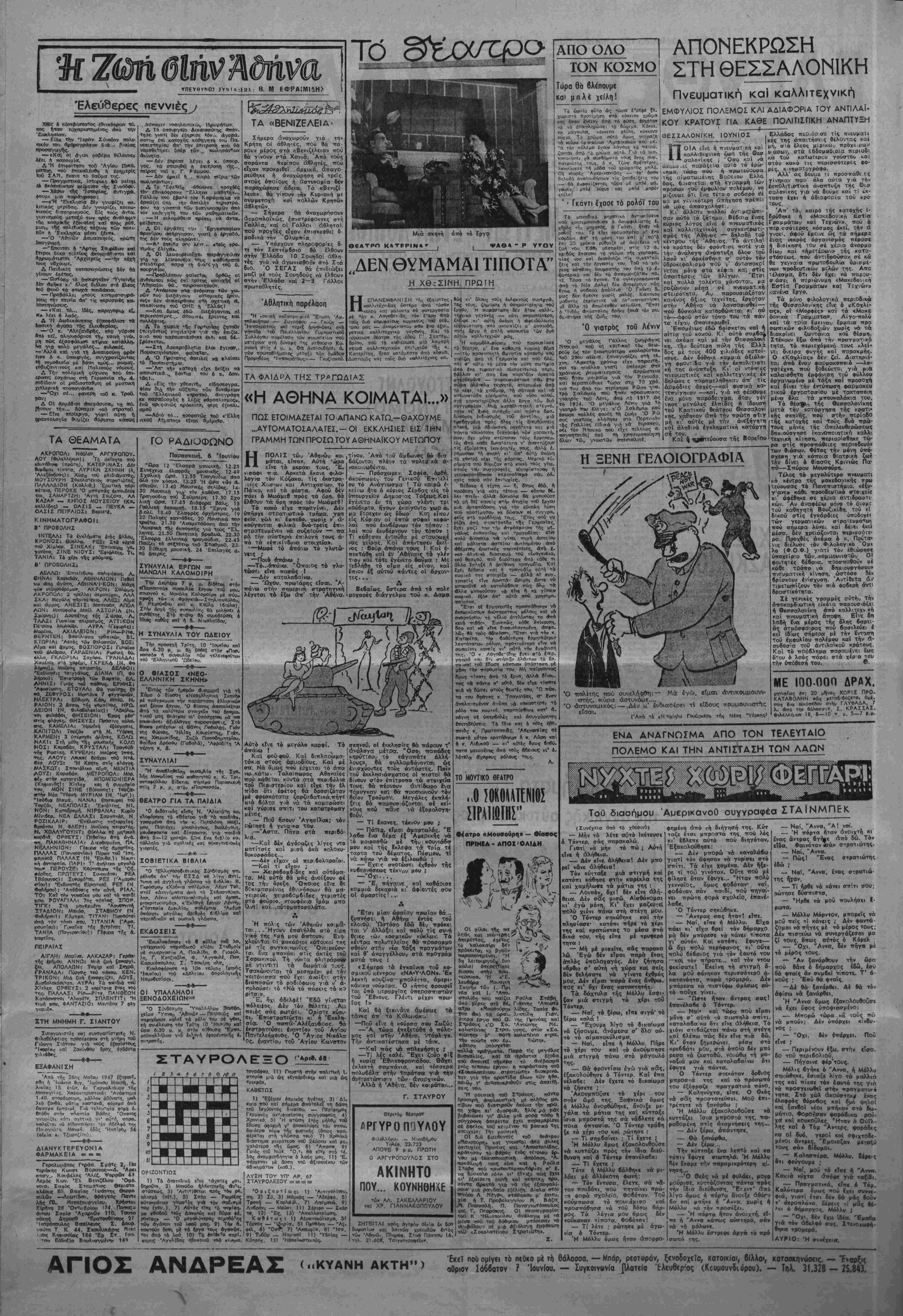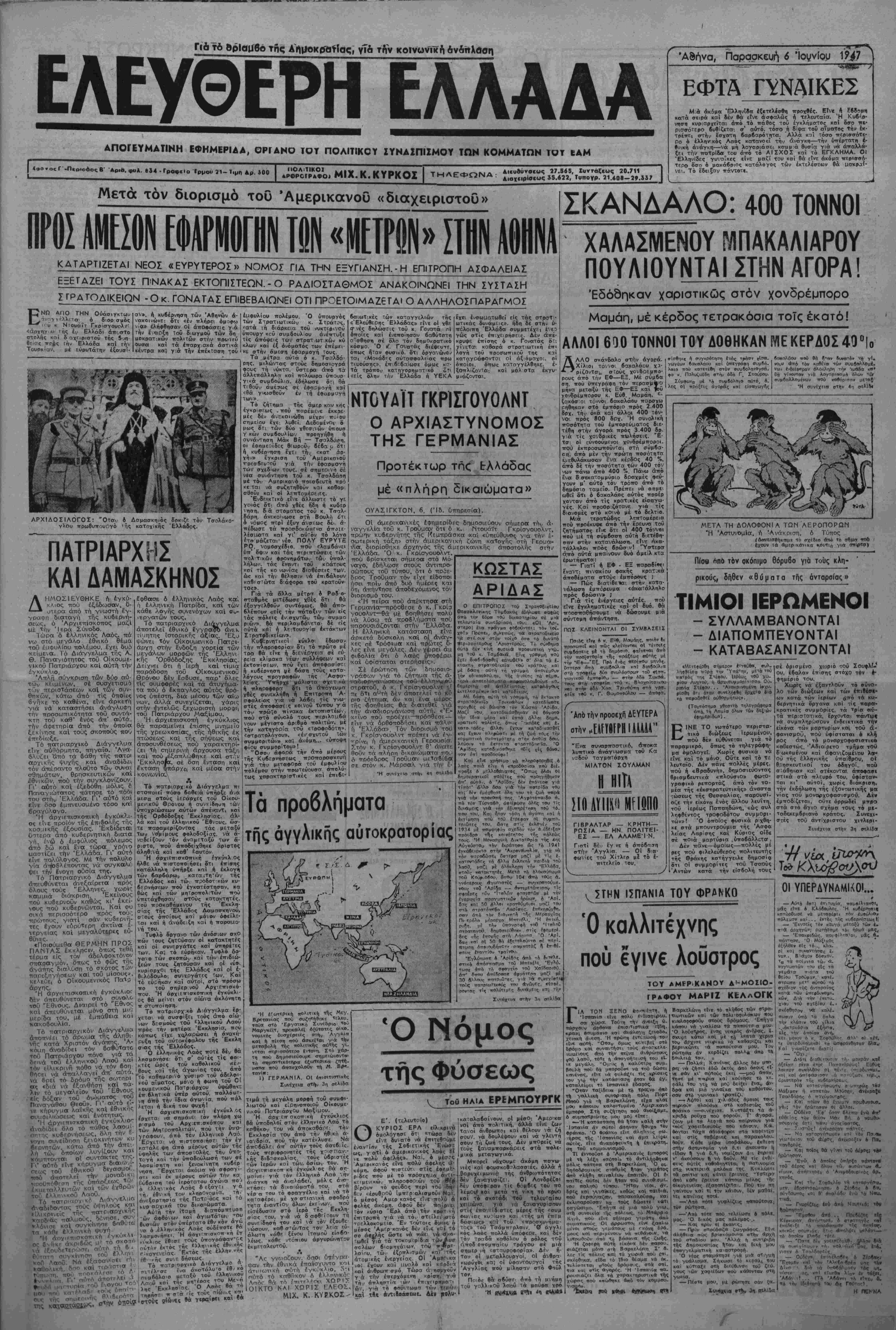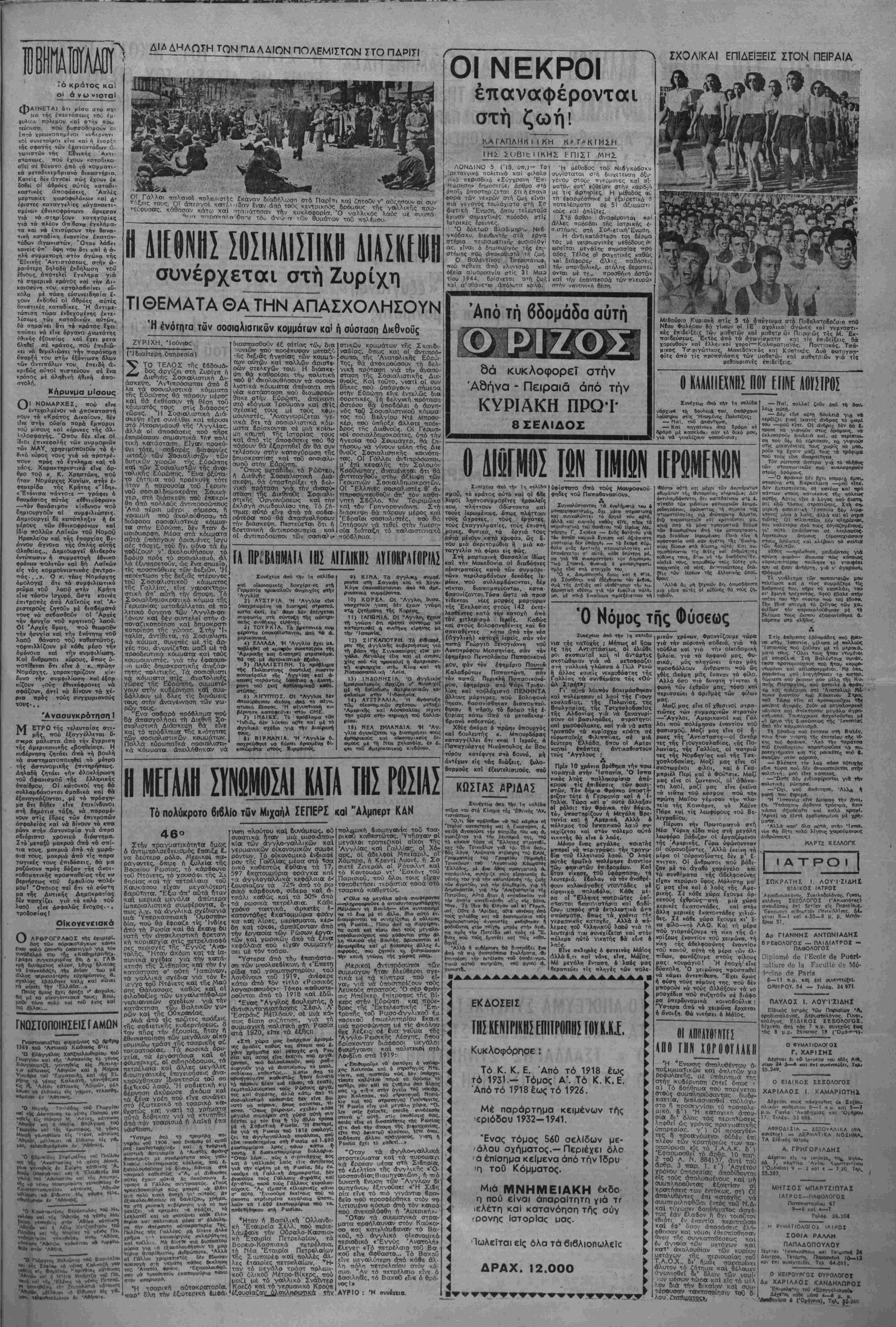 Σκνέχεισ *πό την 1η <τί1δ« ττθτττεία τής άποστολής. Ό άο γηγός τής άμερικανικης άτΐο- στολής στήν 'Ελλάδσ υπήρξε 6 παδός τοΰ ρεπομπλικάνου Ούΐλ κις. Τόν διορισμό τοθ κ. Γκρπ γουολντ ανήγγειλε ό πρόεδρος Τροόμαν κατά τή γθεσινή σο- ναντησή τού μέ τούς δημοσιο γράφους. Σέ ερωτήση δημοσιογράφου *ν τό πρόγραμμα δοηθείαςστήν 'Ελλάδα καί Τουρκία θά έτι- φέρει υψώση των τιυ.ών στήν Ά μερική, ό κ. Τροϋμαν είπε δα ΐάμερικοτνική κυδέρνηση έκηρ'. νΏη υπέρ τής βοηθείας «γιά νά δοηθήσει έκατομμύρια άνθοώ- πους πού λικοκτονοΰν τώοο: γιά ν' άνα·κτήσουν τήν εύηιμε· ρία τους κα'ι νά διατηρήοουν την ελευθερία τους»! ξής Η ΑΓΟΡΑ ΝΕΩΝ ΠΛΟΙΩΝ ΑΠΟ ΤΙΣ ΗΝΩΜΕΝΕΣ ΠΟΛΙΤΕΙΕΣ ΜΙ κθινή άττόφαση των ύπουργύν Οί. Ο κ. Βενιζέλος. μιλωντας αήμΐρσ κθνομικών, 'Υνιεινής καί ΈφοδιασμβΟ, ~ϊ-τι.κο: μί Την αΐτηση τών ίφοιτλΐ- ρυ9μίζεται ή διβχε.ρηση των ίατρΐκώ" στων ποθ ζητοθν την αγοΛα καί αλ- ί,οδιω, σέ 6λο τό κράτος Με την νέα λων ττλοιων *,6 τις ΉνωμενΕς Παλι. έπόψαση καταργθθντα, οί περι»ερε,α«ς τειρς κσι μί τοθς ορο'^ς μί τους ο- ■ · - τ ποίους αγοράσ&ηιχαν τα 100 (,ΛιμΗερ. τυ», εδήλωσε 8Τ! άνοτμενΐΐ ίπισημη δΐϋ- ^εραίωση 4ΐτό την ο:μρρικο:ι«ή κυ. Ρέρνηση Λν οΐύτή δέχεται την πωλήση των πλοίων ο«ύΓών, γιά νσ φερει τό ζήτημα σΐό υπουργικώ συμβθι>λιο πρός