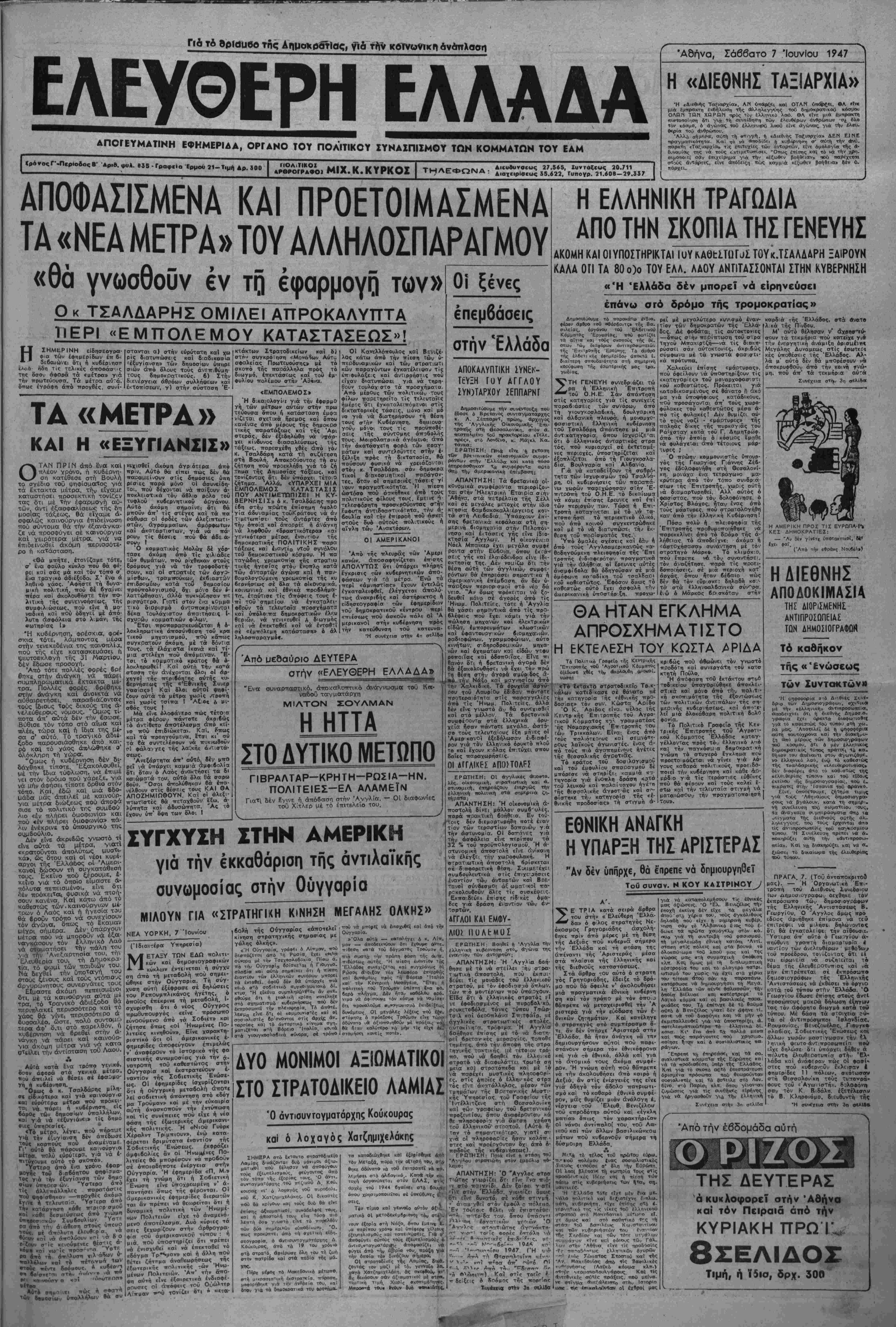 'Αθήνα, Σάββατο 7 ΊουνΙου 1947