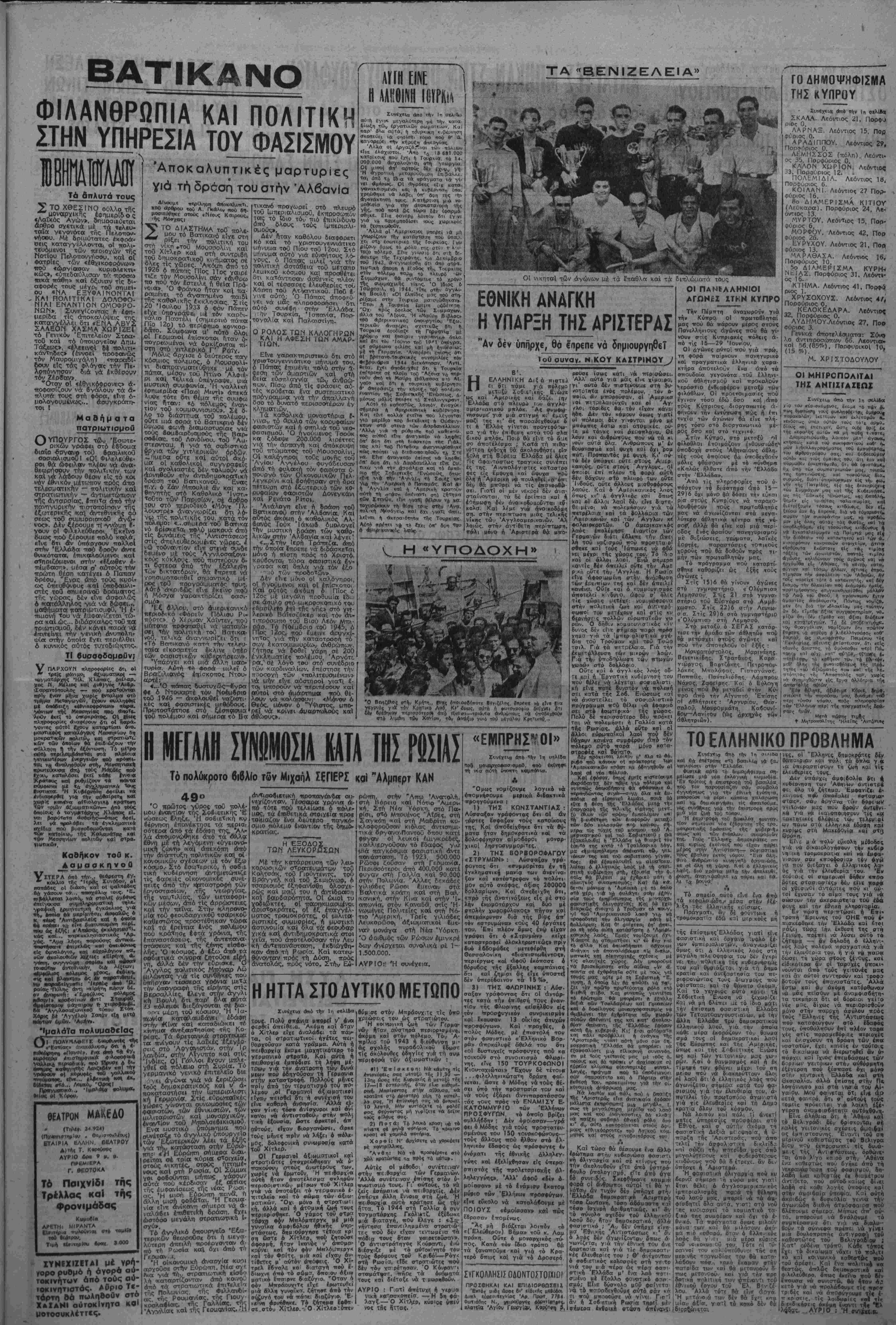 ΦΓτσιποτν τίκαψηφεΐ καΐ —4οτιι λ λ ώ ί~λ λάν ΐ ».ώς σττιν Ιντονη βΛ (θία γιοτΐ παρεμποδίσθηκε νά άναχωρήσει ό Γενικός Σϋμβου λος τής ΠΣΟ Δ. Παπαρήγας. Γ'Ας σημειοΛεϊ δτι άντιττροοω- πΕΓθνται δλ«ς οί χώρες έκτός ■τπό την Έλλάδα). 'Επίοης ήπε ψάσισαν καΐ άνέθεοαν σέ 5μί- λή έ.ττιτροτΐη άττό τούς Σ,αγιάν. ΓιοΟίΓον, Ζουώ, Ταράοωφ κσϊ τόν Άμερικανό Ρός νά συντα· ^ει σχέδιο γιά άπόφαση σχετι¬ κά μέ τό έλληνικό ζήτημα ιτοΟ θά υποδληθεΐ ττρός Μγκριση στό Γενικό Συμβούλιο. Οί άντιπροσωπεΐες ττολλων χωρών είναι άττοφασισμένες νά ζητήσουν πιό ένεργητική υπο¬ στηρίξη άπό μέρους της ΠΣΟ πρός τούς "Ελληνες έργάτες στόν ήρωΐκό άγώνα τους γιά τήν αποκατασταθή των συνδ·- κάλιστικων ελευθεριών στήν Έλλάδα. ΜΓΑ ΑΠΑΡΑΔΕΚΤΗ ΑΠΟΦΑΣΗ Μέ τήν ύπ* αριθ. 9112 άττόφα 3τι ΐοϋ Ποωτοδικείου Αθηνών διο'ρίζετσι νέα διοίκησπ στή Γί νίκη Συνομοσττονδίο: 'Εργα· των. Μέ τή νία σύνθεστι ή ττλϊΐ ί τόν έ?>οών παοαχωρεΐ-