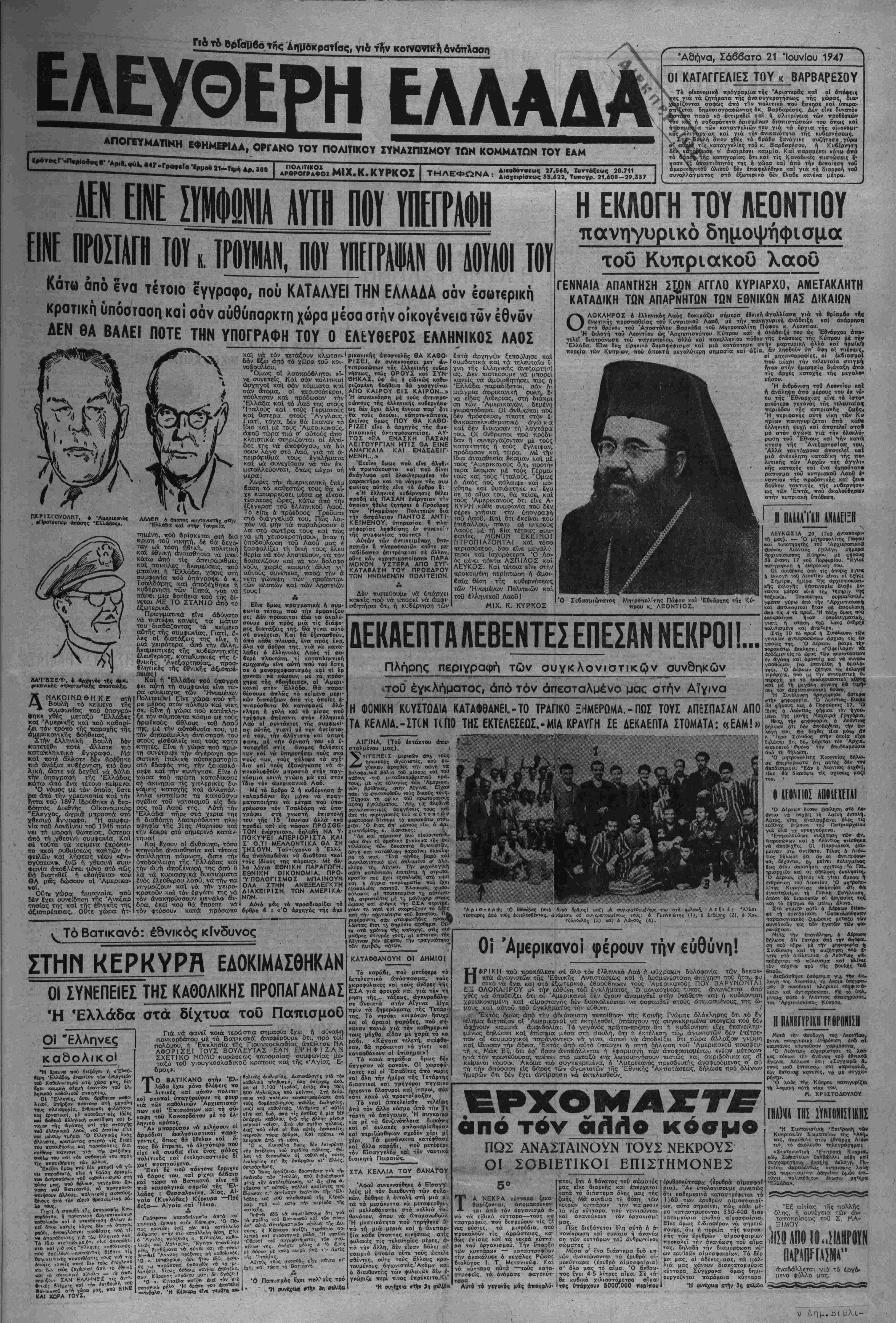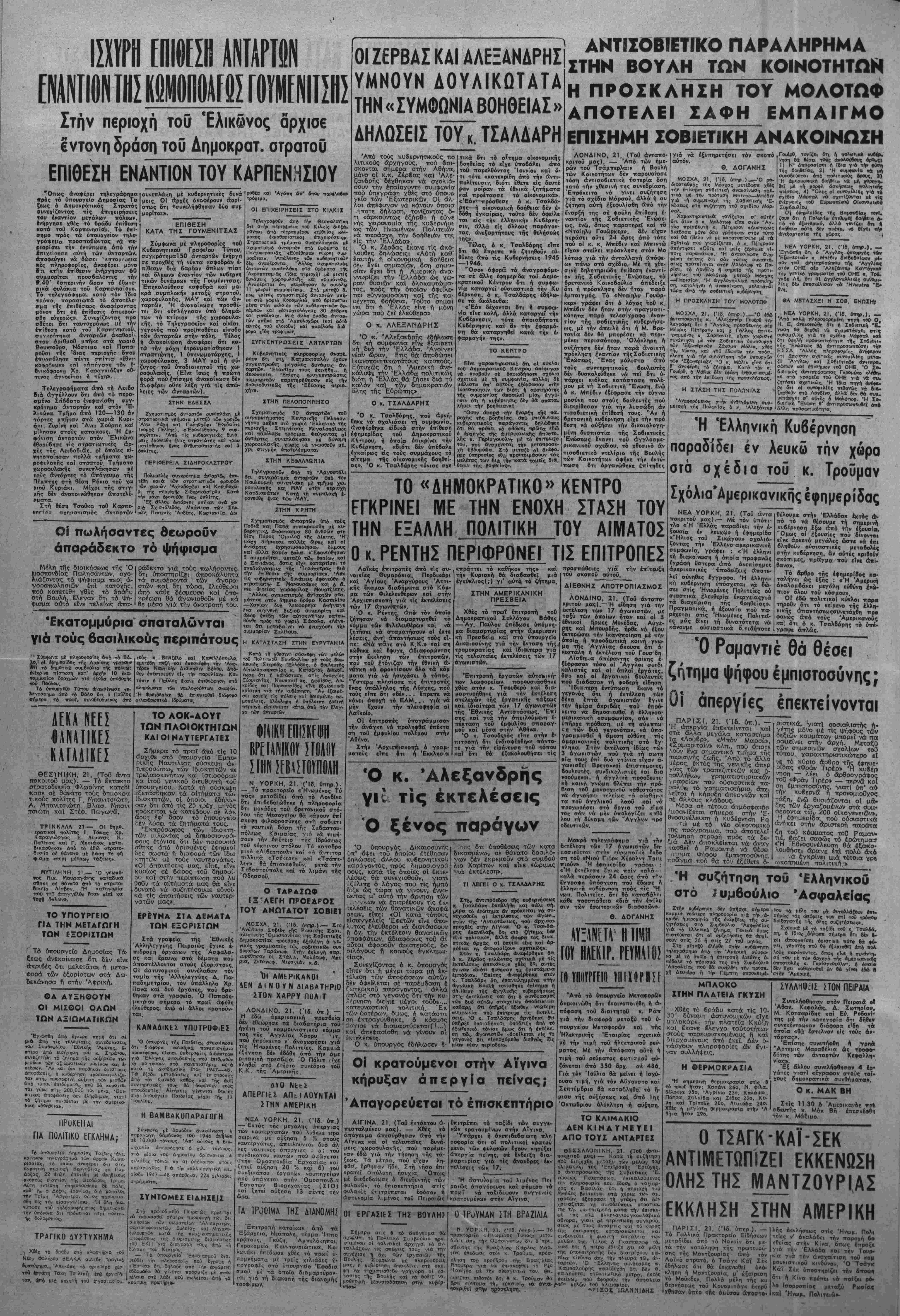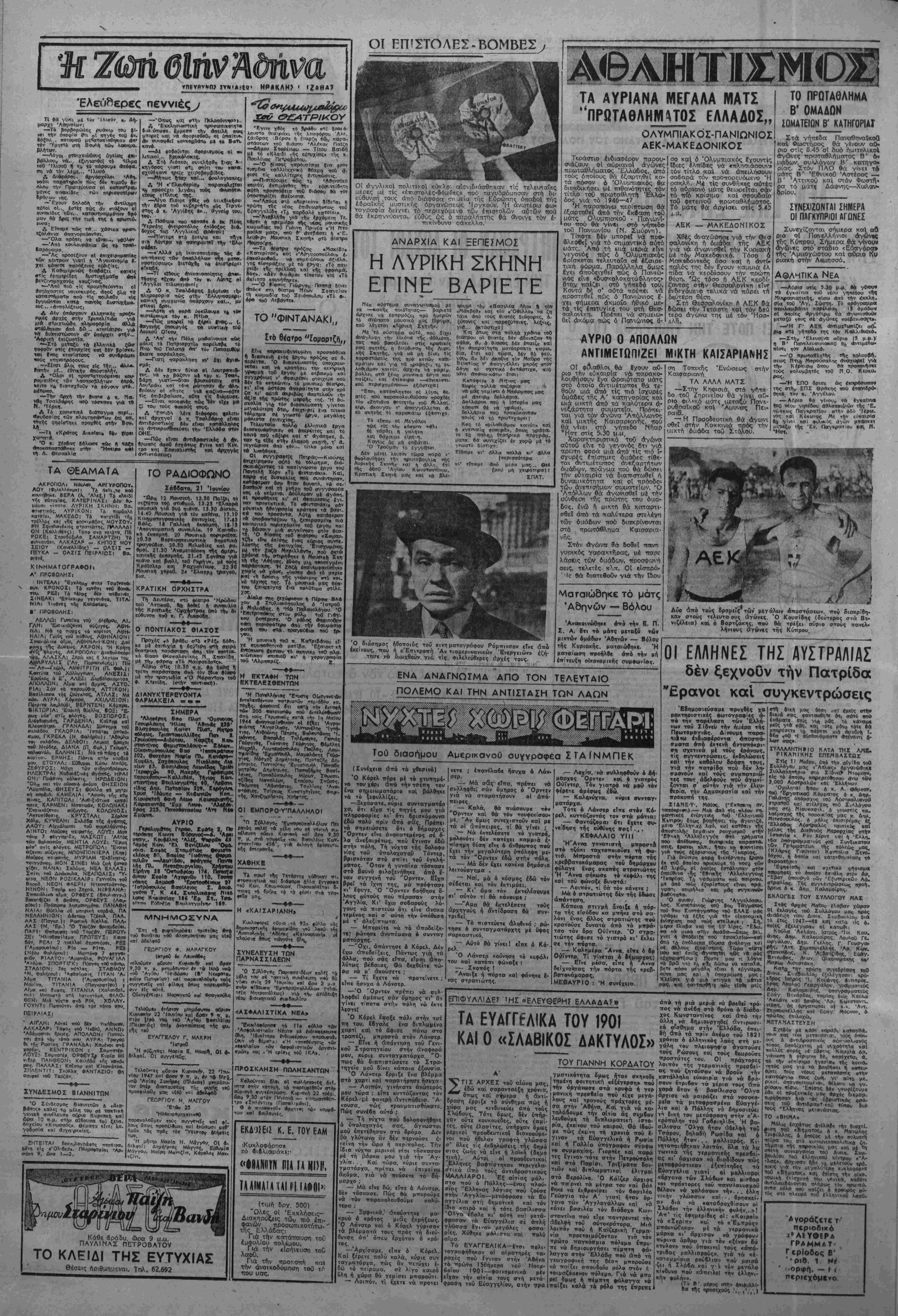•Α8ήνα, Σάββατο 21 Ίουνΐου 1947