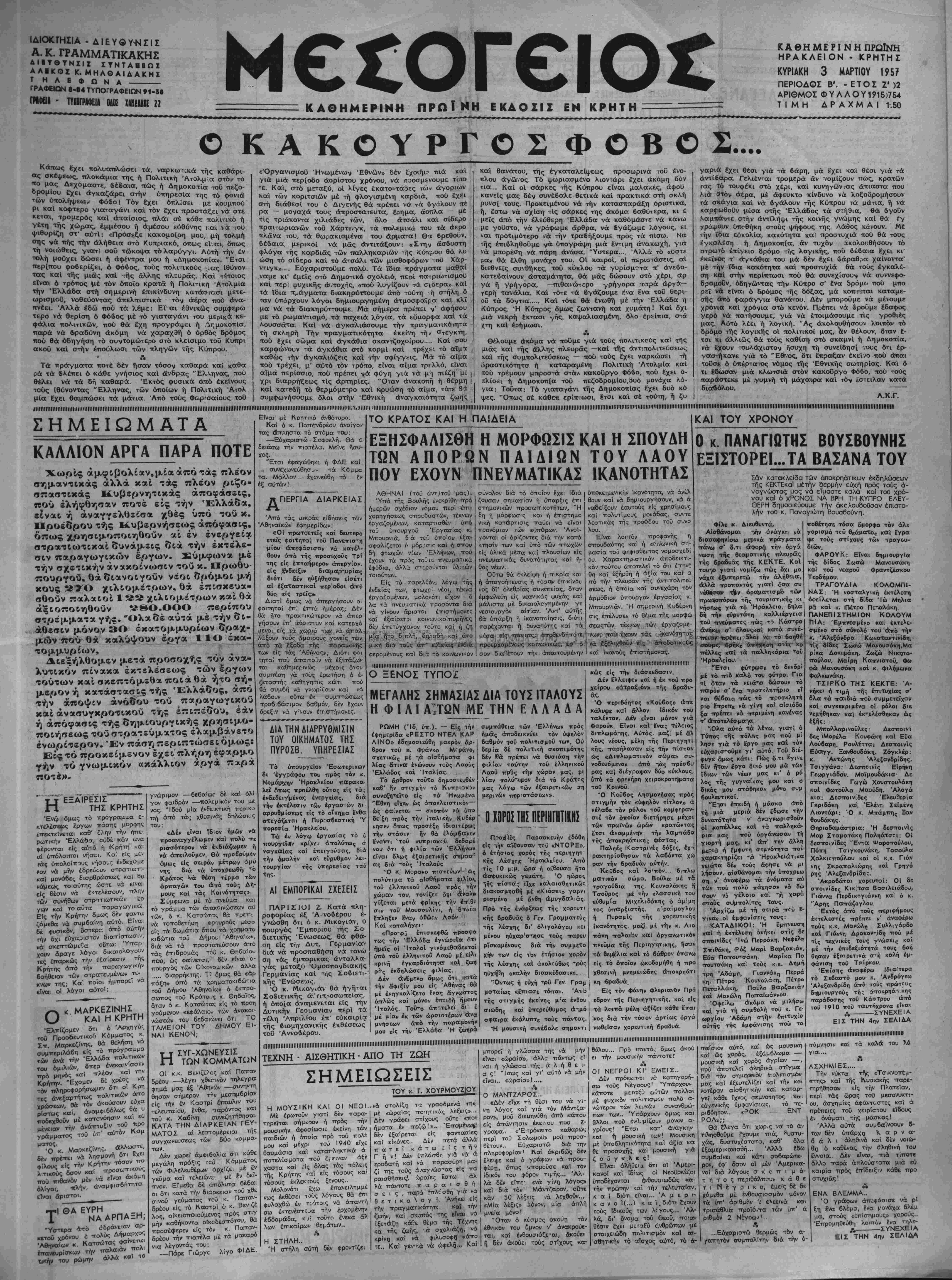 ΚΥΡΙΑΚΗ 3 ΜΑΡΤΙΟΥ 1957