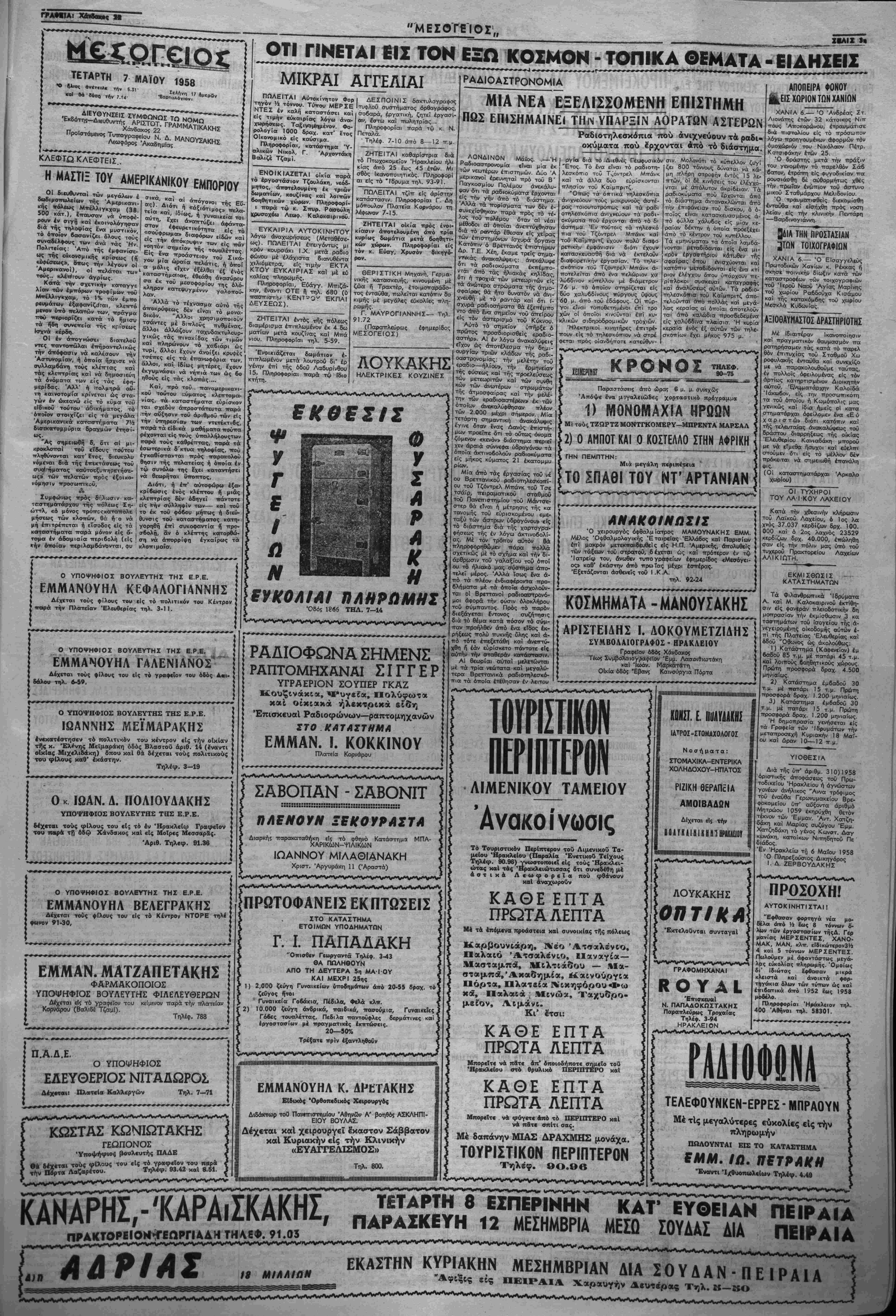 ΤΕΤΑΡΤΗ 7 Μ Α ΤΟΥ 1958