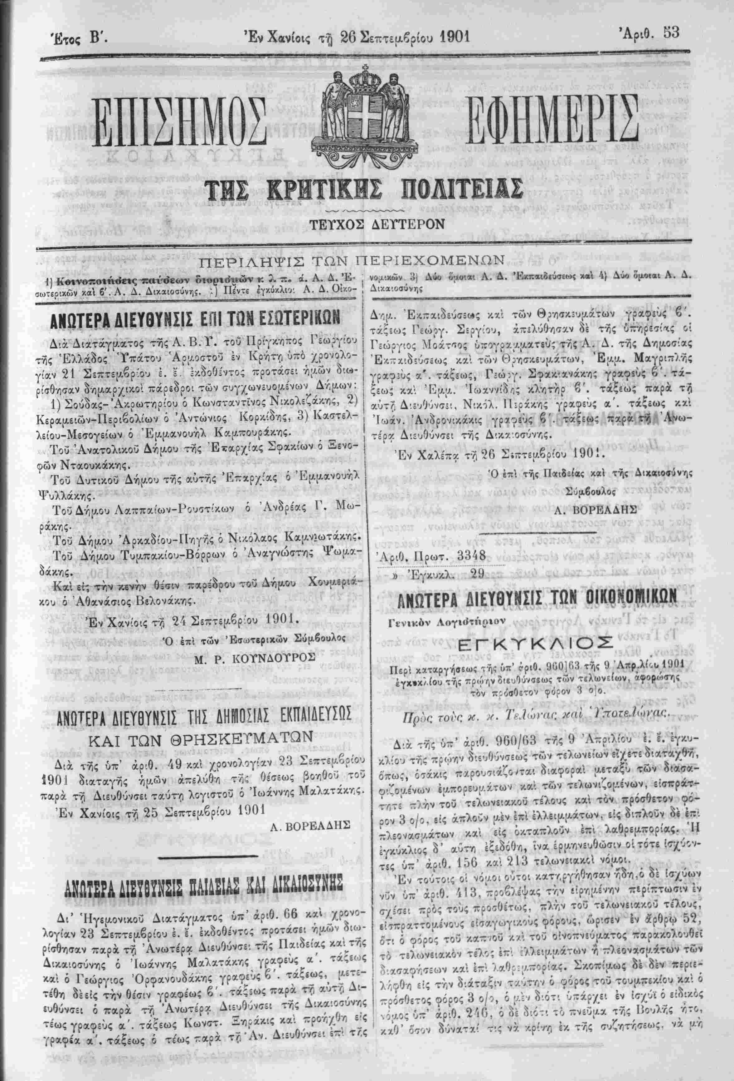 Έν Χανίοις τ{ 24 Σεπεμβρίου 1901.