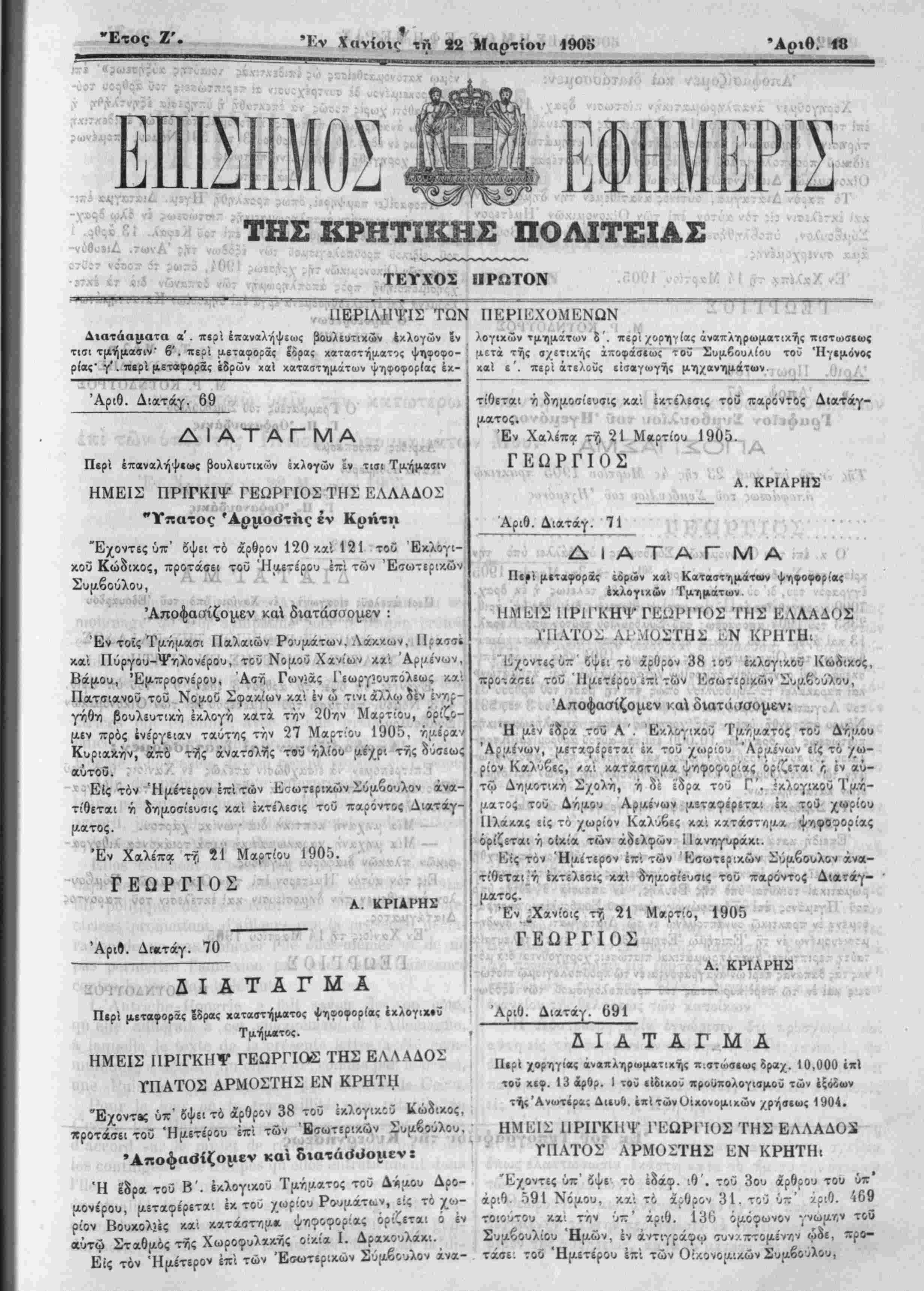 Άριθ. Διατάγ. 69