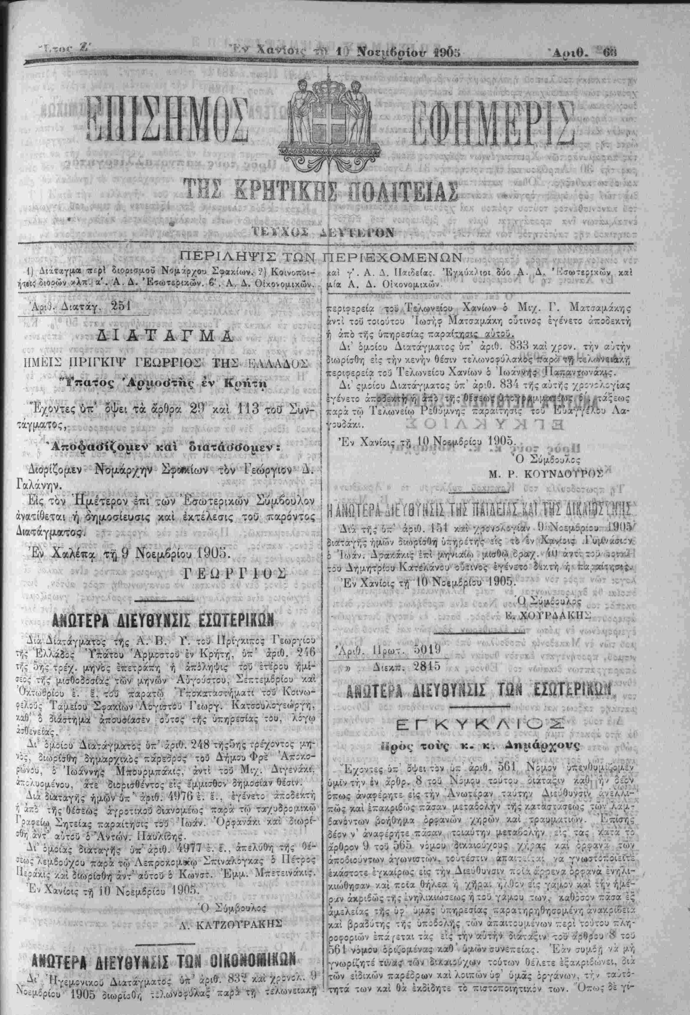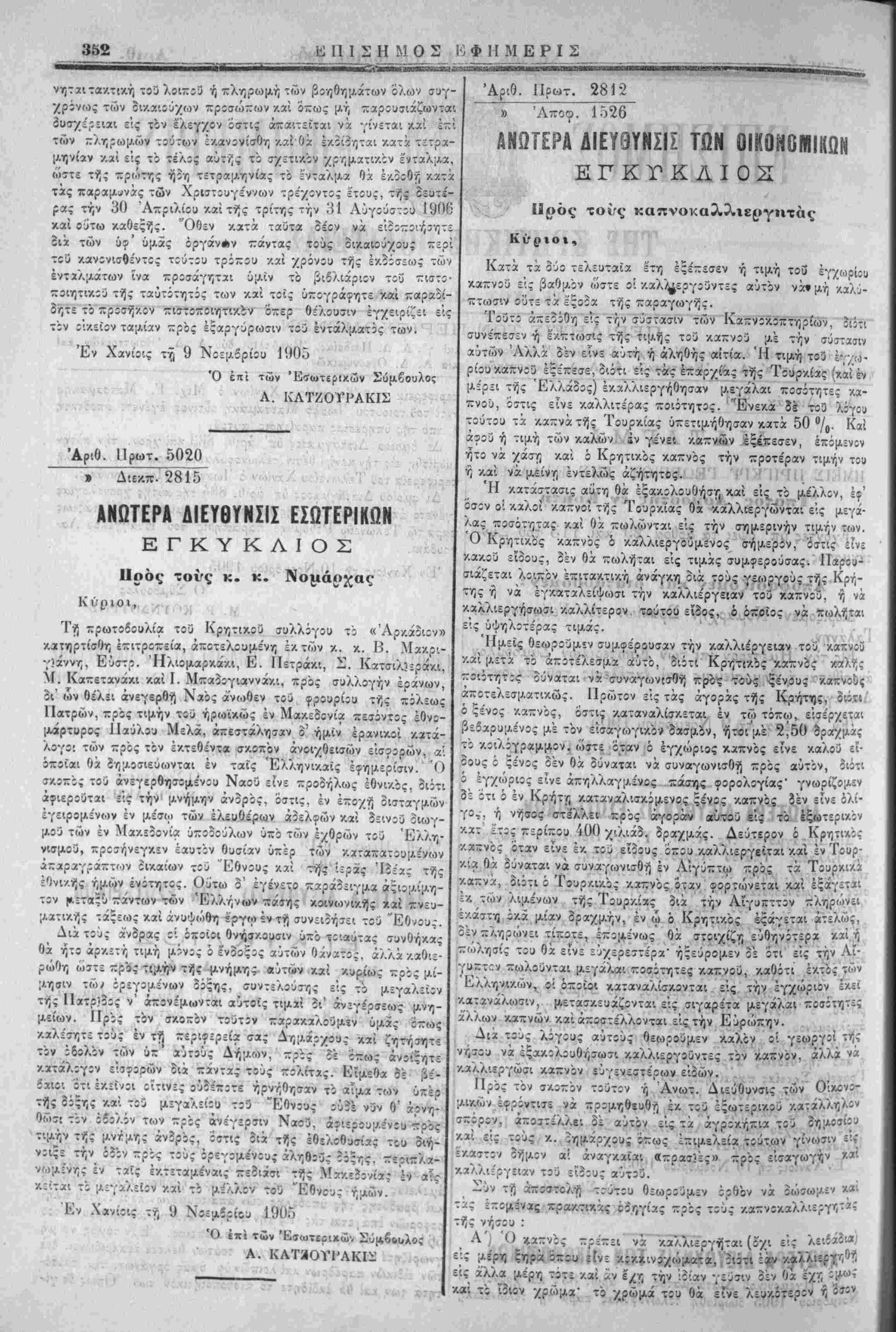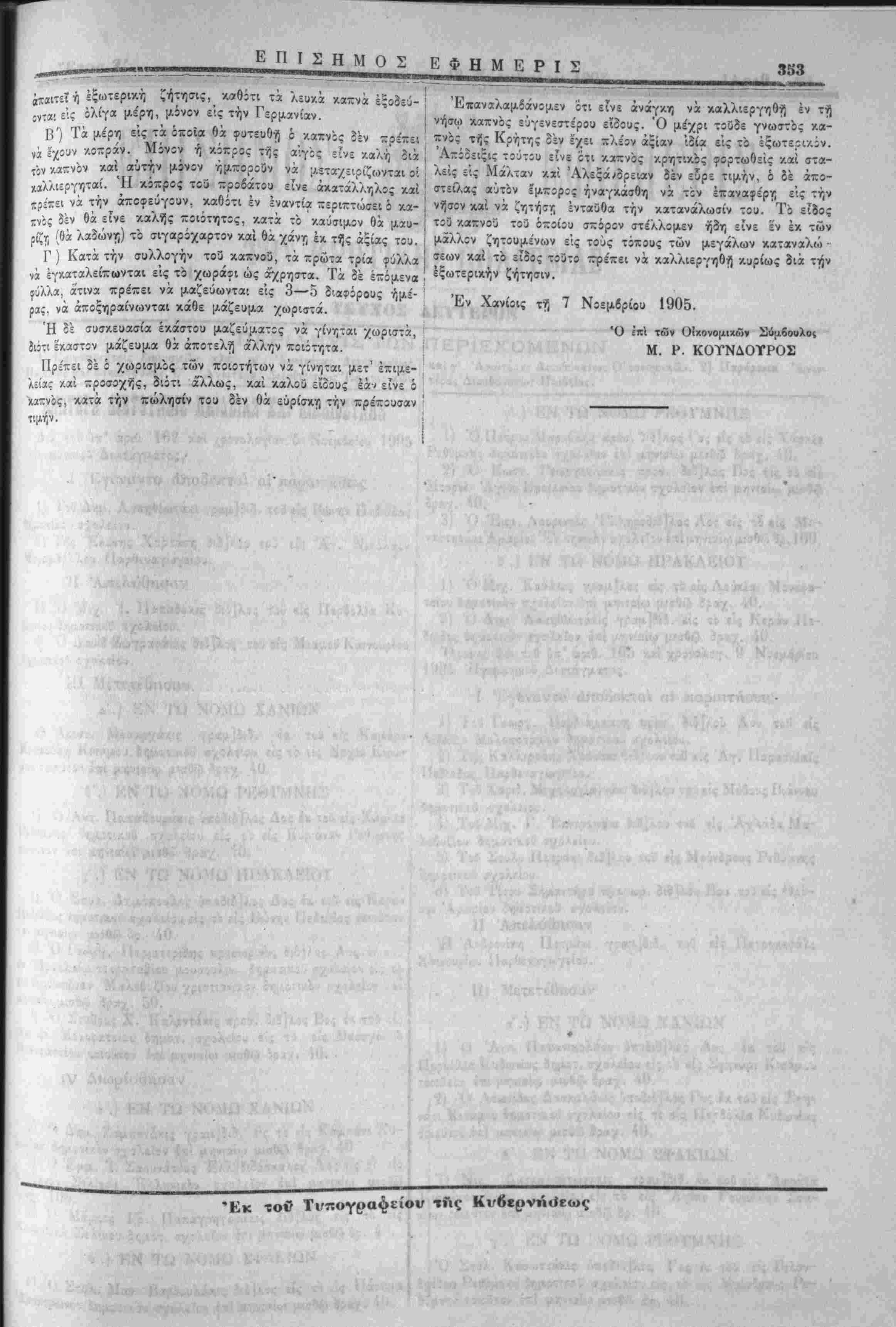 Έν Χανίοις τή 9 Νοεμβριού 1905 ,χ,