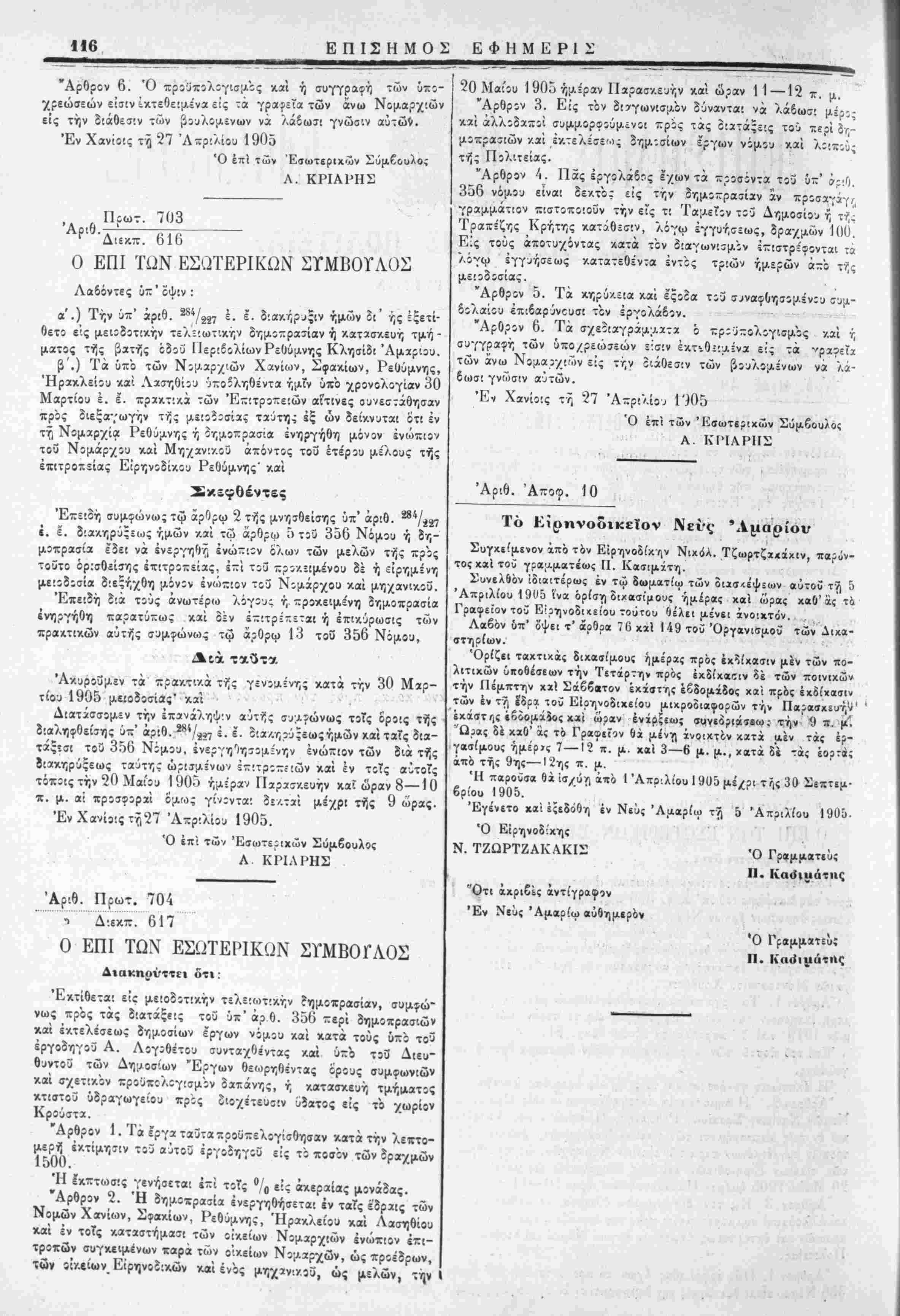 Έν Χανίοις τή 25 Απριλίου 1905.