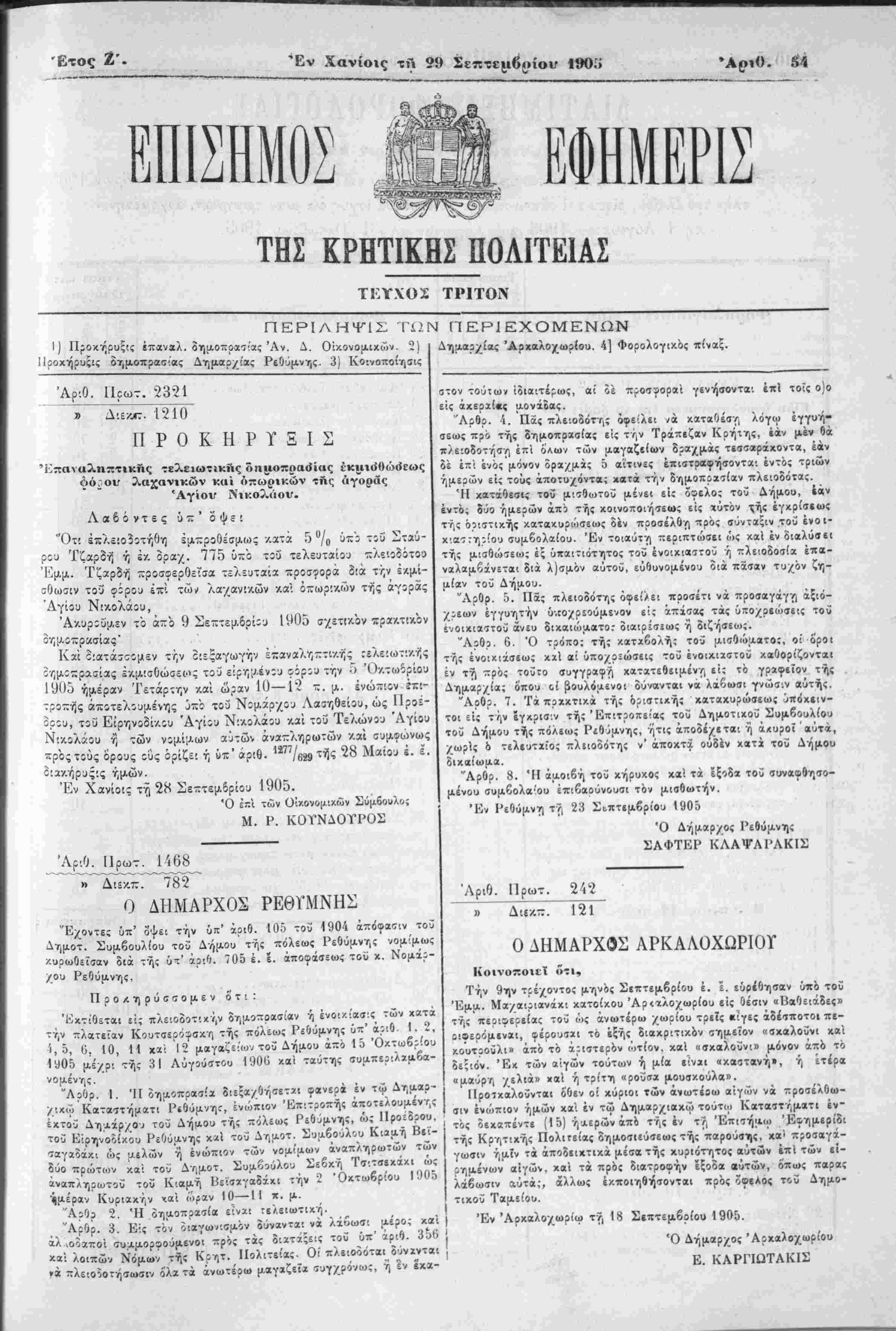 Έν Χανίοις τη 27 Σεπτεα6ρΪ3^ 1905