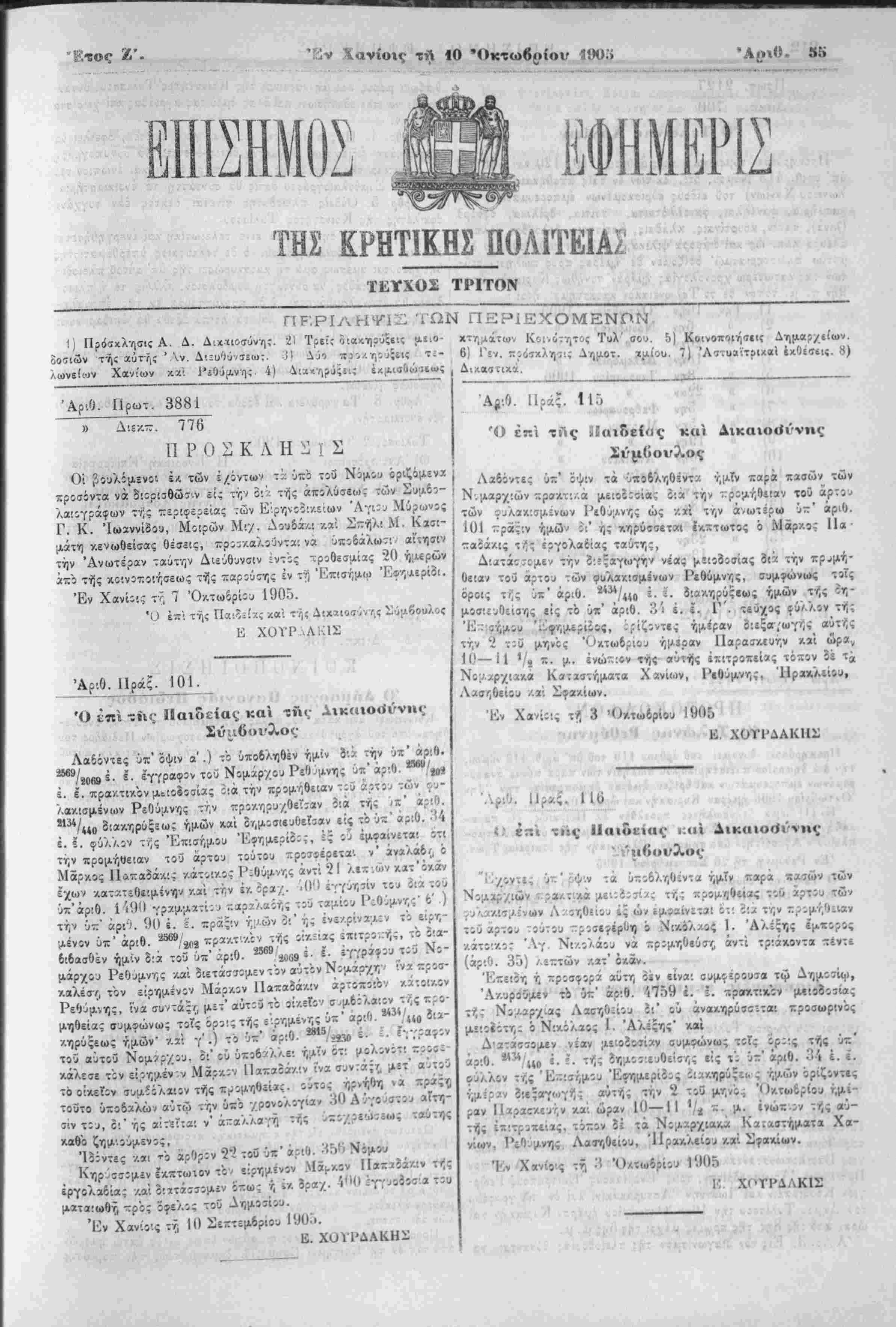 Έν Χανίοις τ/) 6 Όχτωβρίου 1905 ν» ' »χ "■· '.