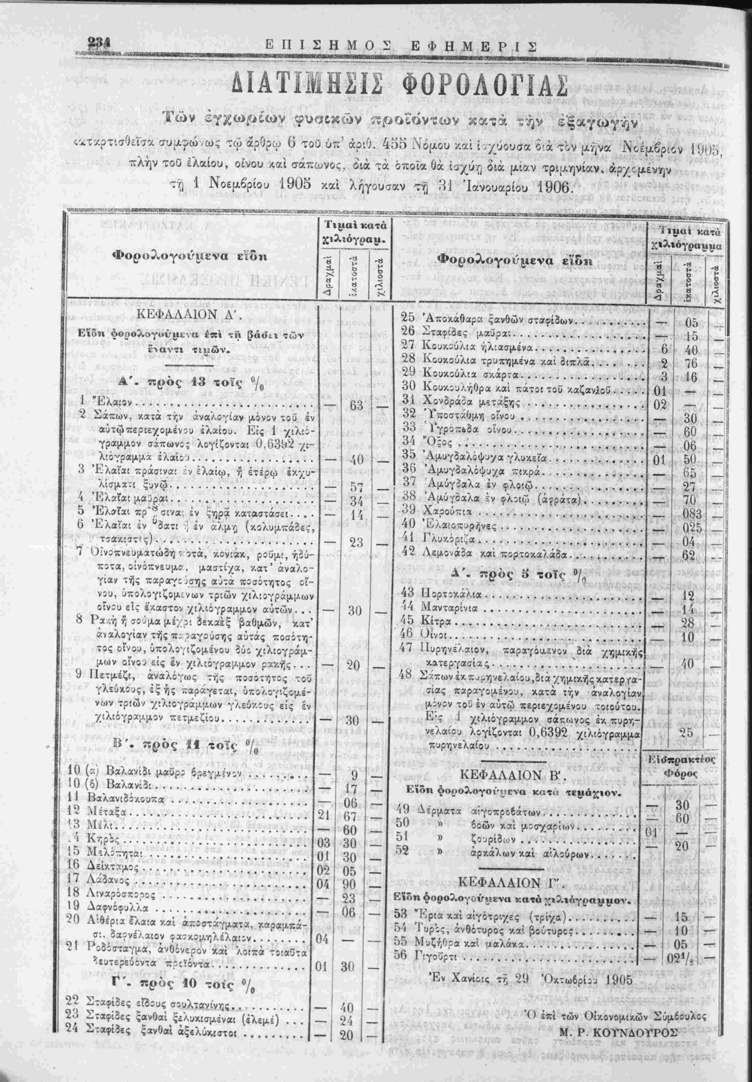 τ Υ) 1 Νοεμβριού 1905 καί ληγουσαν τή 31 Ίανουαρίου 1906.
