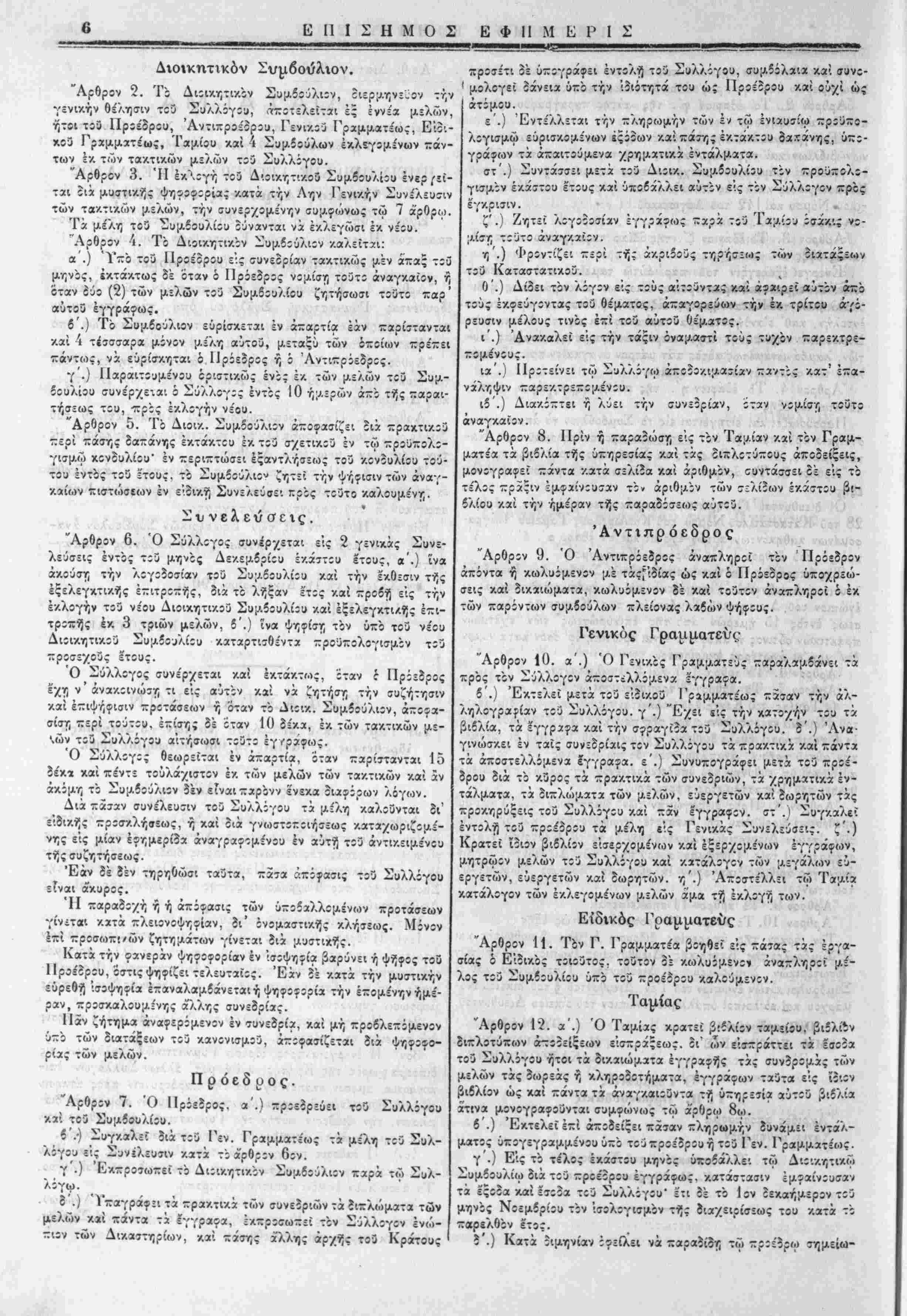 υπό τού Συλλόγου ή τοΰ Δ. Συμβουλίου άνατιθεμένας αυτοίς