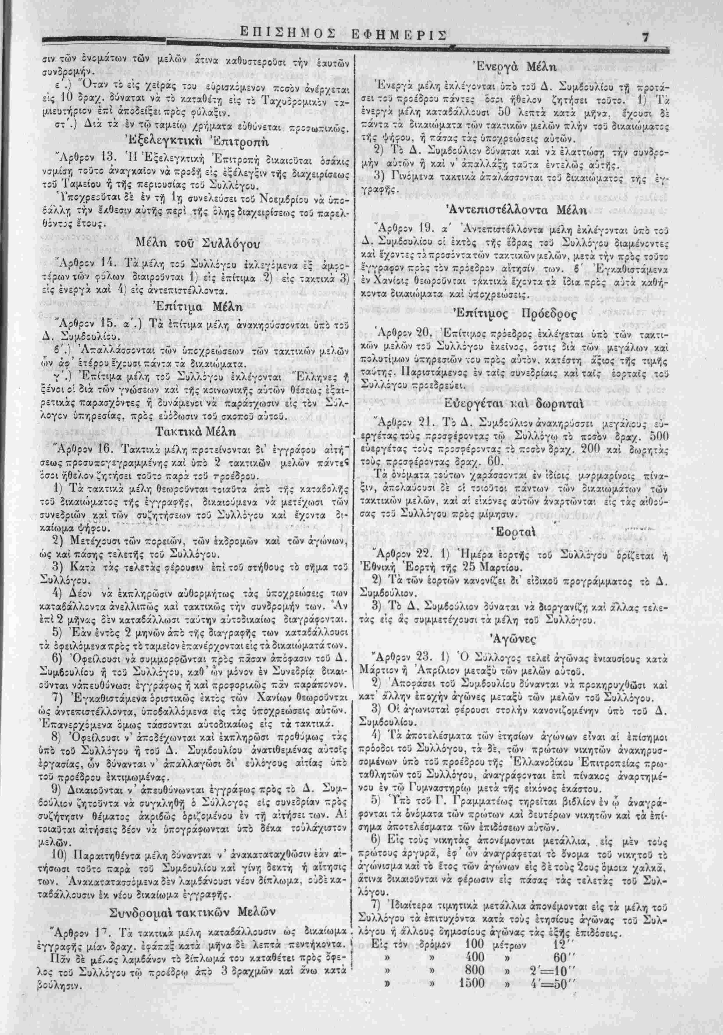 Άρθρον 19. α' Άντεπιστέλλοντα μέλη έκλέγοντα'. υπό τού