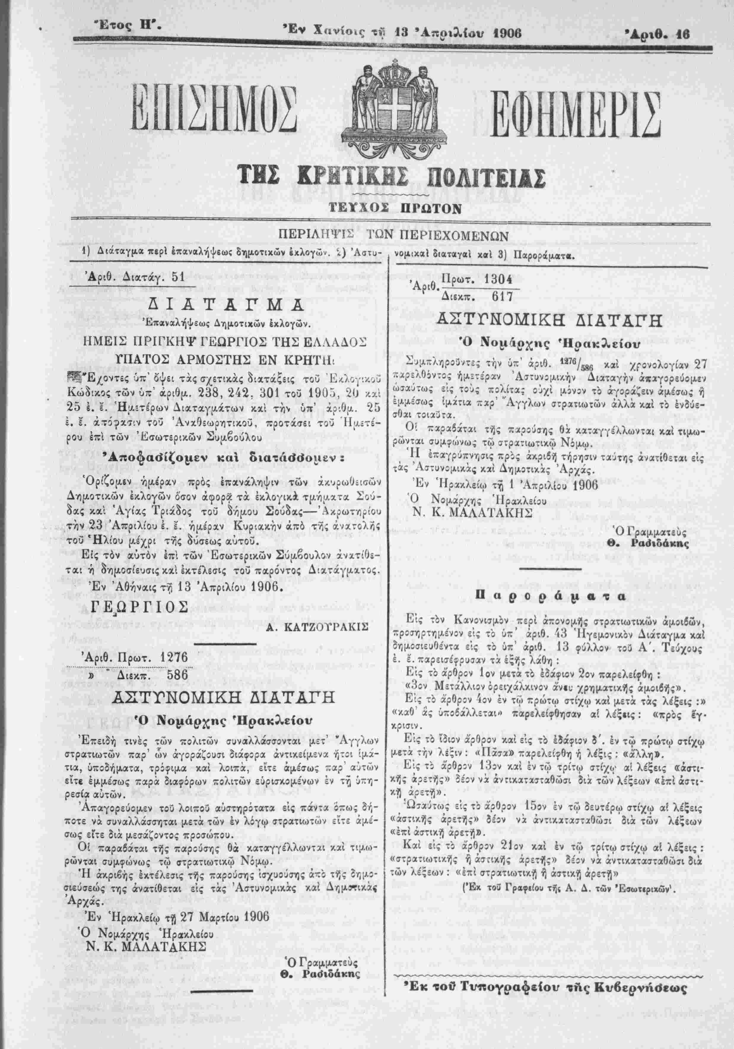 Έν Χανίοις τί, 13 Απριλίου 1906